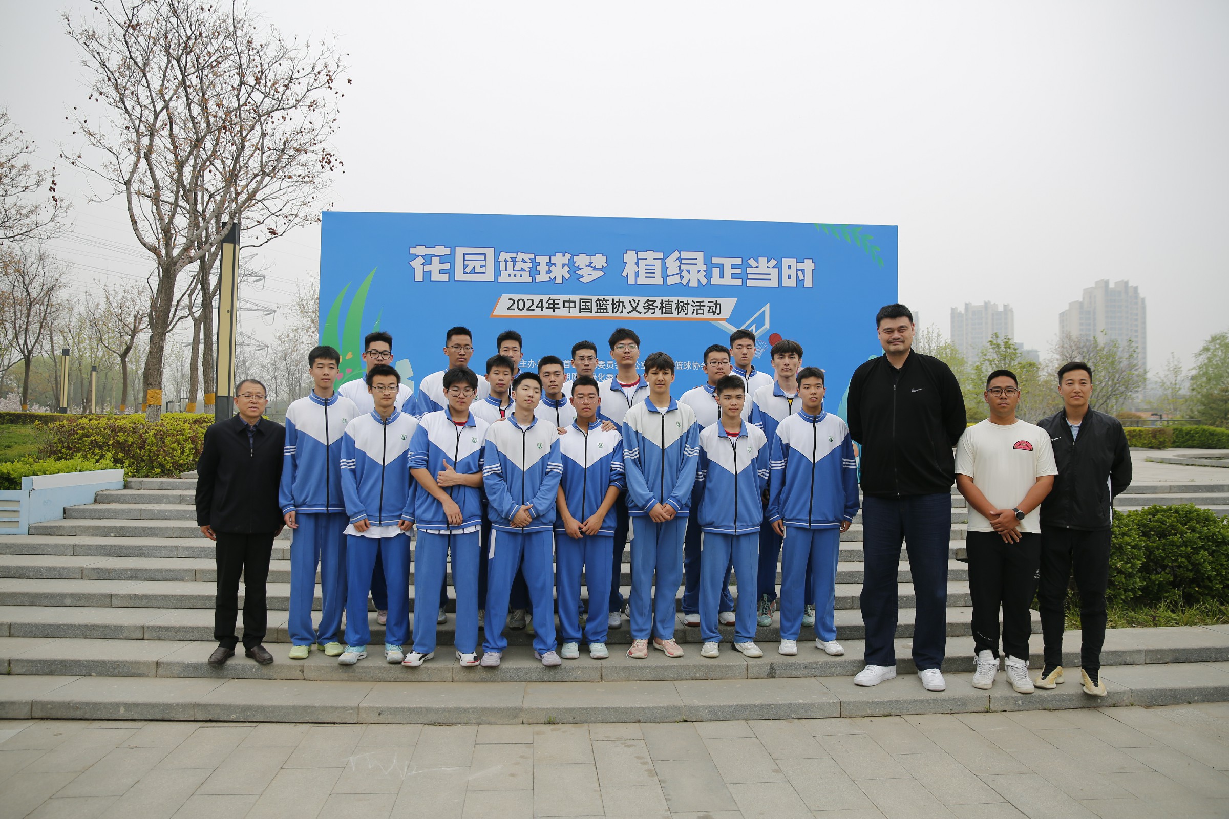 4月12日上午,“花园篮球梦 植绿正当时”2024年中国篮协义务植树活动在朝阳区望和公园举行。中国篮球协会的领导姚明、郭振明、徐济成、杨阳和徐岚等,以及中国篮球名人堂的代表宋晓波和匡鲁彬等,共计80余人参加活动。和平街一中篮球社团的师生们有幸参与到这场意义非凡的植树活动中,与篮球界的精英们一起,为首都花园城市建设添砖加瓦,为望和公园增添一抹新绿。