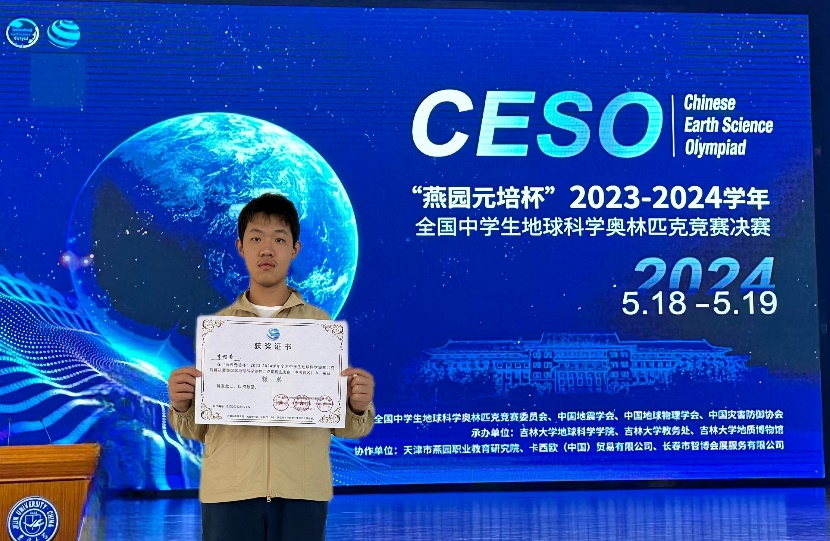 2024年5月18日至19日,“燕园元培杯”2023-2024学年全国中学生地球科学奥林匹克竞赛决赛暨国际地球学科奥林匹克竞赛选拔赛(中国赛区)在吉林大学隆重举行。和平街一中高二年级李程希同学代表北京赛区参加了此次竞赛并获得银奖。在此,向李程希同学表示热烈祝贺。