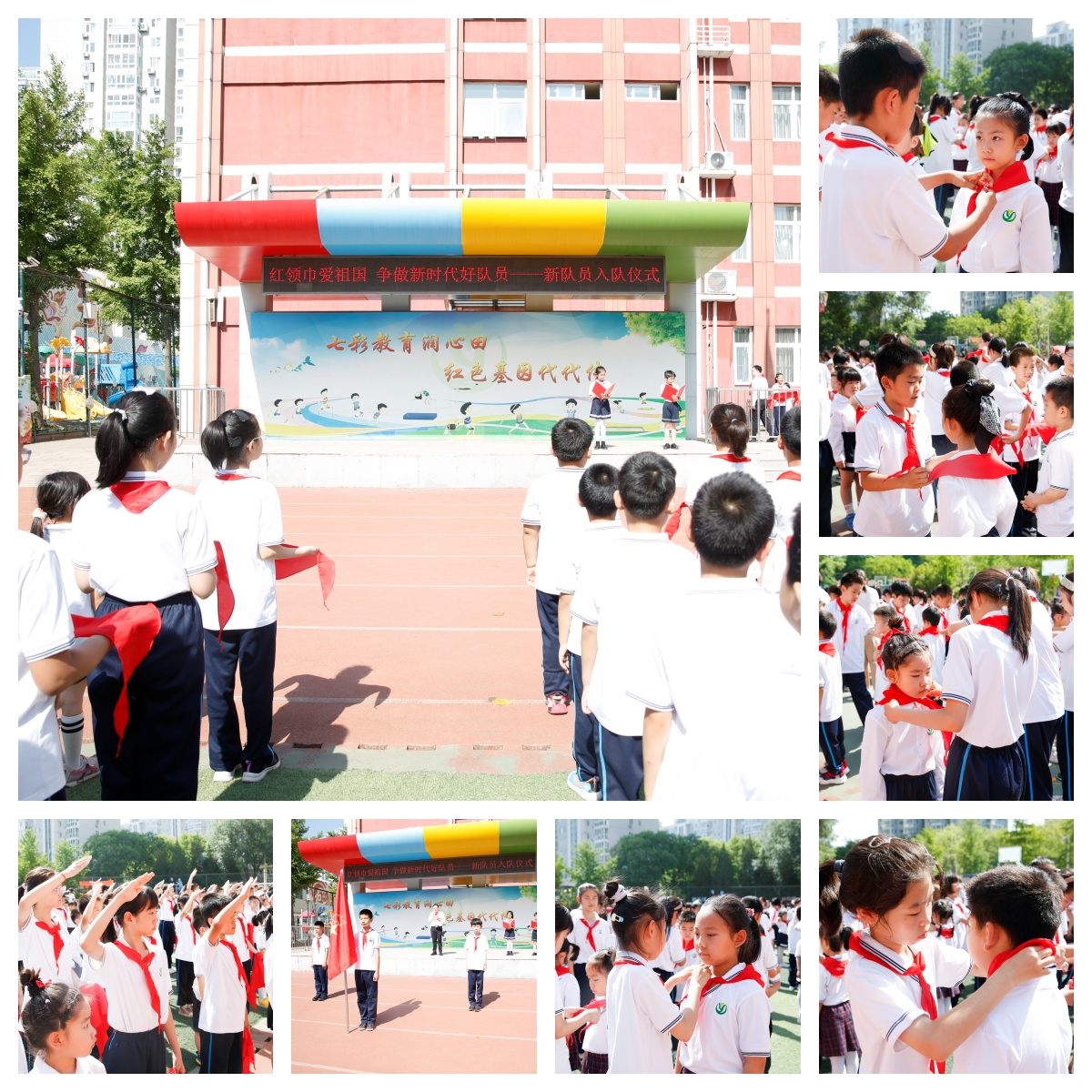 5月31日,清友园校区举行了新队员入队仪式。180名同学光荣地加入了中国少年先锋队,由四年级的老队员为他们佩戴了鲜艳的红领巾。全体队员庄严宣誓,誓言铿锵有力,彰显了为共产主义事业奋斗的决心。