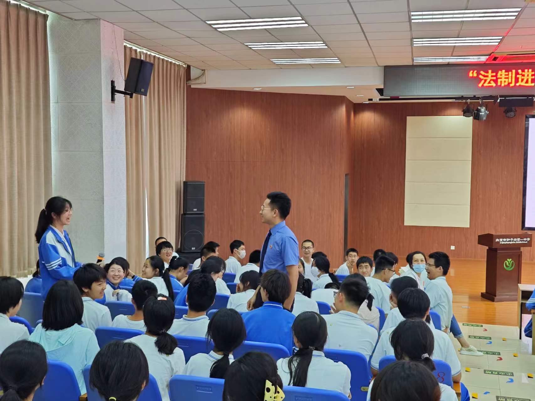沈检察官以电影《第二十条》为题,向同学们介绍了校园欺凌在法律上的定义及其主要行为;讲解了在遭受校园欺凌后如何使用法律武器保护自己,以及针对校园欺凌如何依法办事;并教导同学们预防“校园欺凌”应做到“三不”:不做受害者、不做欺凌者、不做冷眼旁观者!他还围绕网络安全这一议题,通过案例,讲解未成年人非法利用网络导致的后果以及应承担的法律责任,告诫同学们要遵守法律法规,增强法律意识,避免违法犯罪行为。