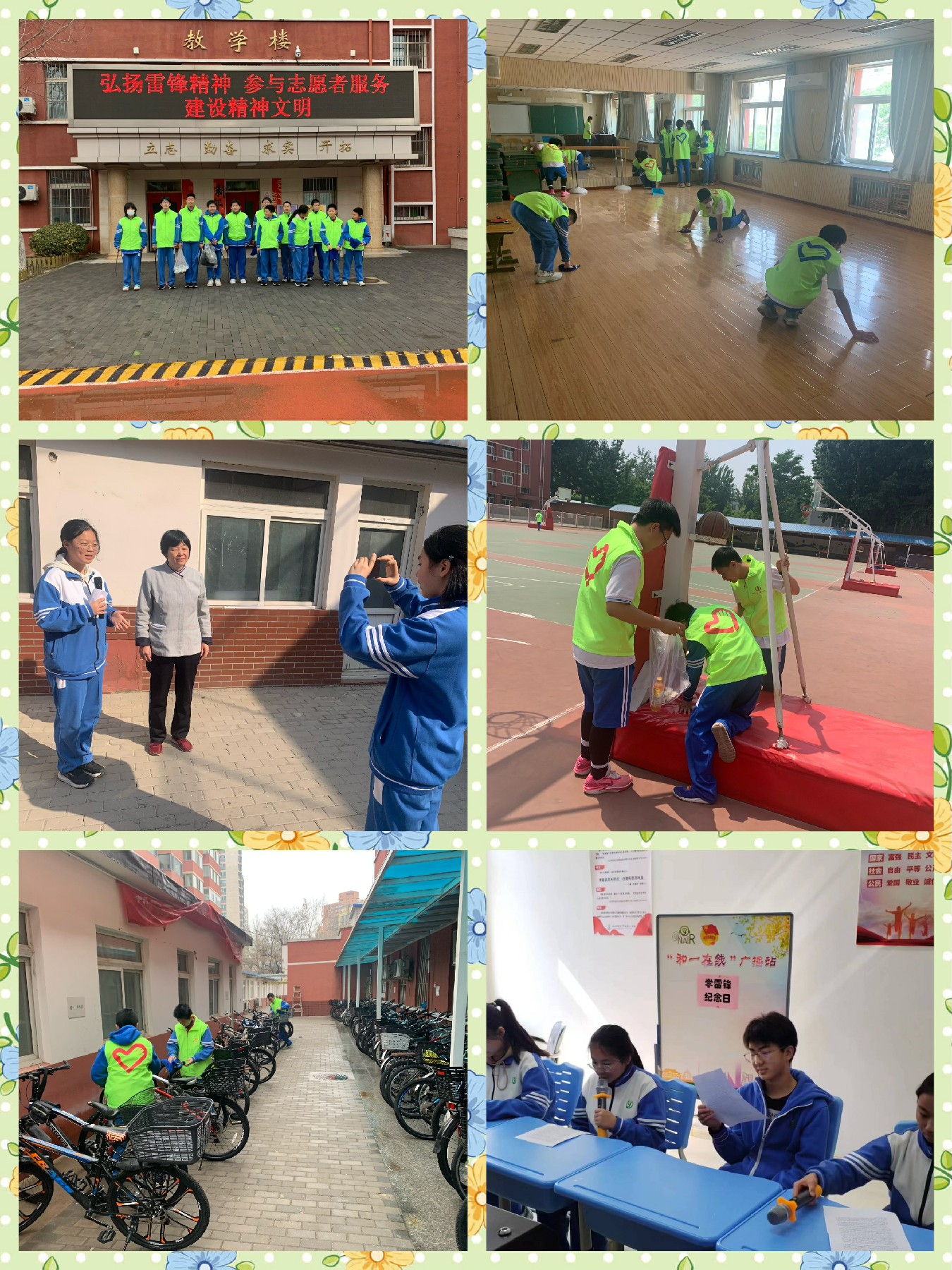 在校园内,校区通过广播站、国旗下讲话、展板等多种形式,大力宣传劳动教育的意义。我校区全国中学生志愿服务优秀示范项目——“和你一起、绿色同行”持续开展,同学们穿着志愿马甲、手持清洁工具多次进行校园卫生清理活动,对学校操场、形体房、自行车棚进行定期大扫除。同学们用双手亲自打造整洁美好校园,营造温馨舒适学习氛围。
