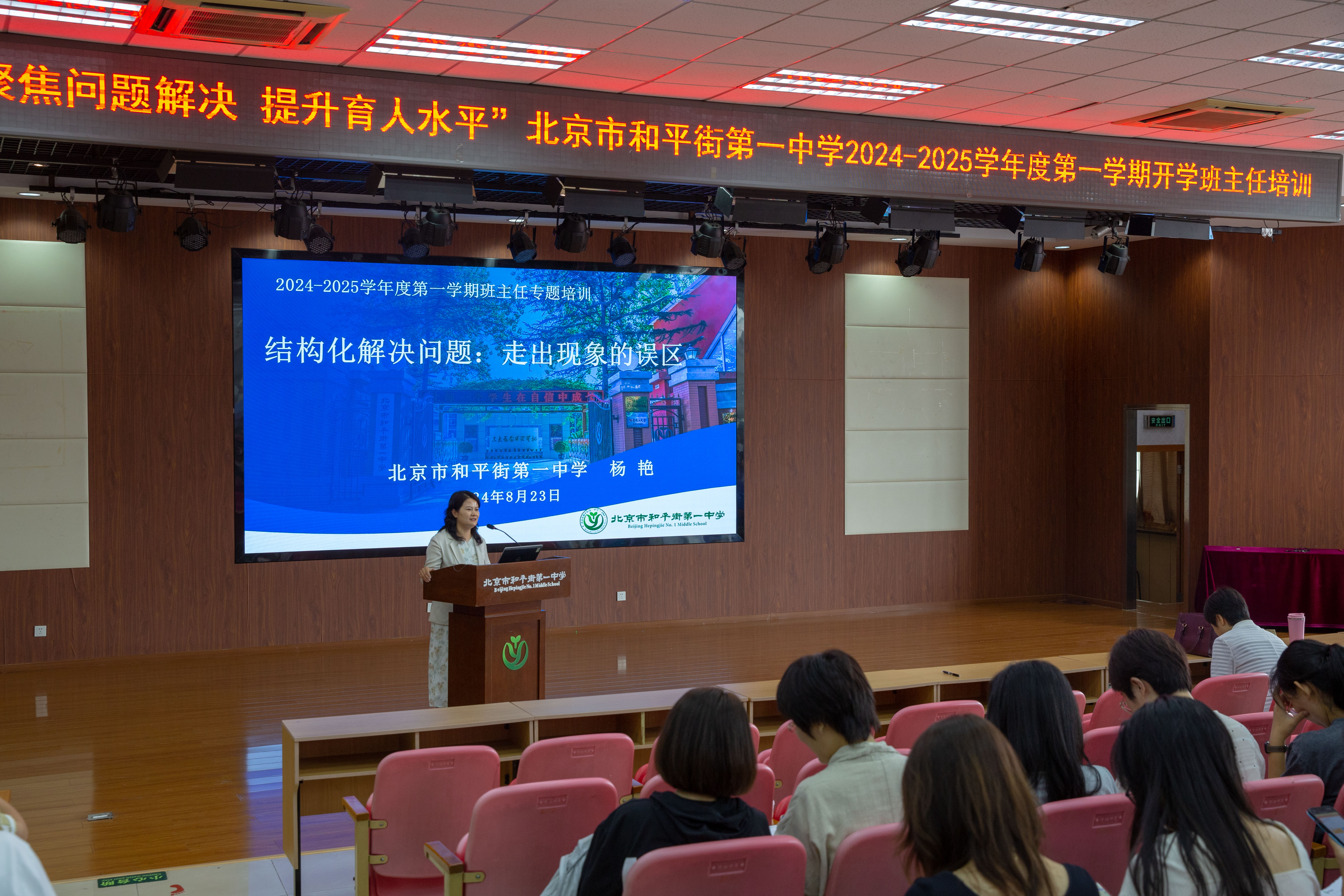 杨艳校长还为所有班主任老师做了主题为《结构化解决问题:走出现象的误区》专题讲座,具体分析了现阶段学生教育中的困境,鼓励班主任在工作中要区别现象和问题,学会结构化解决问题,努力营造一个更美更优最温暖的和一班集体。