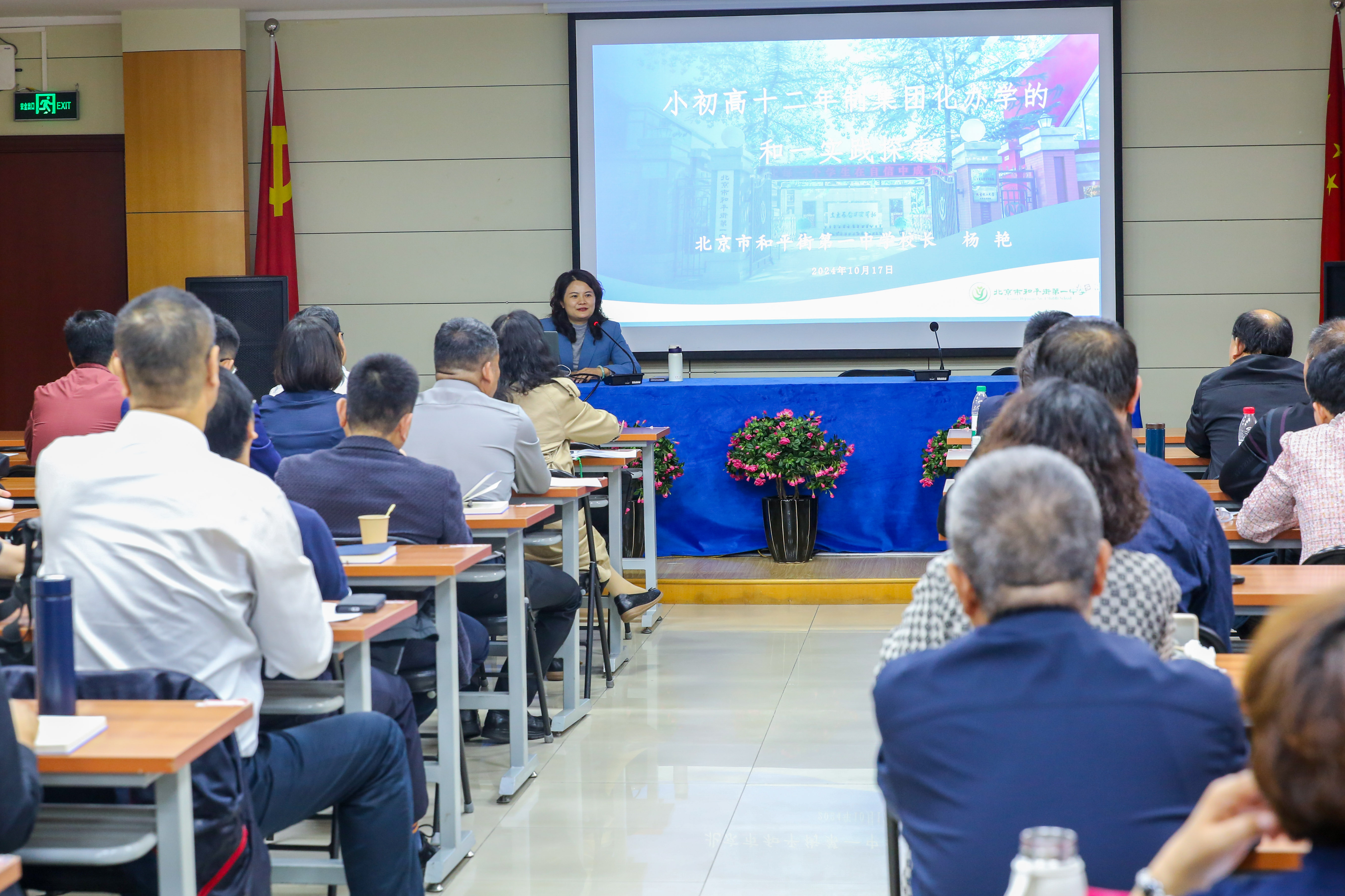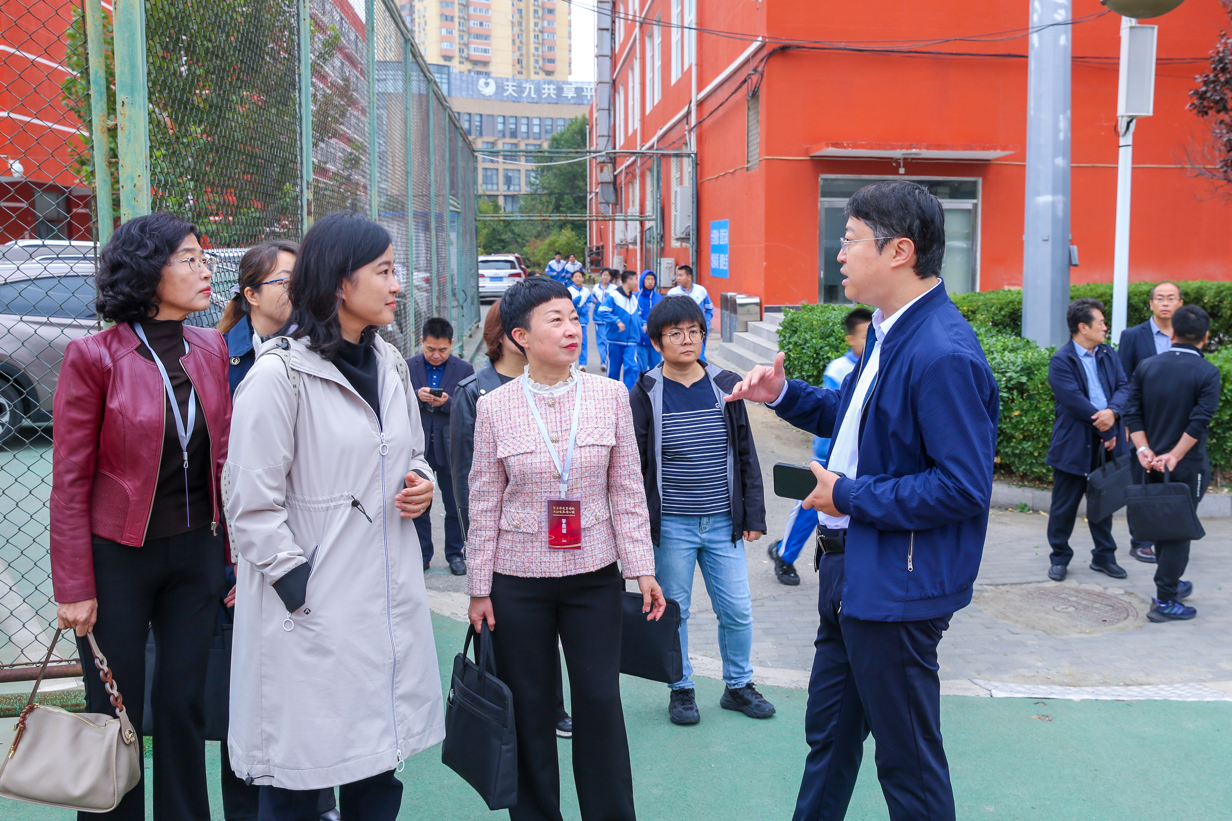 秋雨迎诗意,交流促发展。为进一步加强区际及校际间的交流合作,助力京津冀教育的一体化发展,10月18日,天津市滨海新区教体局相关干部以及70名幼小初高全学段集团校长莅临和平街一中莲葩园校区进行教育交流。和平街一中教育集团校长杨艳,莲葩园校区主管副校长杜鹏陪同参观并进行专题讲座。