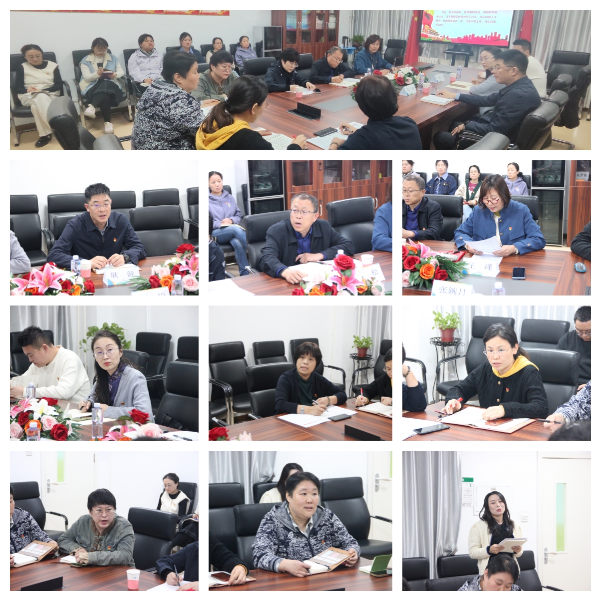 大会开始,支部书记王瑾做了题为《党建引领 岗位建功 我为教育强区做贡献》的主题教育党课,分别从教育大计,教师为本,大力弘扬教育家精神;加快建设有朝阳特色的教育强区;奥运村校区面临的问题与挑战等三个方面做了阐述。随后党员老师和积极分子围绕学习内容,谈了立足本职工作的具体做法和感受。和平街一中集团党委书记王松带领大家学习《培养德智体美劳全面发展的社会主义建设者和接班人》文章,重点分享了“六个下功夫”。最后,耿健处长从教育情怀和教师发展两个方面,鼓励教师坚守教育初心,助力学生全面健康成长。