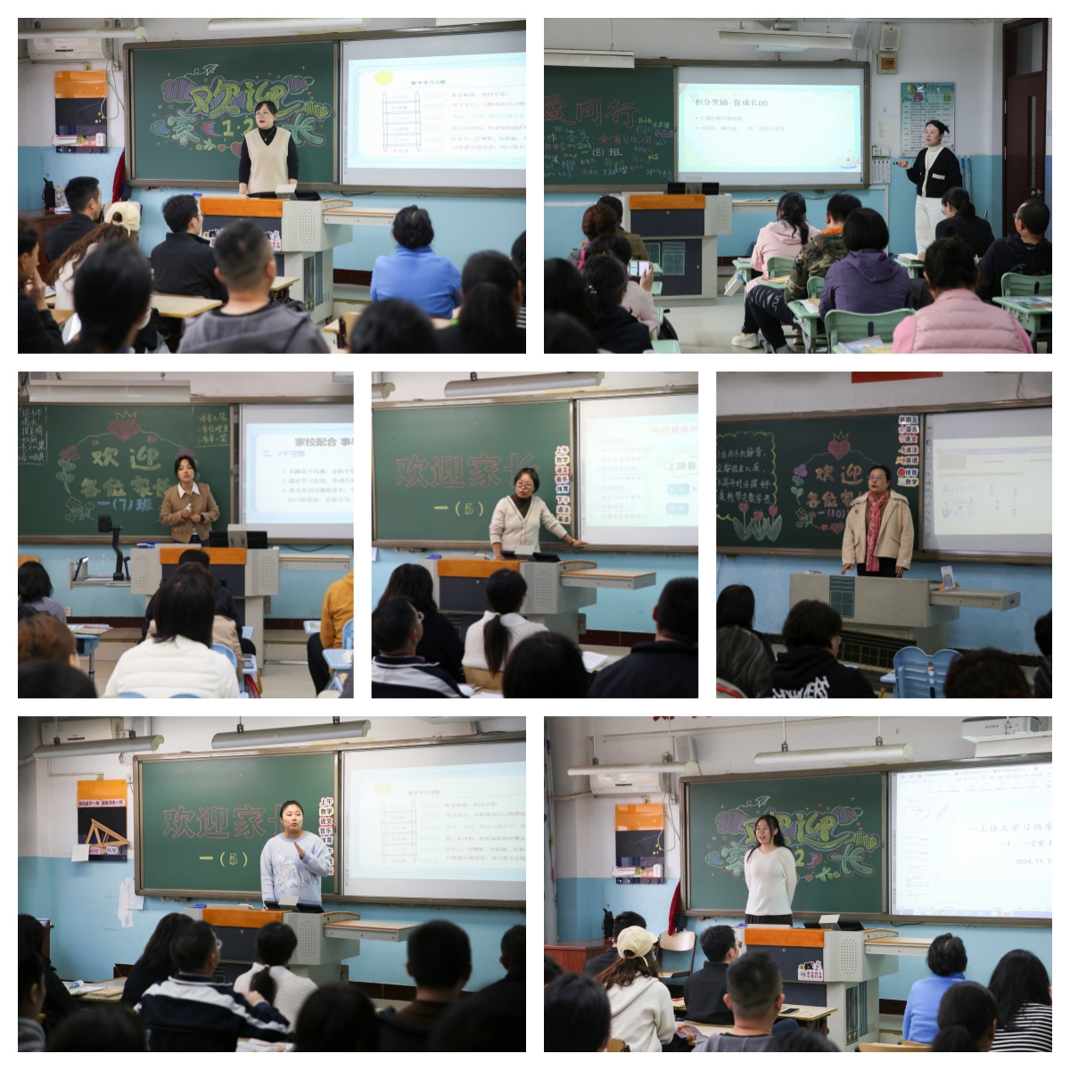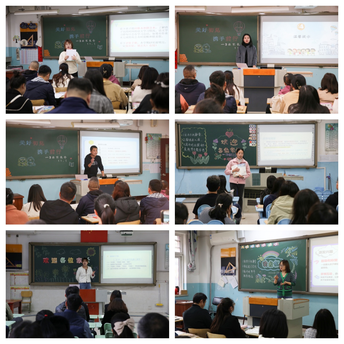 家长会在各班举行。各学科教师依次介绍了学生的学习情况,班主任老师分享了学生在校的表现、习惯养成等情况,并提出需要家长配合的具体事项。