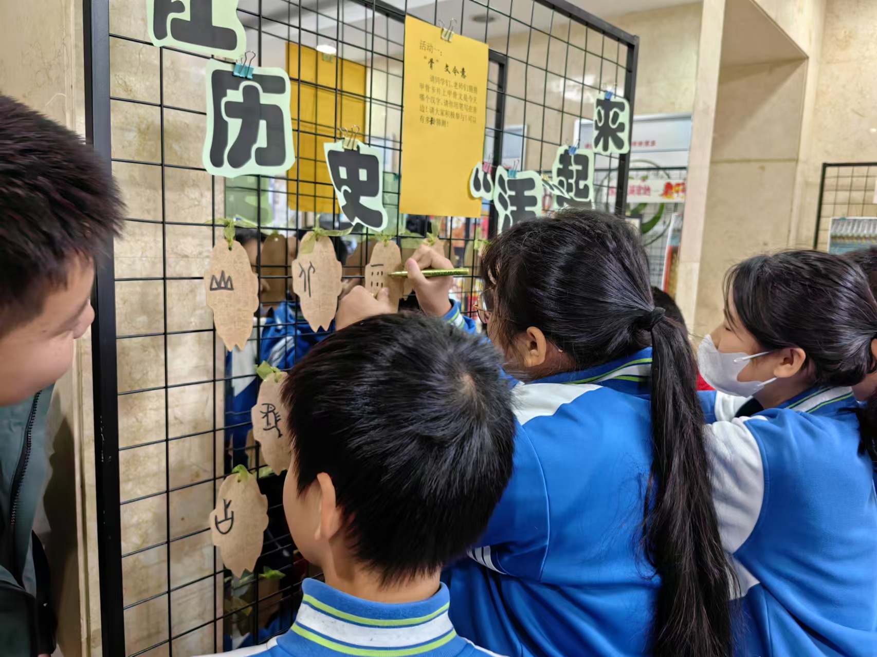 12月,和平街初中校区成功举办了“让历史‘活’起来”学科月活动。启动周,以学生成果展示和历史知识海报展览为主。楼道展出了学生历史实践活动的优秀作品,体现了历史学科多样性评价的成果。开放活动周,开展了“骨”文今意和古文临帖2个活动,深受学生喜爱。历史剧本收集周,同学们自编历史剧本,想象丰富,文笔优美,涌现出大量优秀的作品,丰富了校园文化生活。总结周,全校共二百余人次获奖,同学们学有所获,信心满满。