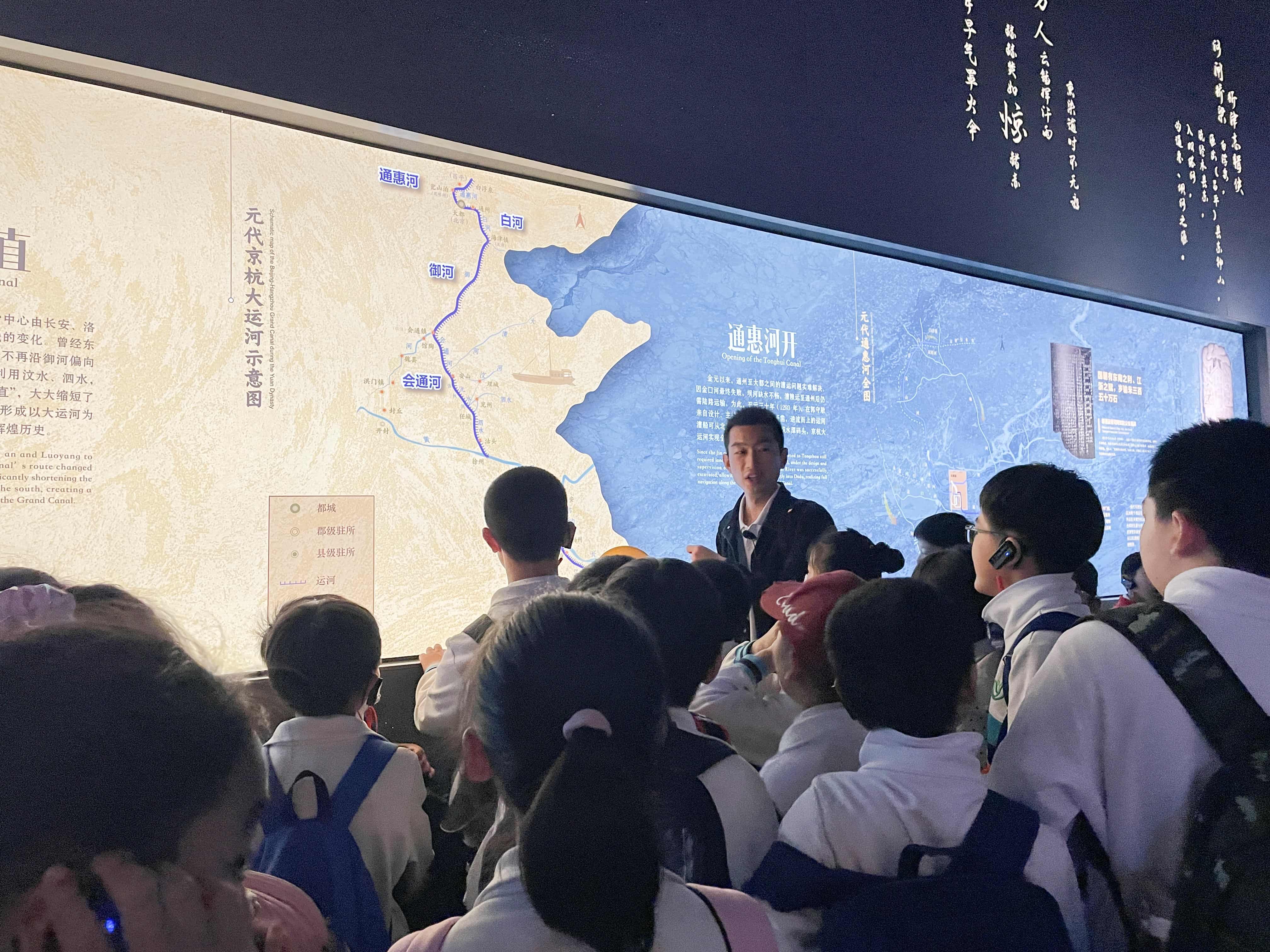 4月16日,四年级全体学生来到通州运河博物馆与运河公园参观学习。博物馆里,学生们聆听了运河千年的兴衰历程,凝视着古老的漕运器具与市井画作,无不对古人的智慧惊叹不已。运河公园内,学生们分组制作模型船,从设计到调试,将理论与实践融合,深刻领悟运河文化魅力,增强了传承优秀传统文化的使命感。