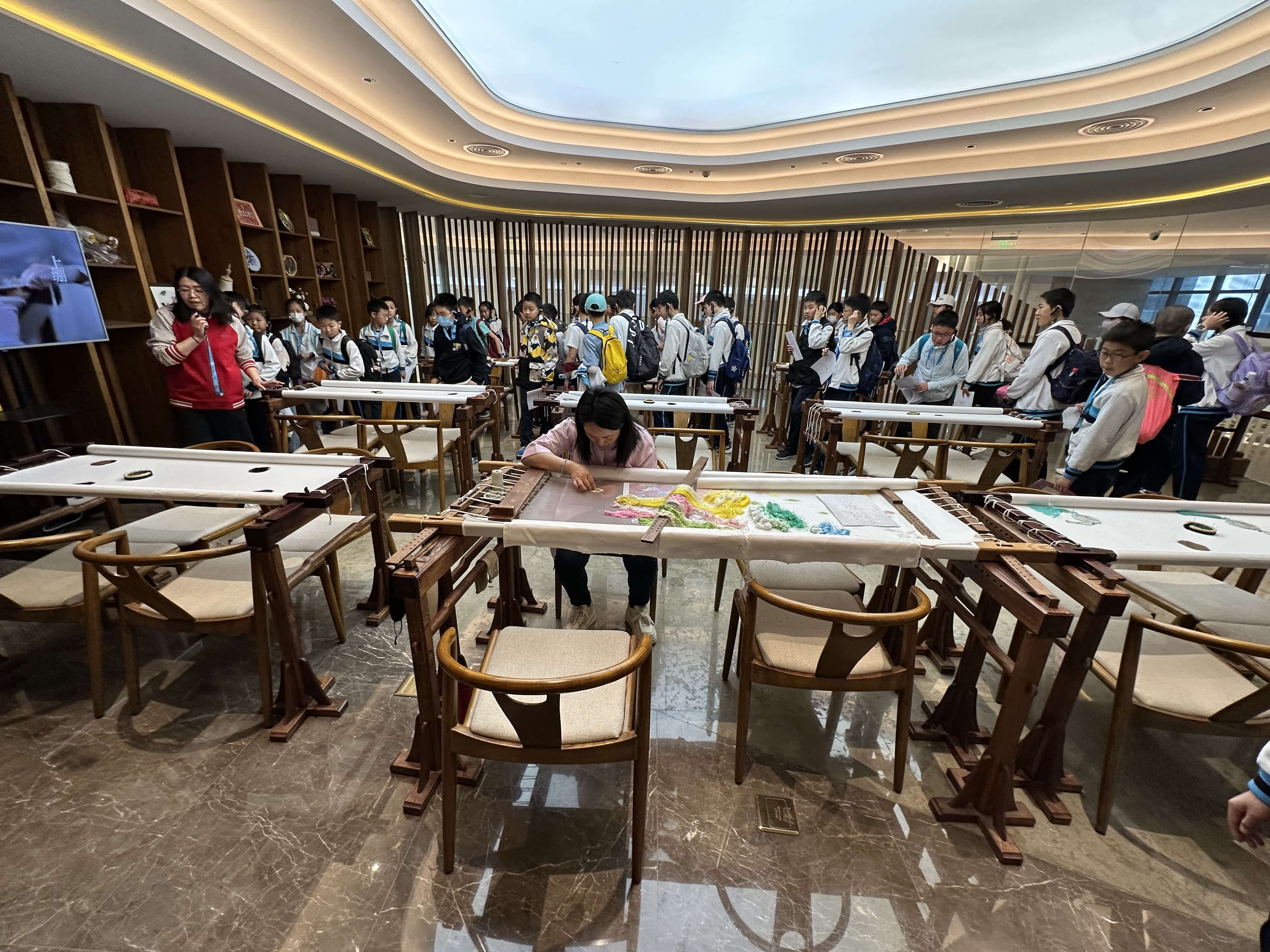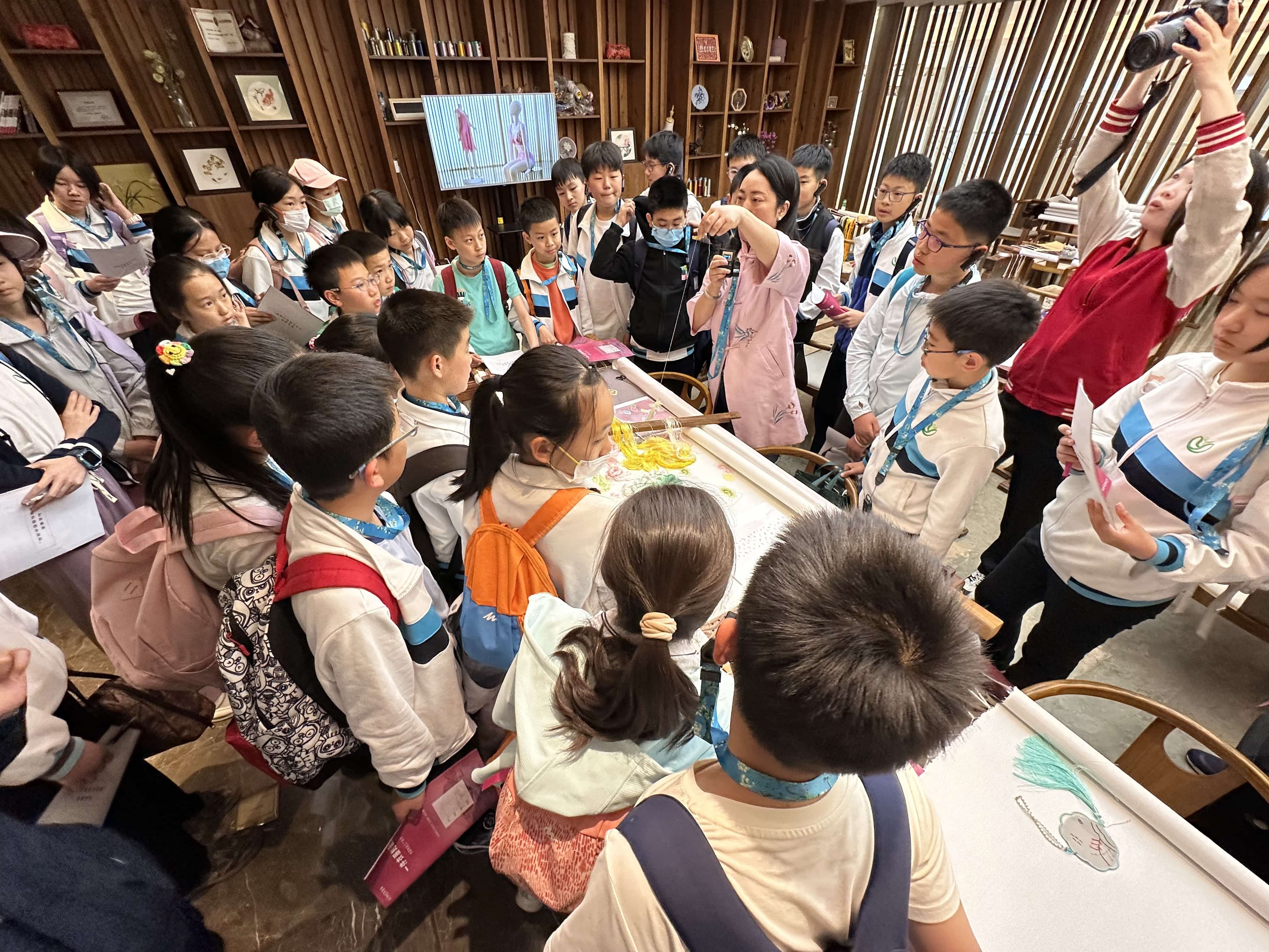 4月15日,五年级师生走进爱慕服装工厂参观“一件衣服的诞生”全过程,了解从面料裁剪到成品包装的复杂工序,对苏绣工艺赞叹不已。国潮服饰课程,讲师生动解读服饰发展历程与设计内涵,打开学生认知传统服饰文化的新窗口。T恤纹样设计环节,学生依据朝代服饰特点进行创作,美术老师设计的校庆标志更为作品增色,激发了学生对传统文化与艺术设计的浓厚兴趣。