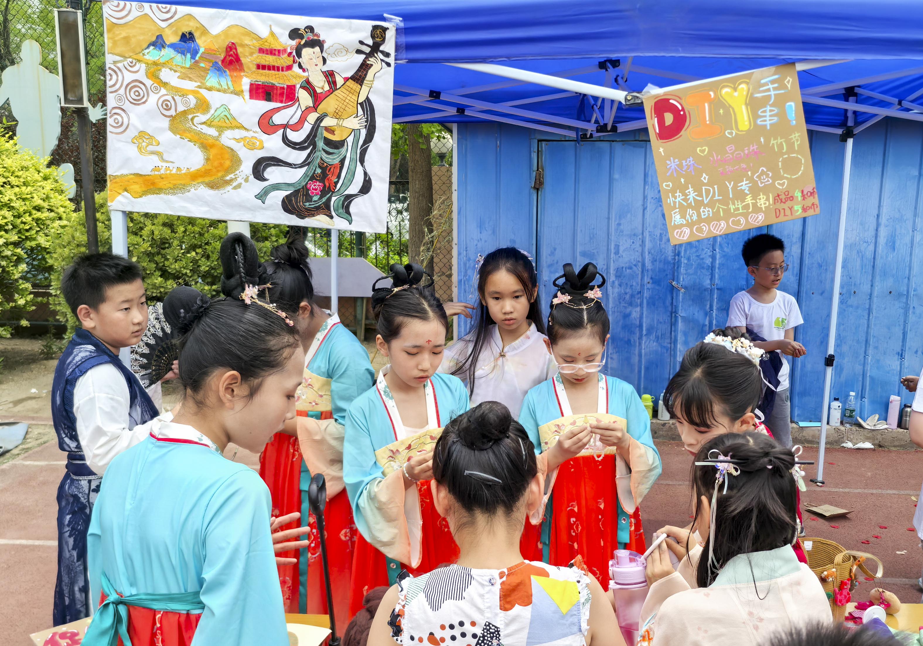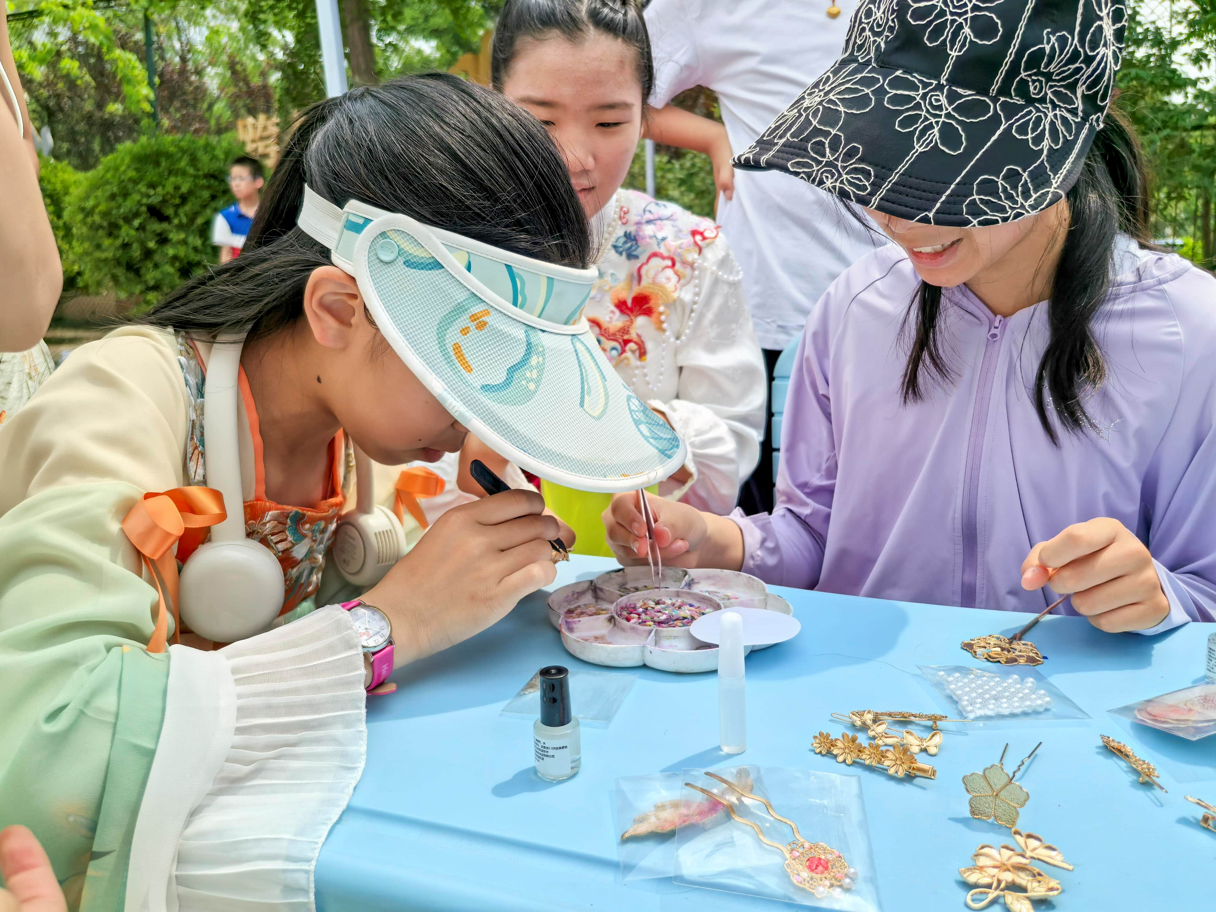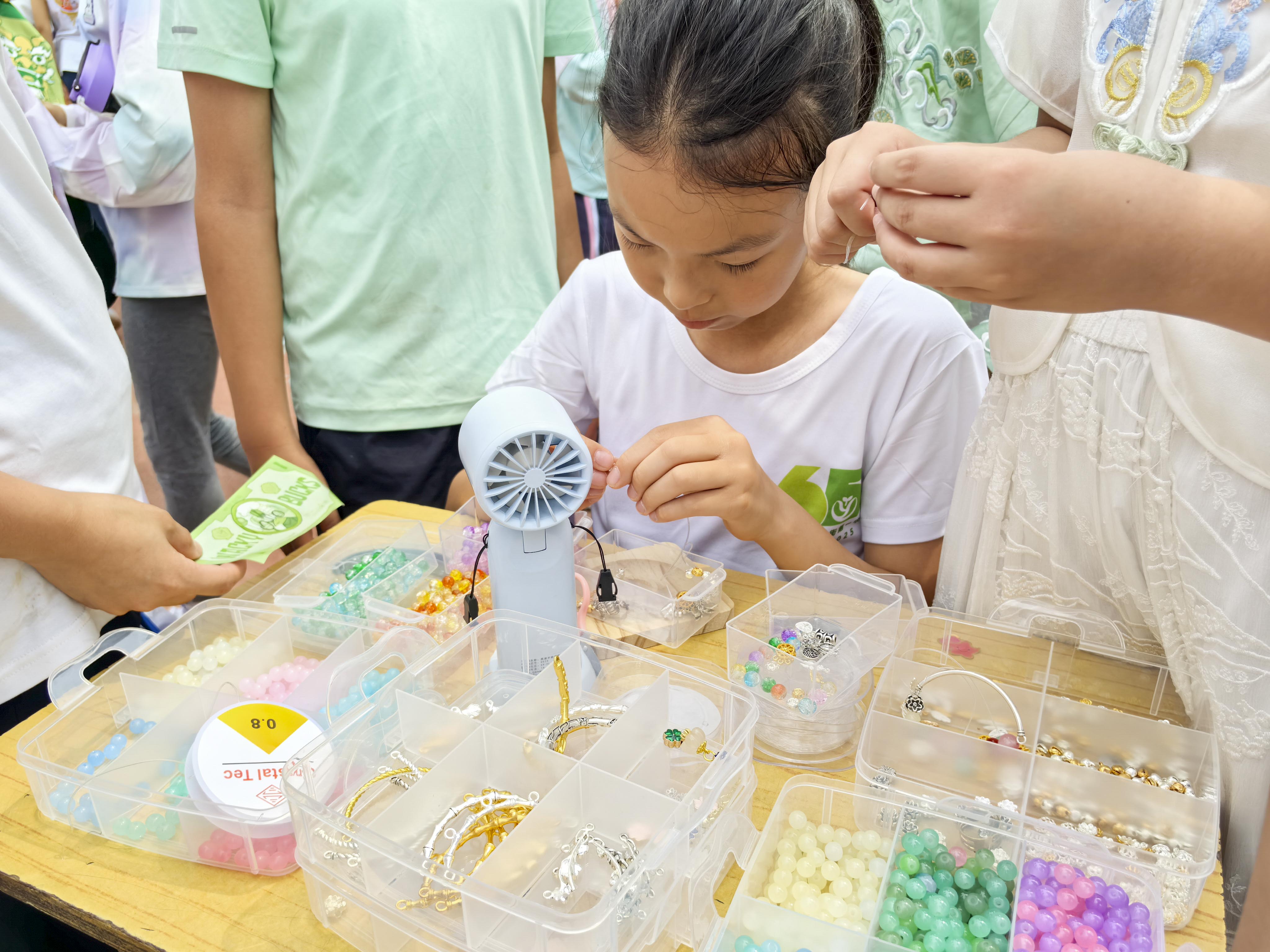 在“运河贸易”实践环节,活动现场化身为繁华的古代商贸集市。学生们将科举环节获得的“和币”作为流通货币,兴致勃勃地参与模拟交易。有的扮演商贾,精心制作并售卖具有地域文化特色的手工艺品;有的化身买家,在讨价还价中感受古代市井生活的趣味。通过亲手制作唐三彩、江南团扇等传统工艺品,同学们不仅锻炼了动手能力,更在买卖互动中深刻体会到运河商贸的历史意义,以及其中蕴含的文化交流价值。这一沉浸式体验让传统文化以生动可感的方式走进了学生们的心里。