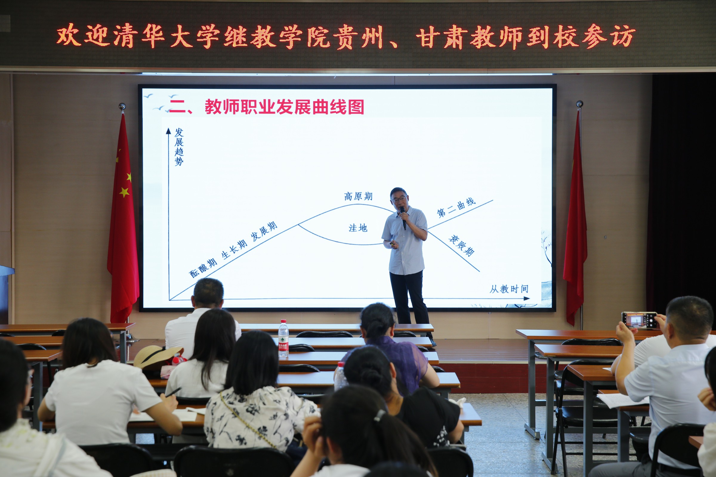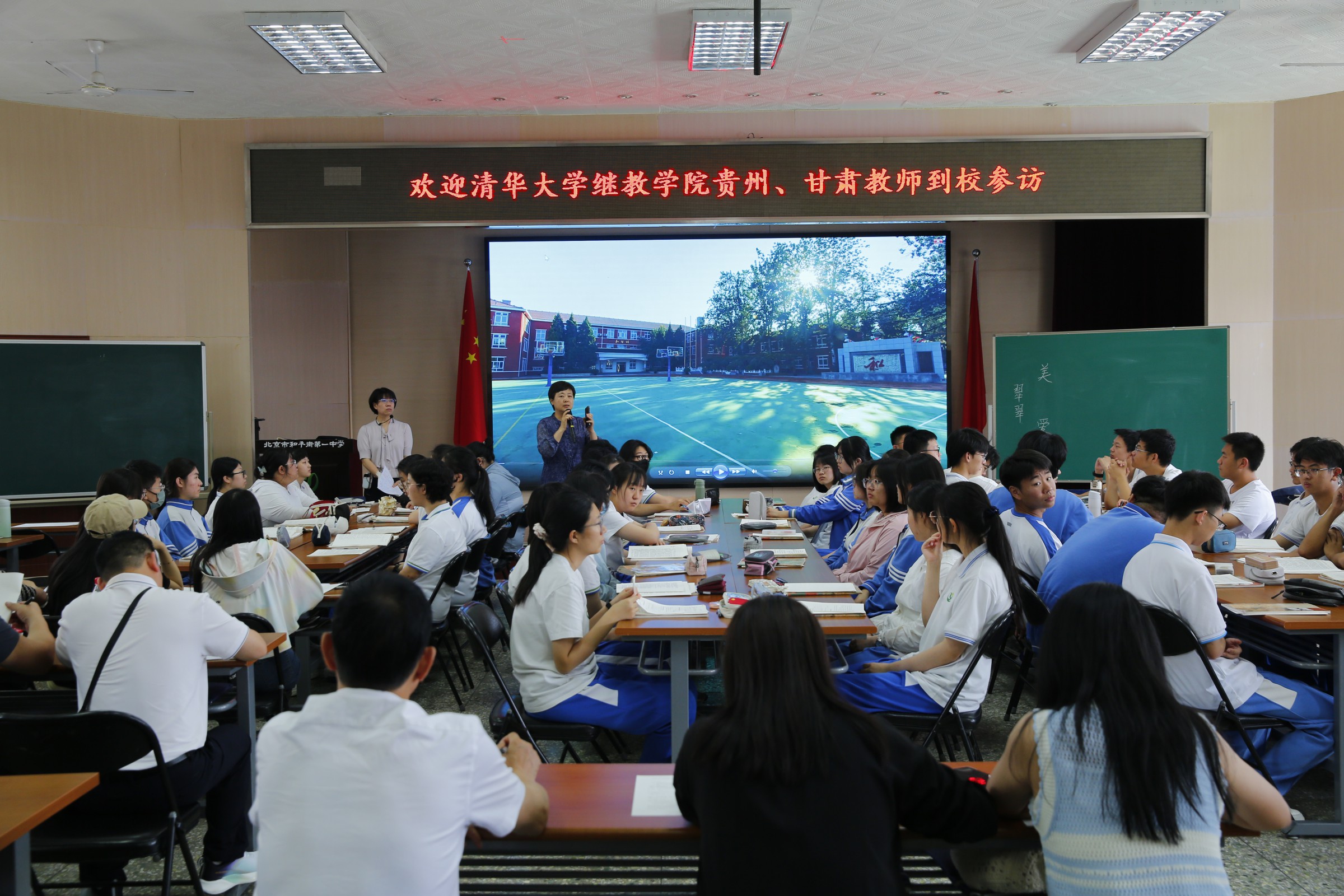 6月13日下午,清华大学继续教育学院贵州、甘肃教师培训班学员一行人来到北京市和平街第一中学和平街高中校区参访学习。校区主管副校长周建萍和相关领导干部热情迎接嘉宾们的到来。