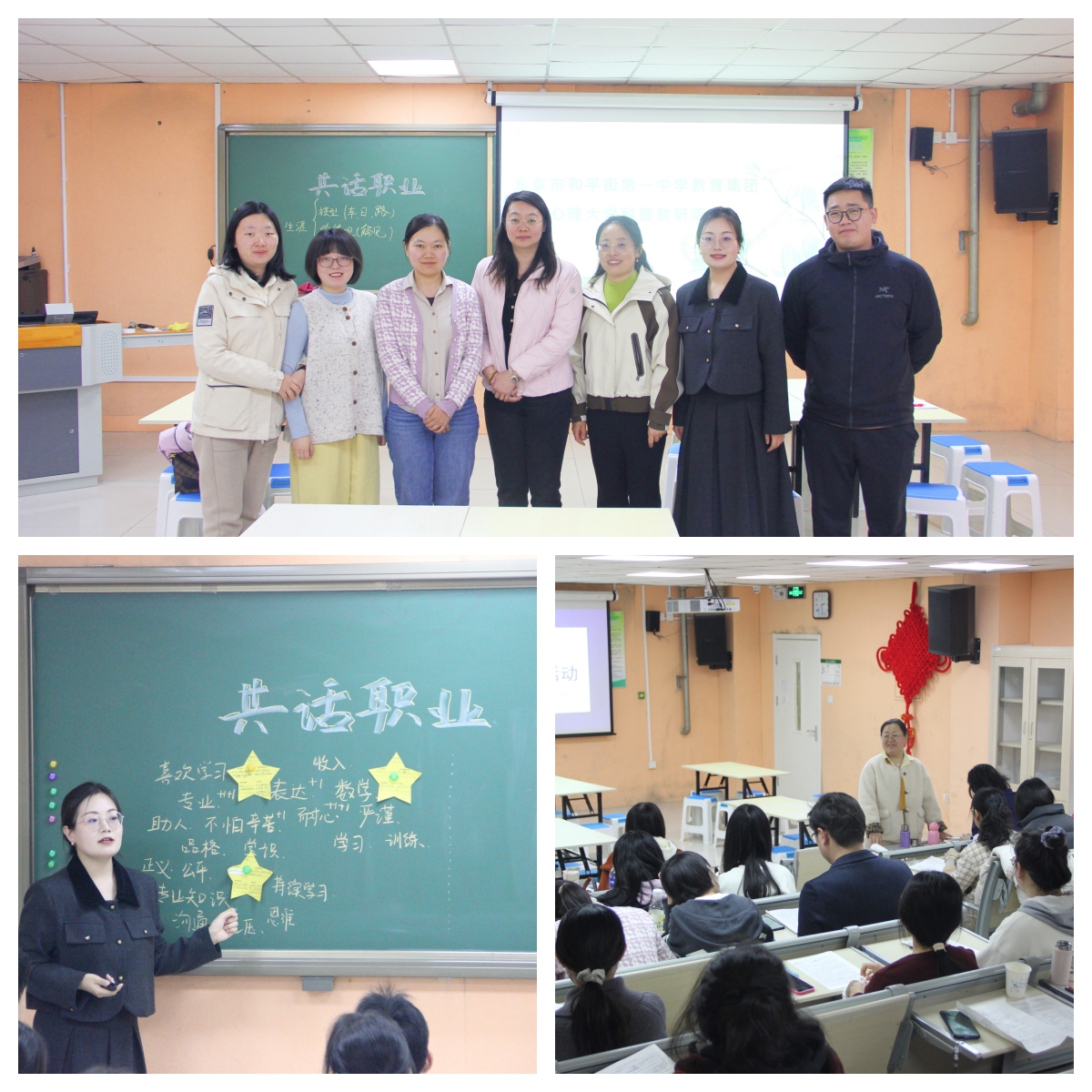 近日,北京市和平街第一中学开展了系列“心理大学科部”活动。初中学段张妮老师以“共话职业”为主题,执教了一节生动有趣的区级研究课,开启了学生探索职业兴趣的大门。课前,心理教研组全体成员共同研讨教案,修改完善各项流程。研究课当天,由朝阳区心理教研员荆承红主持,学校全体心理教师共同到场参与,展现出心理教研组团结协作的良好风貌。