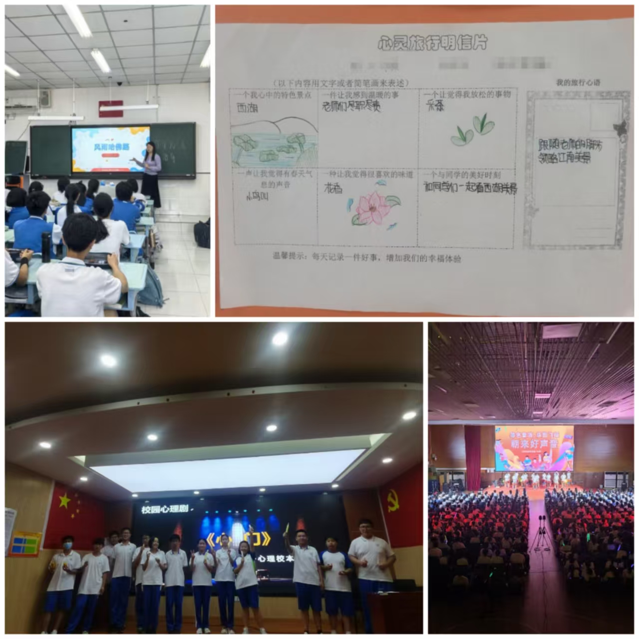 各校区深度推进“心理健康20条”落地,将心理健康教育巧妙融入学科与德育活动。语文课开展“心理诗歌创作”,教师以经典抒情诗歌为引,引导学生用细腻笔触书写内心情绪,随后举办诗歌朗诵会,让文字力量得以释放;体育课精心设计“团队协作球类比赛”,在挥洒汗水中强化互助意识;德育课组织“音乐节”,选手们用歌声传递情感,社区老年歌唱团走进学校,带来精彩节目;学生在舞台上展现自信风采;师生以音乐为纽带实现五育协同发展。活动紧扣“五育融合”导向,打破学科壁垒,助力学生在丰富多元的体验中提升心理韧性,拥抱健康成长。
