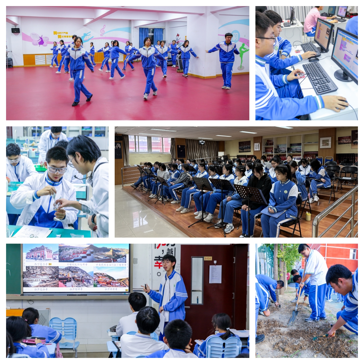 文化传承类课程里,“究古人之慧,成今人之智”课让学生领略中华文化;“美妆”课提升审美;“掌控板编程”“三维设计”课带领学生走进智能世界;“混声合唱”课上歌声悠扬,唱出青春活力。体育竞技类有“男子足球”“女子足球”“男子篮球”“健美操”“田径”等课程,锻炼学生毅力、强健体魄。课程延伸类如“数学思维拓展”“英语阅读提升训练营”“物化竞赛辅导”“生物实验拓展”等,提升学生思维能力,培养探究精神。
