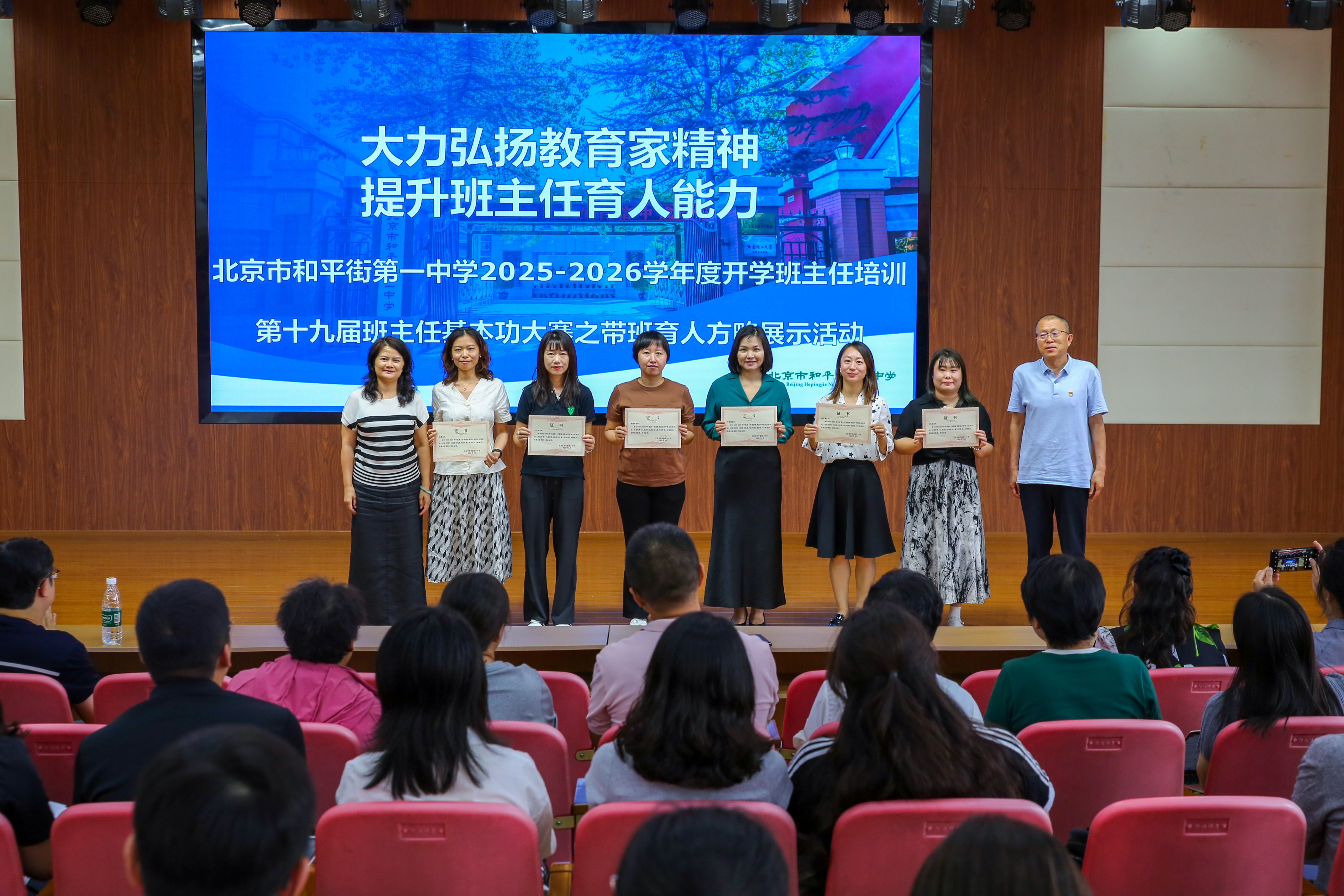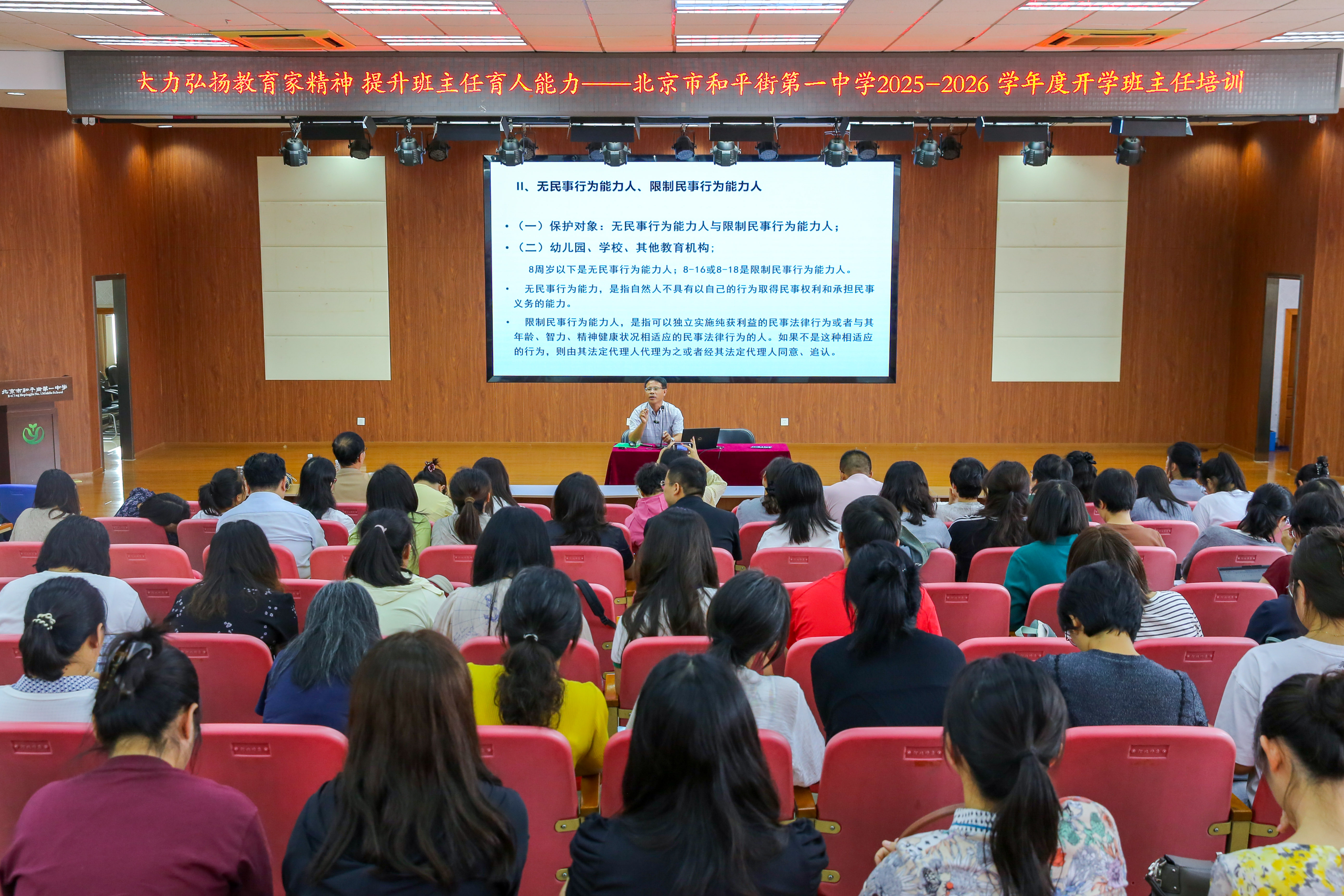 新学期新起点,为深入贯彻《教育强国建设规划纲要(2024-2035年)》及中共中央、国务院《关于弘扬教育家精神 加强新时代高素质专业化教师队伍建设的意见》,大力弘扬教育家精神,充分发挥班主任在学校立德树人工作中的关键作用,提升班主任带班育人管理能力,及时总结和推广优秀的育人经验,助力班主任实现高素质专业化发展。2025年8月28日下午,北京市和平街第一中学隆重举行2025-2026学年度第一学期班主任培训会。