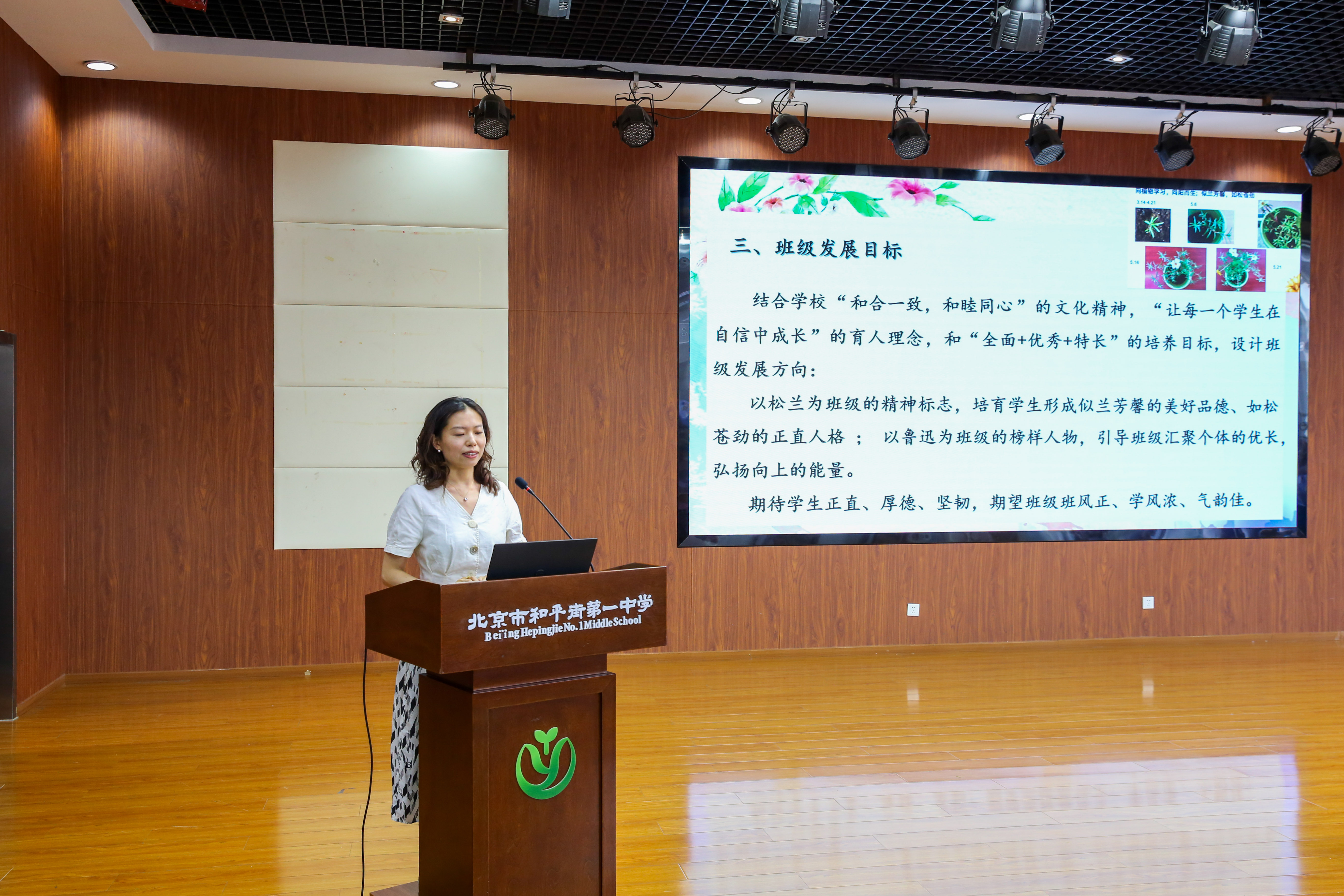 培训会首先进行的是北京市和平街第一中学第十九届班主任基本功大赛之带班育人方略展示活动。来自六校区的六位优秀班主任——王凤朝老师、于潇老师、毕娅丽老师、李怡萱老师、王艾然老师、徐文慧老师,围绕“立德树人”根本任务,结合班级实际,从育人理念、目标设定、实施策略、特色做法等方面展开分享,充分展现了班主任老师们的教育思考与育人智慧。随后,杨艳校长、王松书记为展示的优秀班主任们颁发了证书。