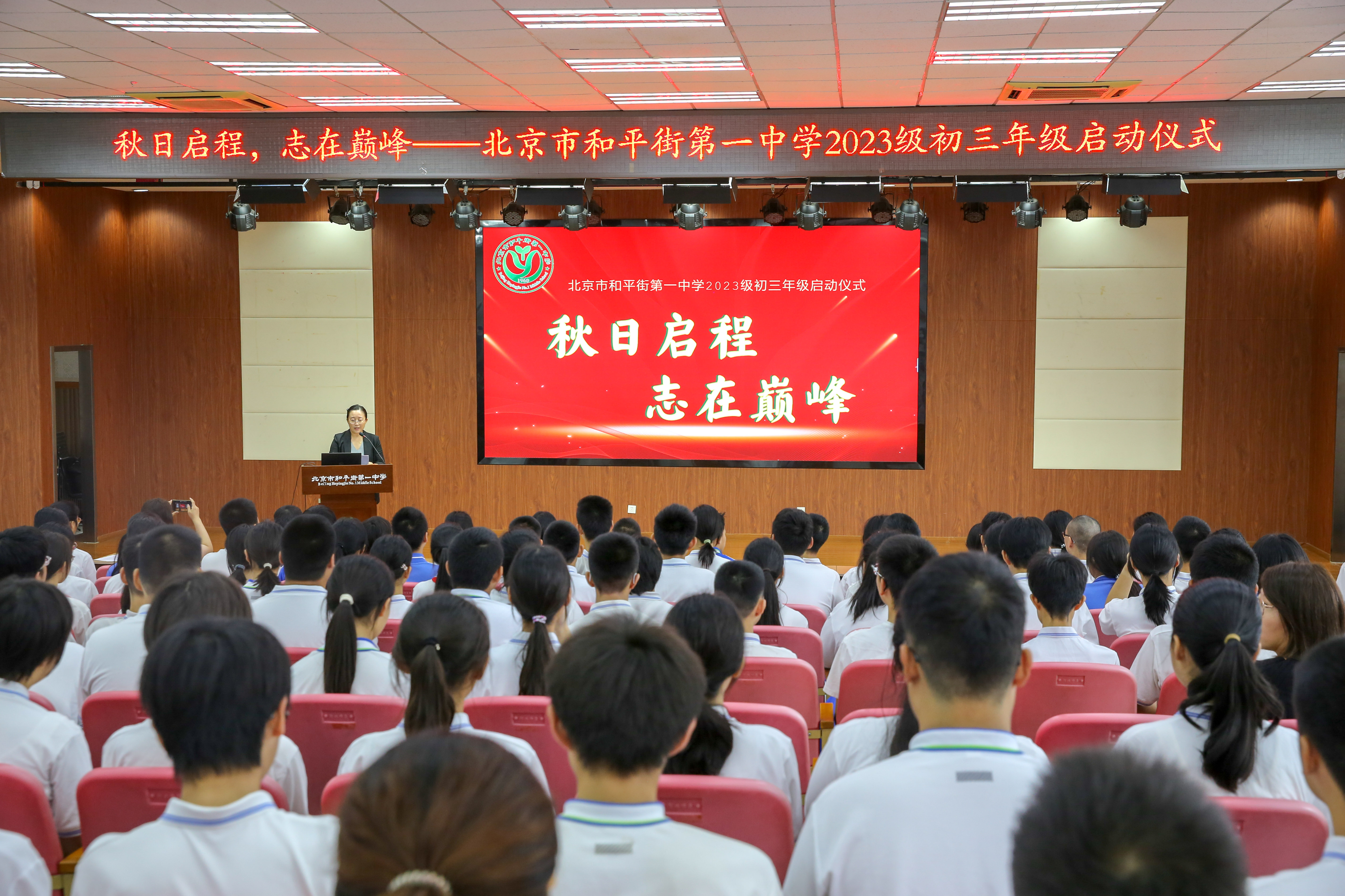 2025年8月30日上午,北京市和平街第一中学莲葩园校区五层报告厅内,气氛庄重而热烈。“秋日启程,志在巅峰”——2026届初三启动仪式在此隆重举行。仪式由初三年级德育主任韩晓佳主持。在激昂的氛围中,仪式正式拉开帷幕。朝来校区与奥运村校区的全体初三学子齐聚一堂,以昂扬之姿共赴这场属于奋斗与梦想的盛会。