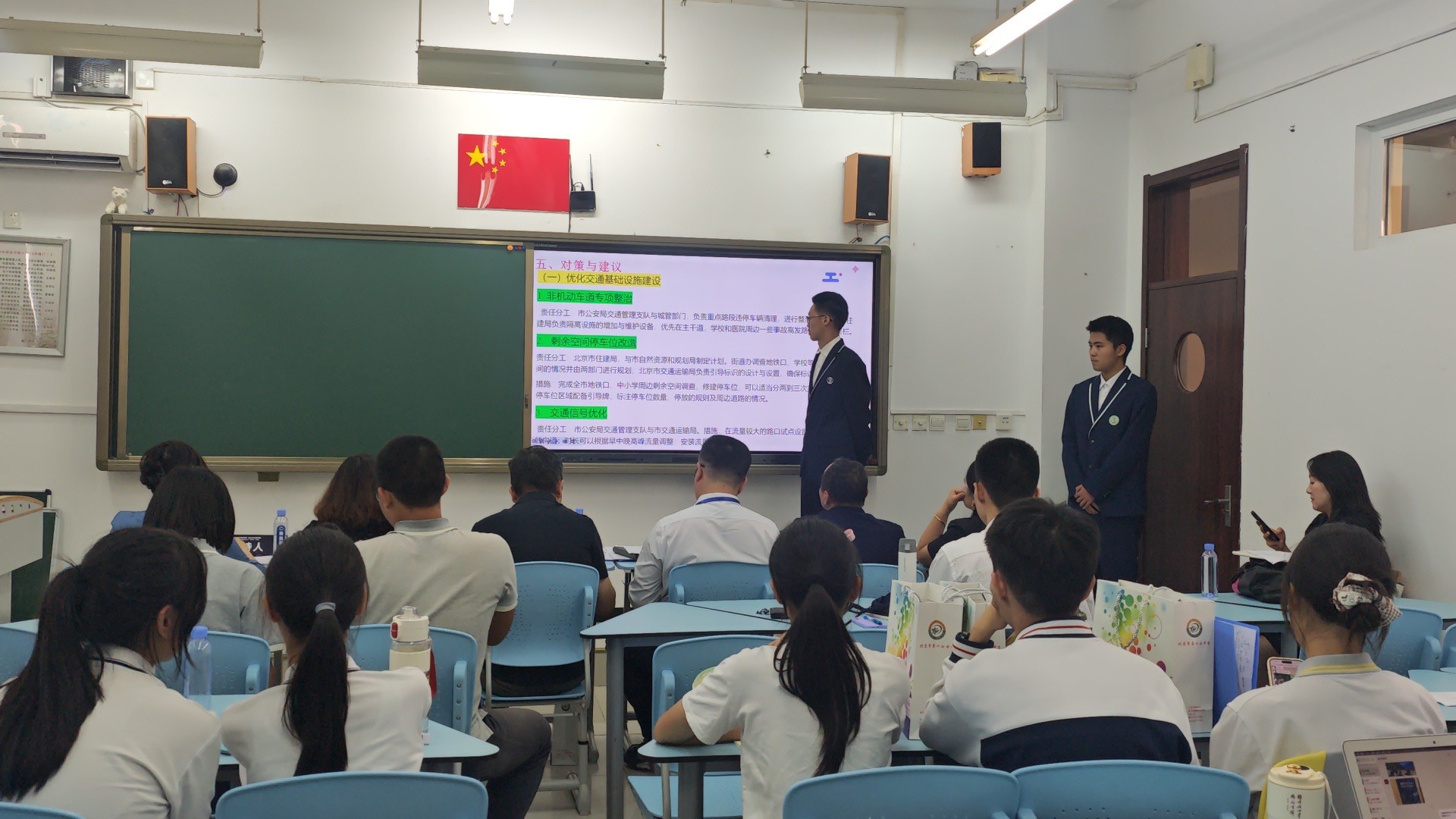 和平街高中校区高二年级孙天逸、杨浩宇、张铭轩三位同学参加了北京市朝阳区青少年模拟政协提案交流展示活动,并提交了《关于治理非机动车在机动车道行驶问题的提案》。该提案聚焦城市交通治理中的现实难点,体现了中学生对社会问题的敏锐观察和理性思考。展示过程中,周建萍副校长亲临现场,给予学生充分肯定,校长的支持极大鼓舞了学生信心。同时也展现了学校对学生实践能力与公民素养培养的高度重视。