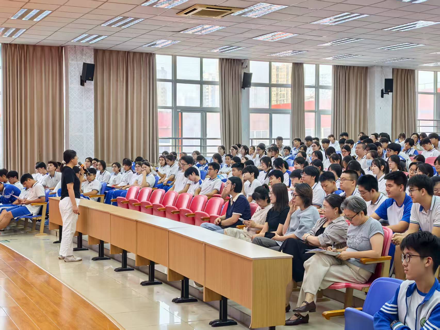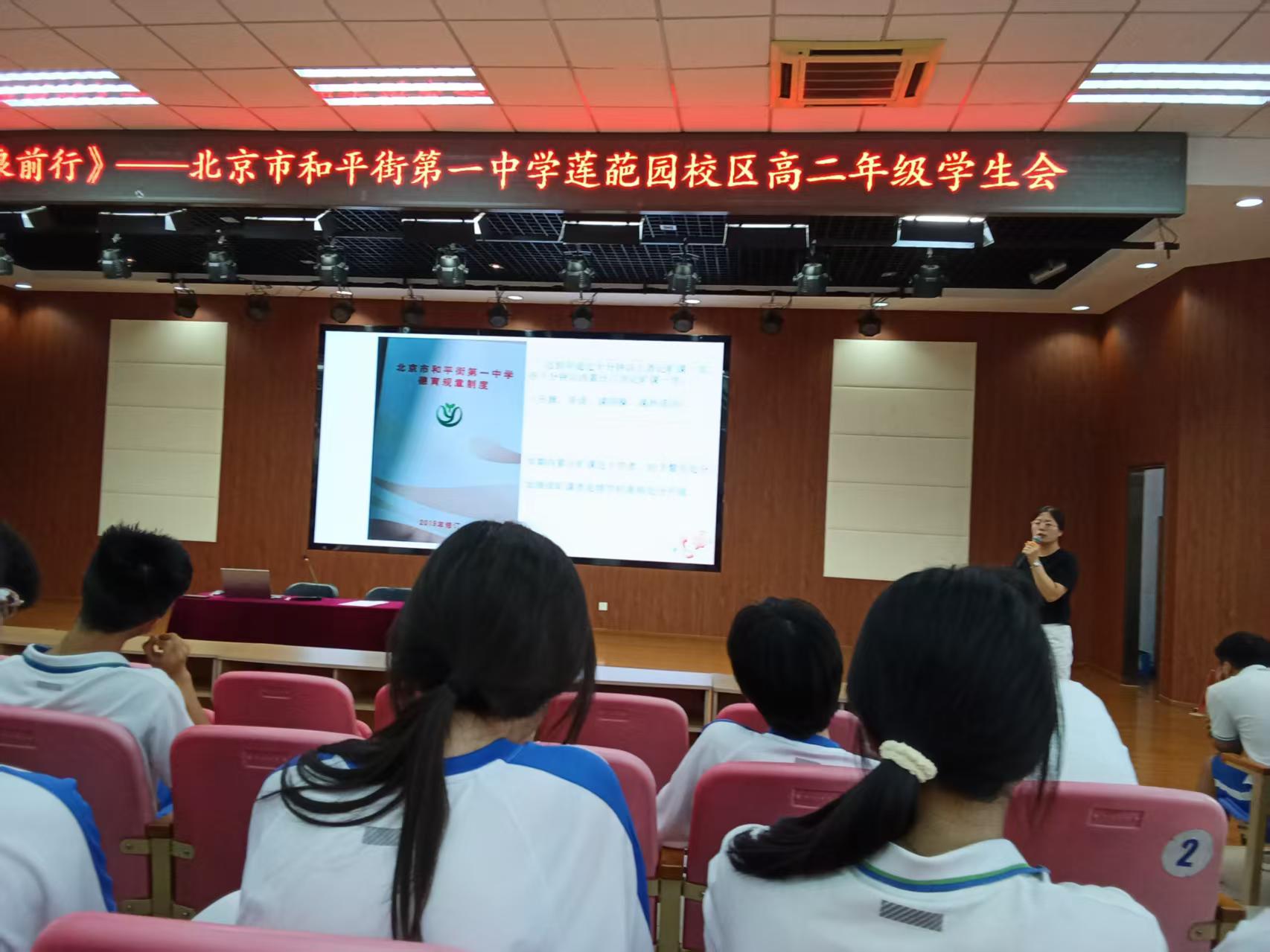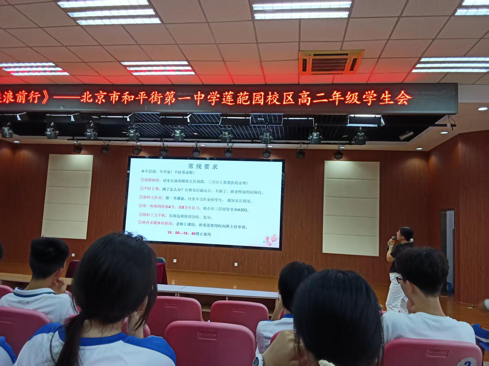 为使学生明晰上学期学习成效,规范日常行为习惯,9月3日,莲葩园校区高二年级召开了新学期全体学生会。