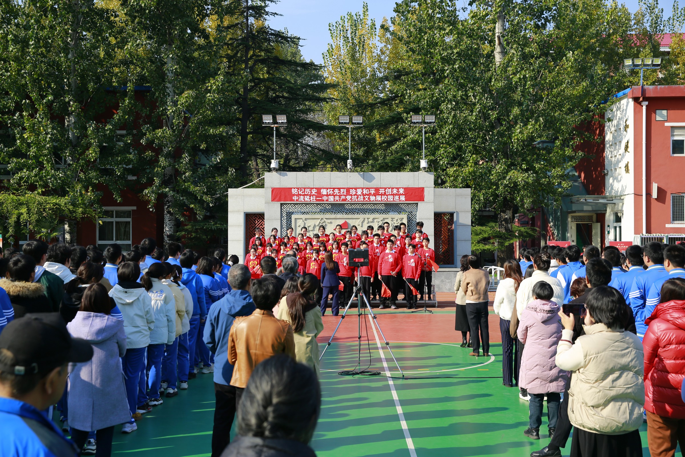 11 月 3 日上午10:00,北京市和平街第一中学和平街高中校区操场红旗飘扬、气氛庄重,“中流砥柱——中国共产党抗战文物展”校园巡展在此正式拉开帷幕。通过一件件承载厚重历史的文物、一段段可歌可泣的英雄故事,为全校师生打造了一场沉浸式红色文化盛宴,更彰显了学校以红色教育为抓手,引导学生弘扬伟大抗战精神、铸牢理想信念、勇担未来使命的育人初心。
