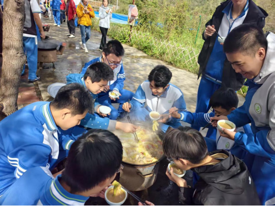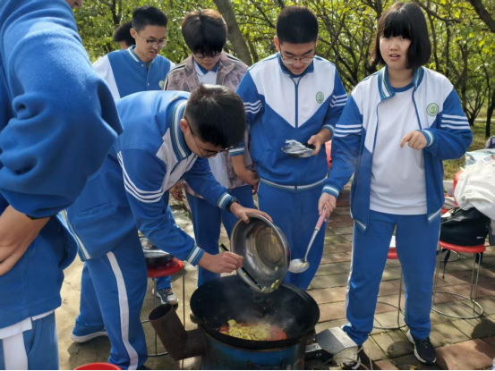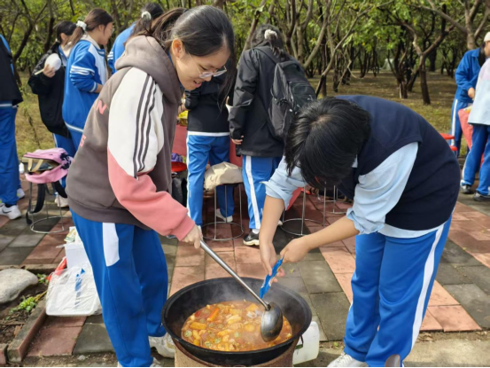午餐时光更是充满烟火气与幸福感。同学们纷纷拿出提前准备的丰富食材,洗菜、切菜、生火、烹饪有条不紊。热气腾腾的火锅咕嘟作响,香气四溢的羊肉炒饭颗粒分明,精致可口的甜品点缀其间,亲手制作的美食不仅暖胃,更治愈了所有疲惫,让友谊在分享中升温。