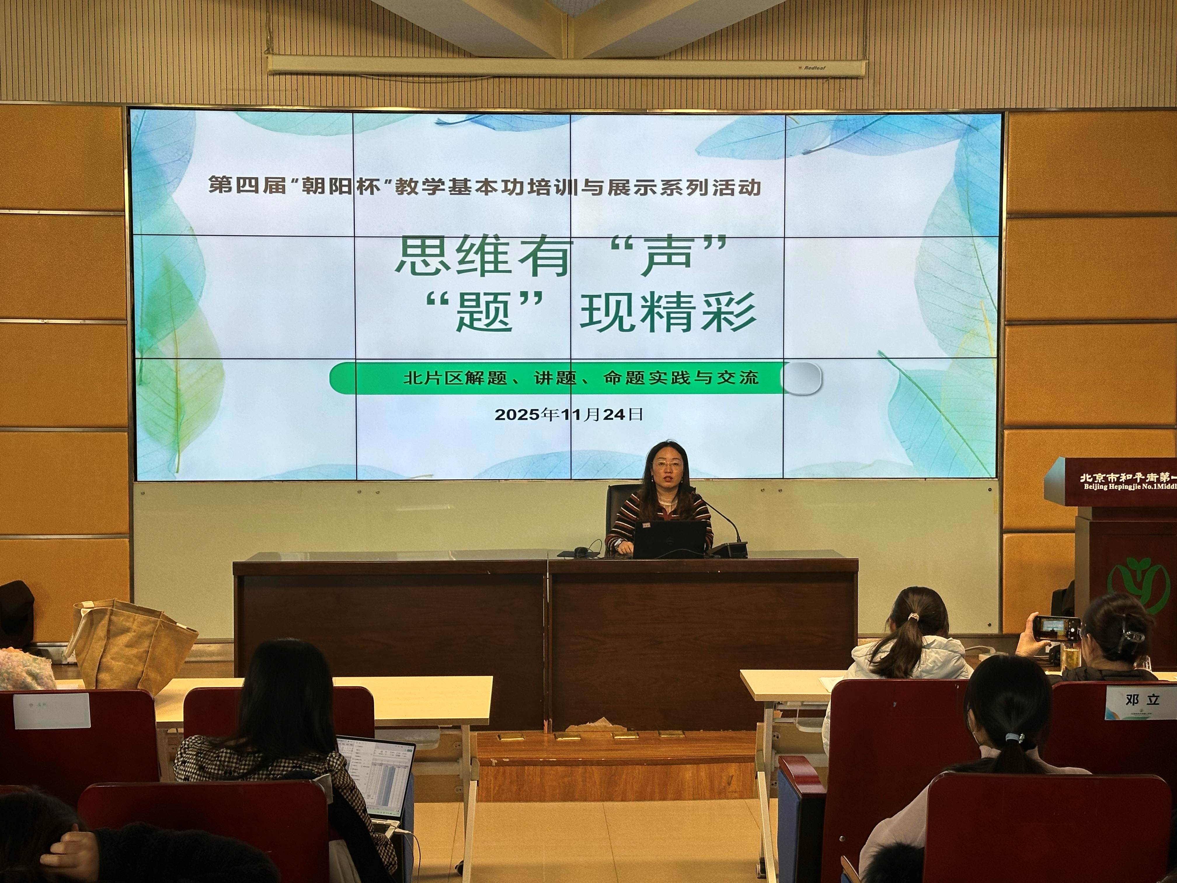 2025年11月24日,北京市朝阳区北片区全体数学教师齐聚和平街第一中学朝来校区,参加以“思维有‘声’,‘题’现精彩”为主题的第四届“朝阳杯”教学基本功培训与展示活动。活动由北片区学区组长吝孟蔚老师主持。