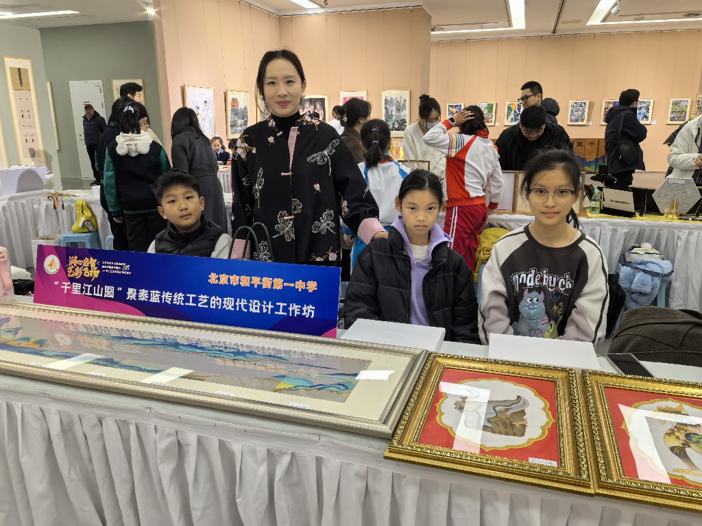 2025 年 11 月 16 日,北京市和平街第一中学景泰蓝传统工艺社团受邀参加了在炎黄艺术馆举办的北京市学生金帆书画院学生艺术实践工作坊展示活动。社团学生精心打造的《千里江山图》等景泰蓝作品在现场精彩亮相,吸引了众多关注。