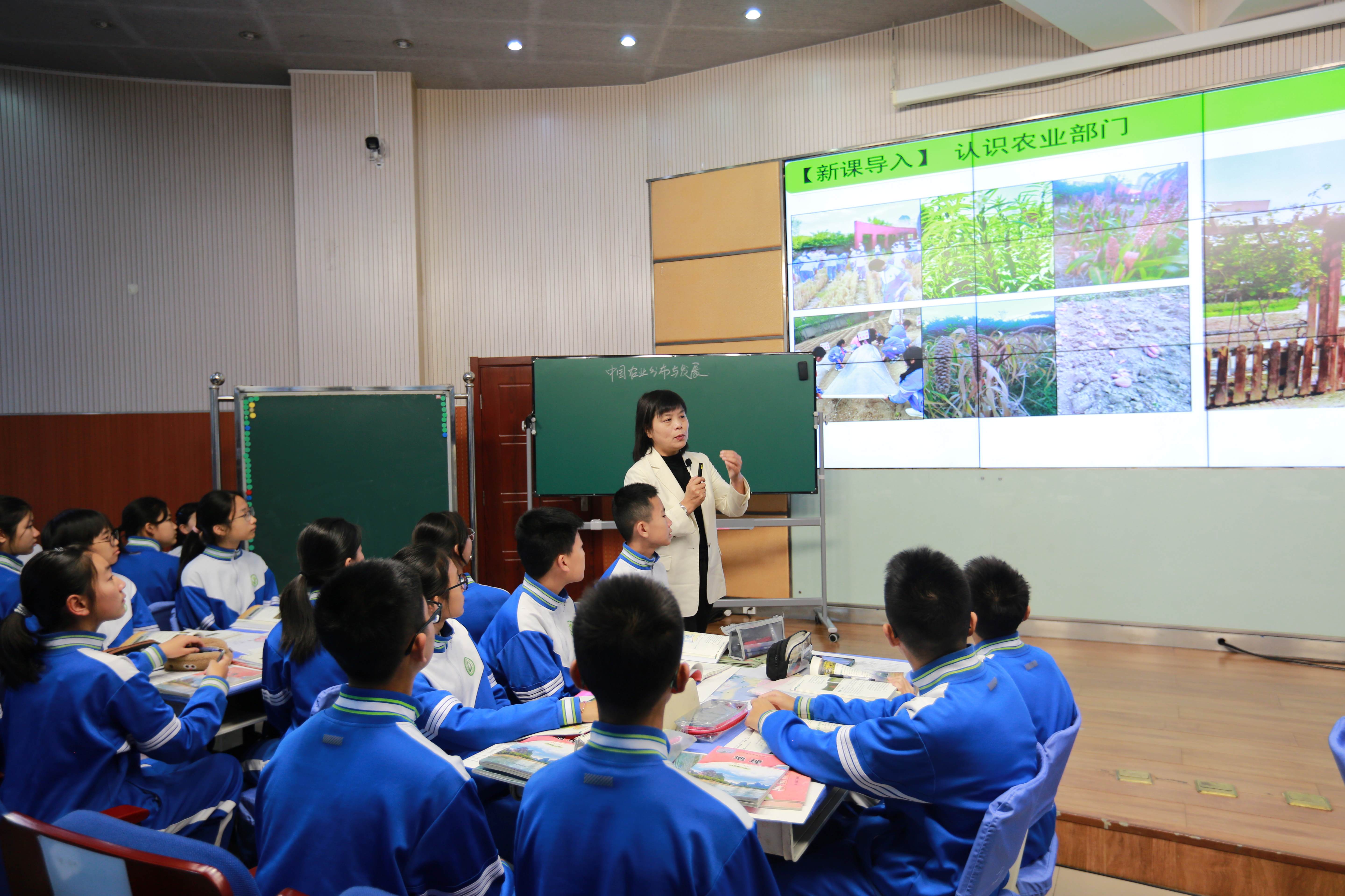 研讨环节聚焦八年级《中国农业的分布和发展》单元,学校李翠格、杨静老师分别执教《农业分布:从小规划到大格局》与《科技兴农:从大应用到小制作》两节研究课。课程以“一亩园”真实情境为主线,引导学生通过叠图分析、数据比对、科技制作等方式,亲历科学探究全过程,提升地理实践力与综合思维。