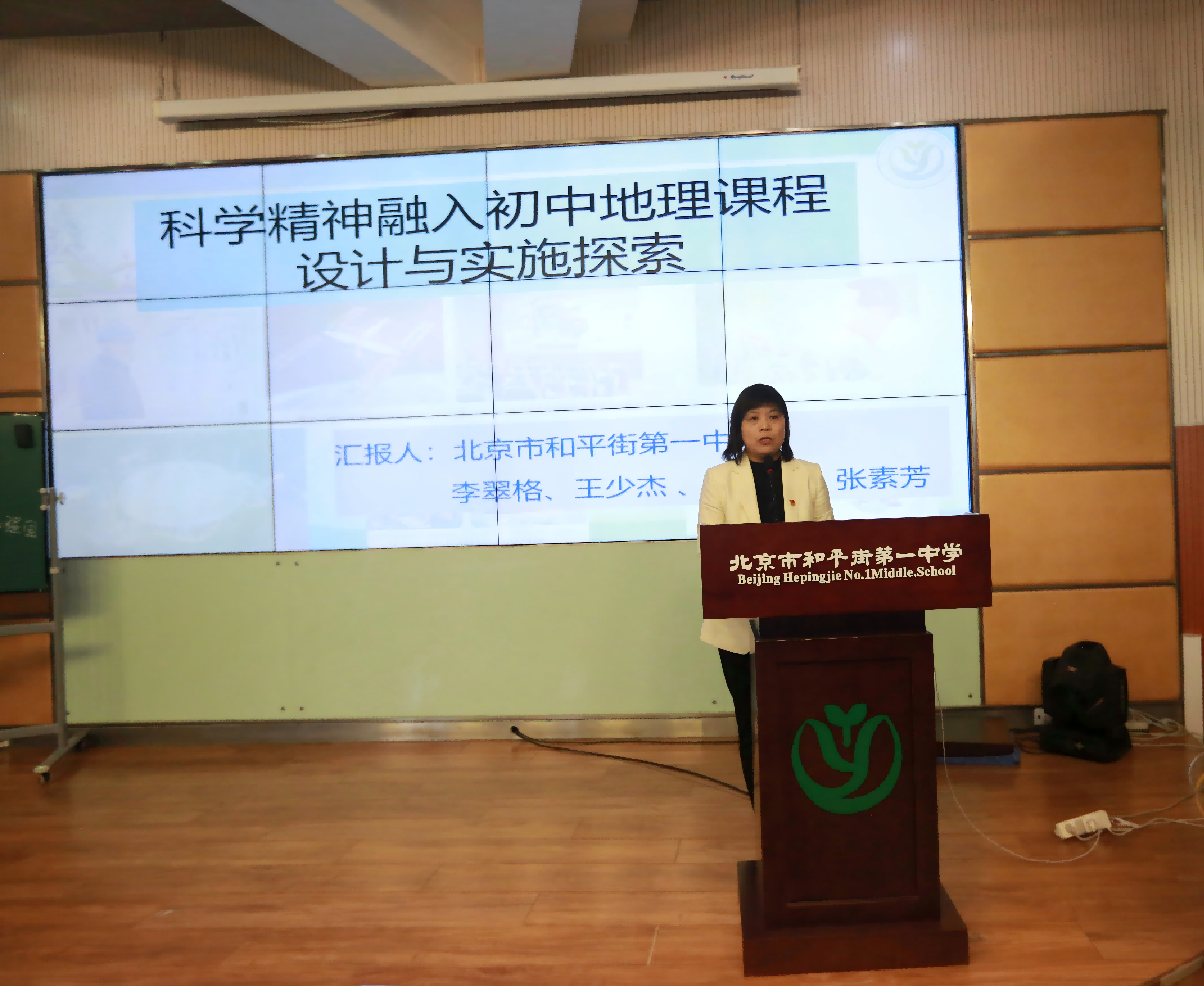 在课程建设交流中,李翠格、王少杰、张国庆、张素芳四位老师系统汇报了学校基于“和合”课程所构建的“基础—拓展—研究”三级地理课程体系。汇报展示了从乡土实践到跨学科融合的课程进阶路径,体现了科学精神在地理教学中的系统性融入。