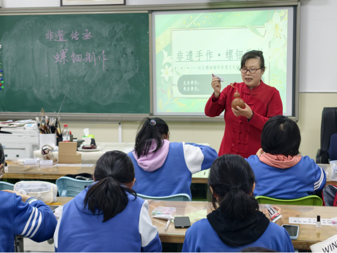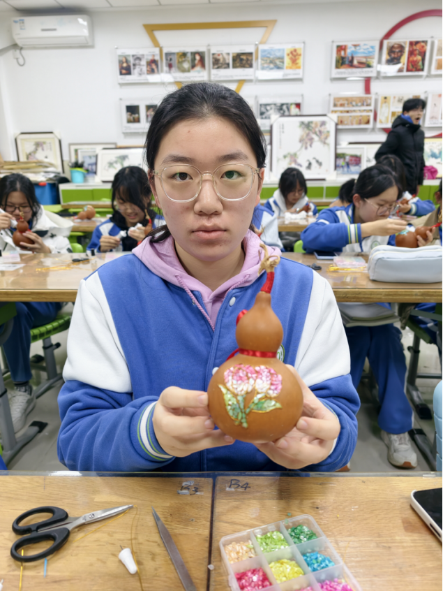 据悉,和平街一中始终重视中华优秀传统文化的校园落地实践,此前已相继开展糖画、木版画、绒花等多项非遗体验活动。此次螺钿与烫葫芦的跨界实践,是学校“非遗+社团+双师”育人模式的成功探索。未来,学校将继续邀请更多非遗大师进校园,与校内特色社团深度联动,解锁更多传统艺术创新玩法,让文化自信的种子在同学们心中生根发芽。
