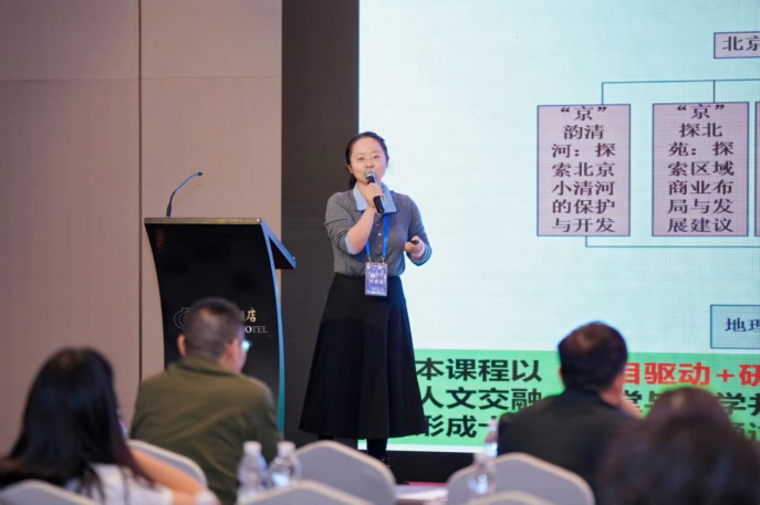 在专题报告与说课展示环节,三位教师结合学校地理特色课程开发经验,分别进行了高质量分享:孙倩老师作题为《基于三阶认知模式的中学地理实验衔接课程建设——以北京市和平街第一中学地理特色课程为例》的汇报,系统介绍了学校在初高中地理实验教学衔接方面的创新路径,强调通过“感知—理解—迁移”三阶认知模型提升学生科学思维与实践能力,获得与会专家一致好评。陈瑶老师围绕《基于项目式学习的高中地理研学课程研究——以北京市和平街第一中学地理特色课程为例》,深入剖析了如何以真实问题驱动、跨学科整合的方式开展地理研学活动,展示了学校项目化学习的阶段性成果,引发同行广泛共鸣。李春红老师以《城市发展和生态保护——以“南海子地区”为例》为题进行说课展示,立足区域发展现实议题,引导学生在情境中构建人地协调观,体现了核心素养导向下课堂教学的深度变革。三位教师的发言内容扎实、设计新颖,充分彰显了学校地理学科在课程改革、教学创新和学生综合素养培养方面的探索成效,赢得了现场专家和同行的高度认可。