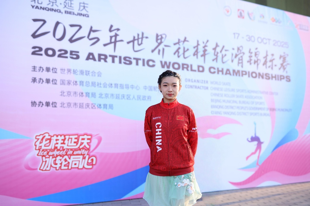 9岁起,焦瑾萱便开始学习花样滑冰和轮滑,两项运动相互滋养——冰上的精准控制让她在轮滑时更具稳定性,而轮滑的灵活节奏也为她的冰上表演增添了独特韵律。2023年,她在全国花样滑冰锦标赛队列滑项目中获得铜牌,成功斩获“运动健将”称号;2025年,她代表中国队参加世界花样轮滑锦标赛混合队列比赛,取得世界第五的好成绩,并成功荣膺“国际运动健将”称号。