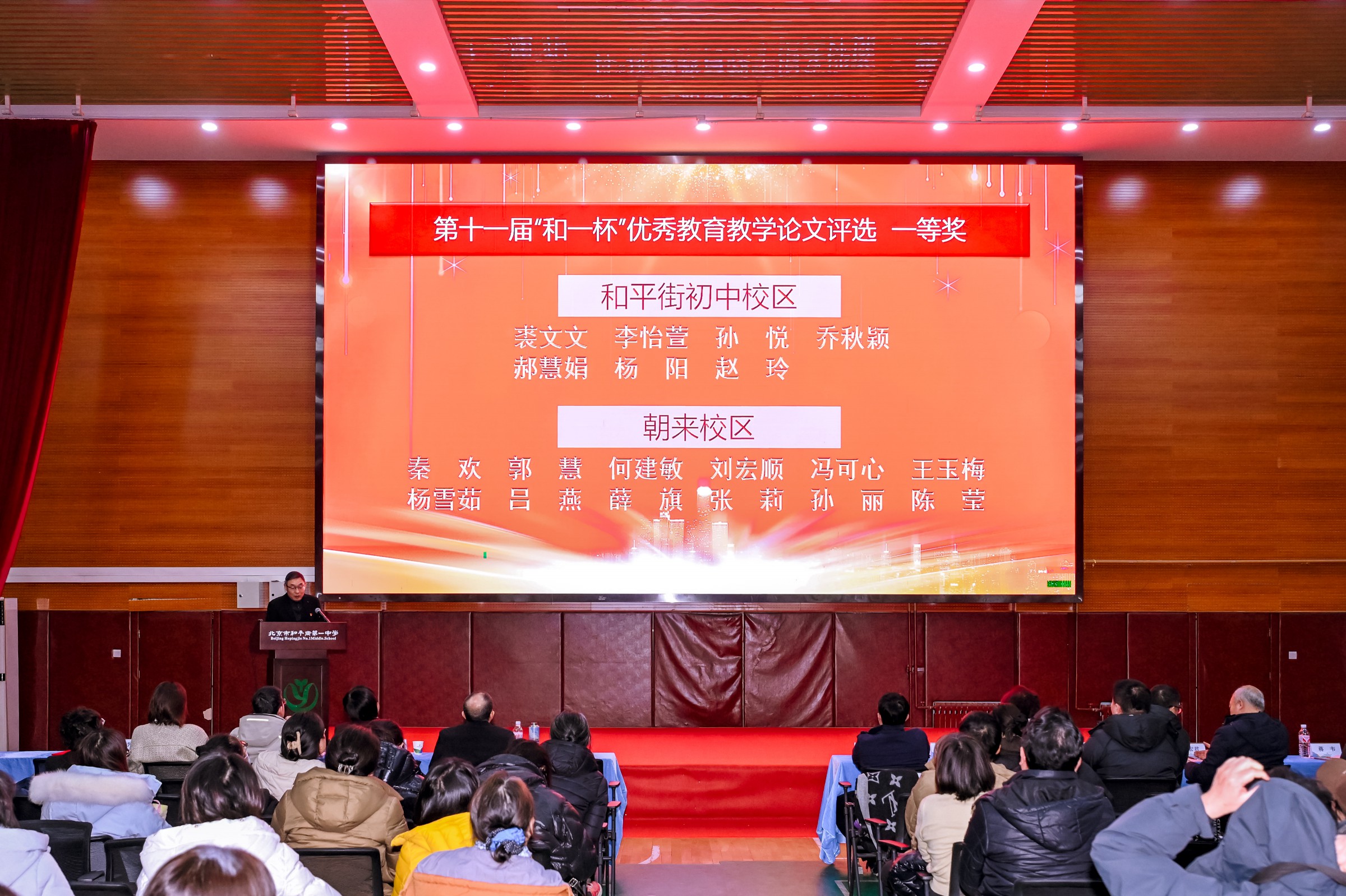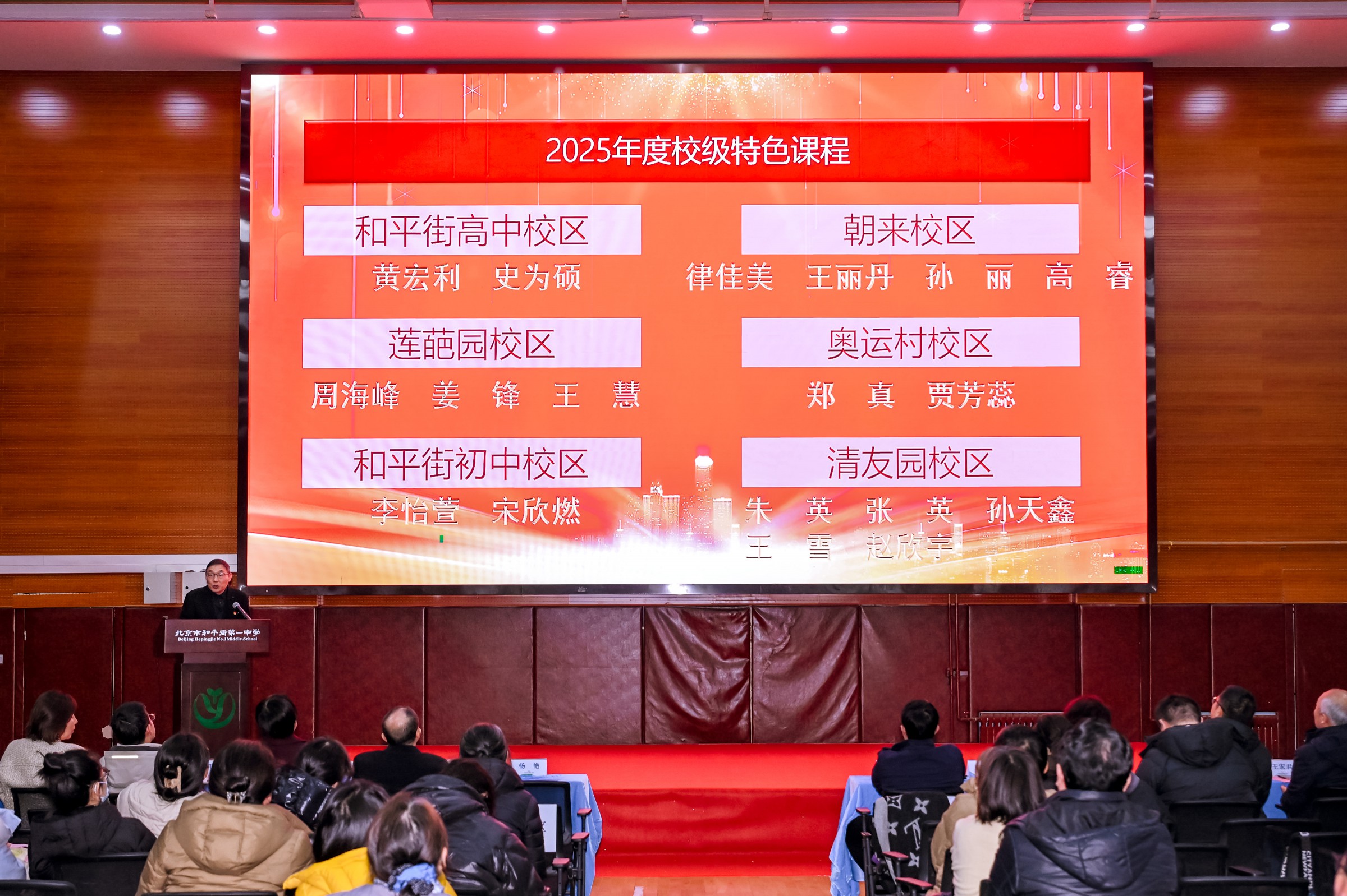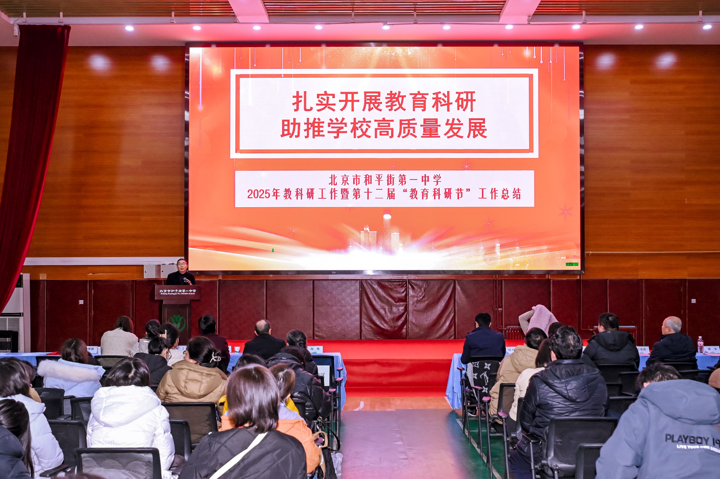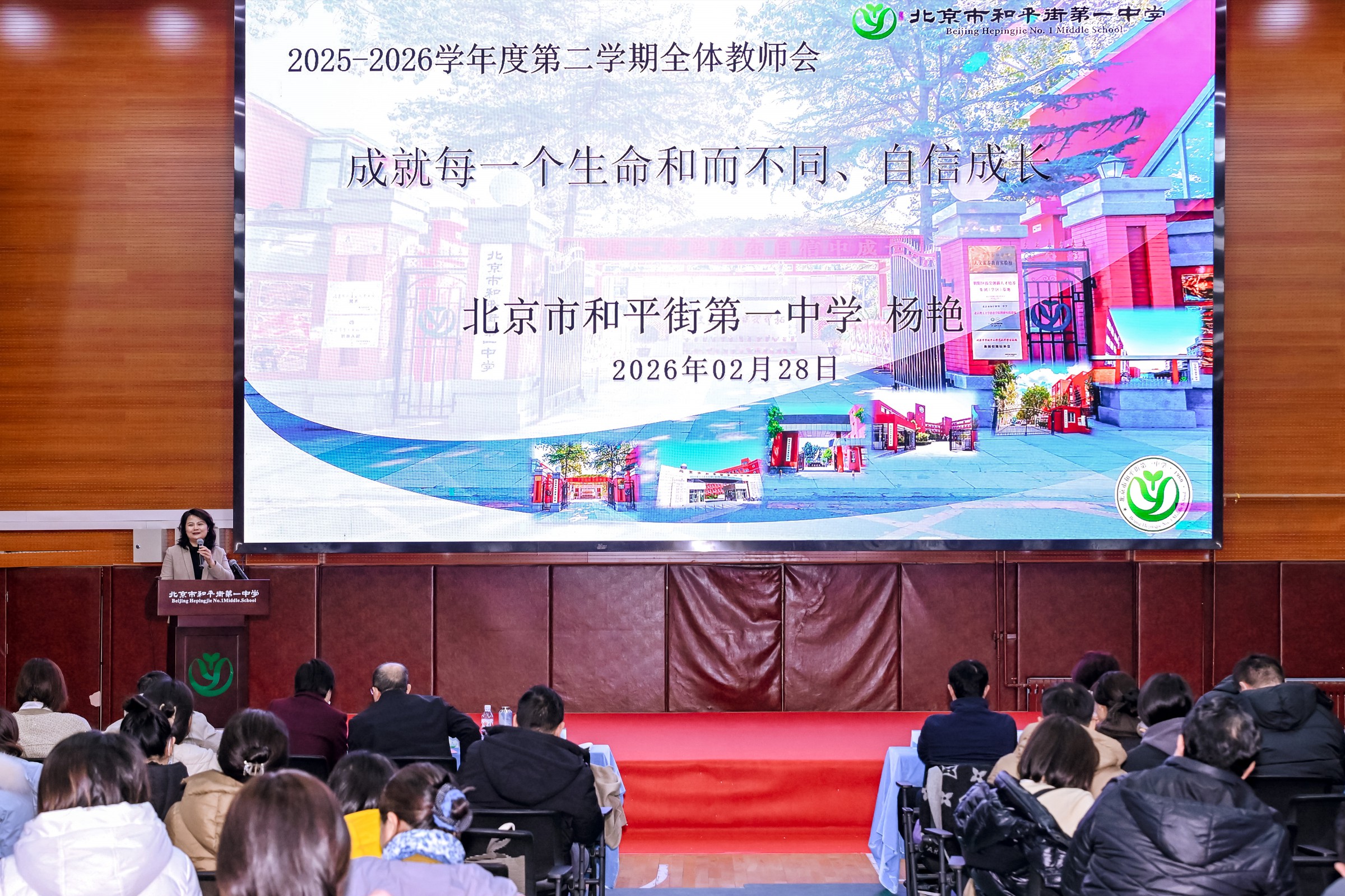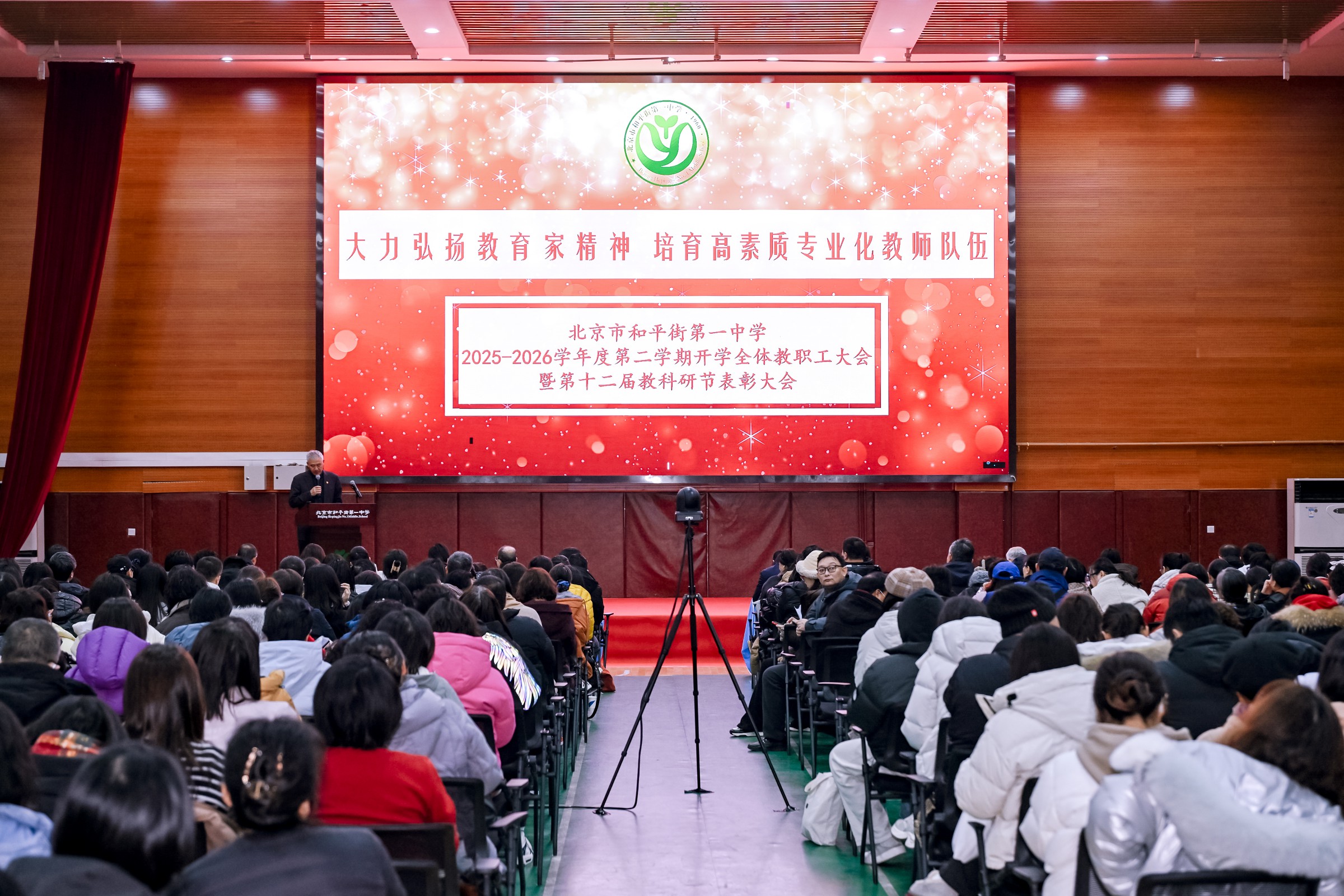 春启新程,笃行致远。为新学期各项工作开好局,凝聚育人共识,明确奋进方向,进一步加强教师队伍建设,弘扬教育家精神,促进人才队伍高质量发展,共绘学校高质量发展新蓝图。2月28日上午,北京市和平街第一中学召开2025-2026学年度第二学期开学全体教职工大会暨第十二届教科研节表彰大会在朝来校区隆重召开。会议由曹成勇副校长主持。
