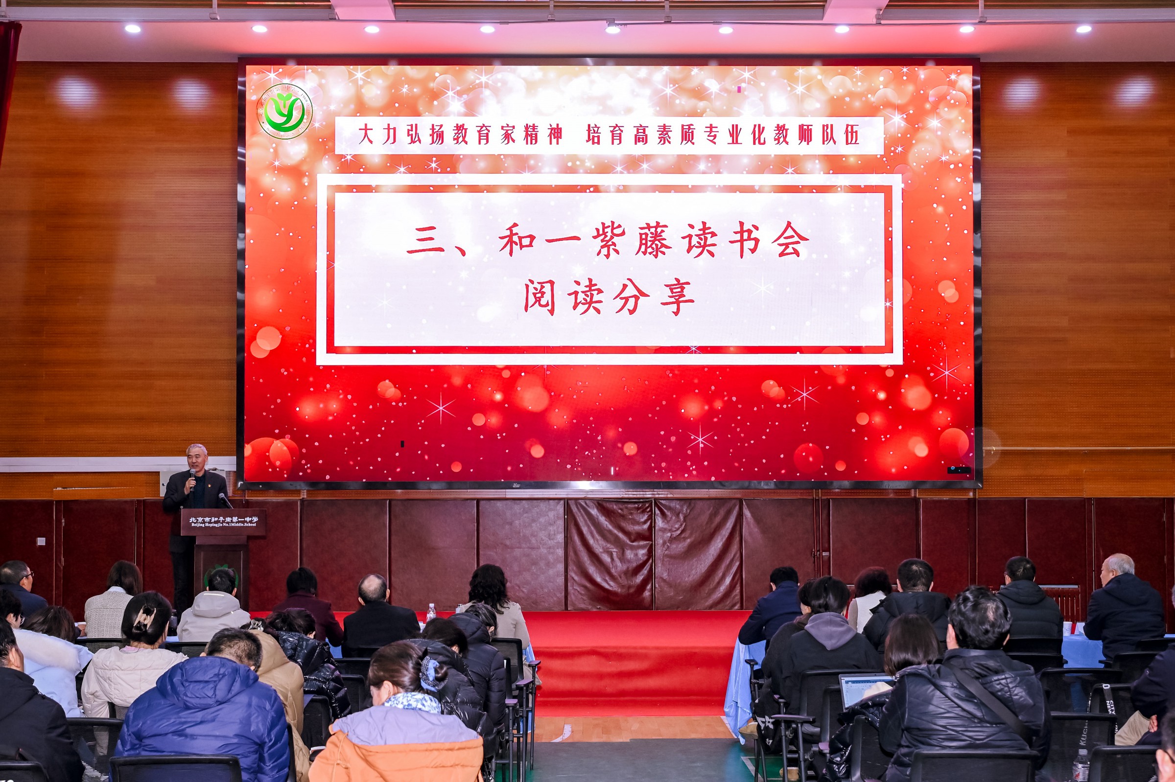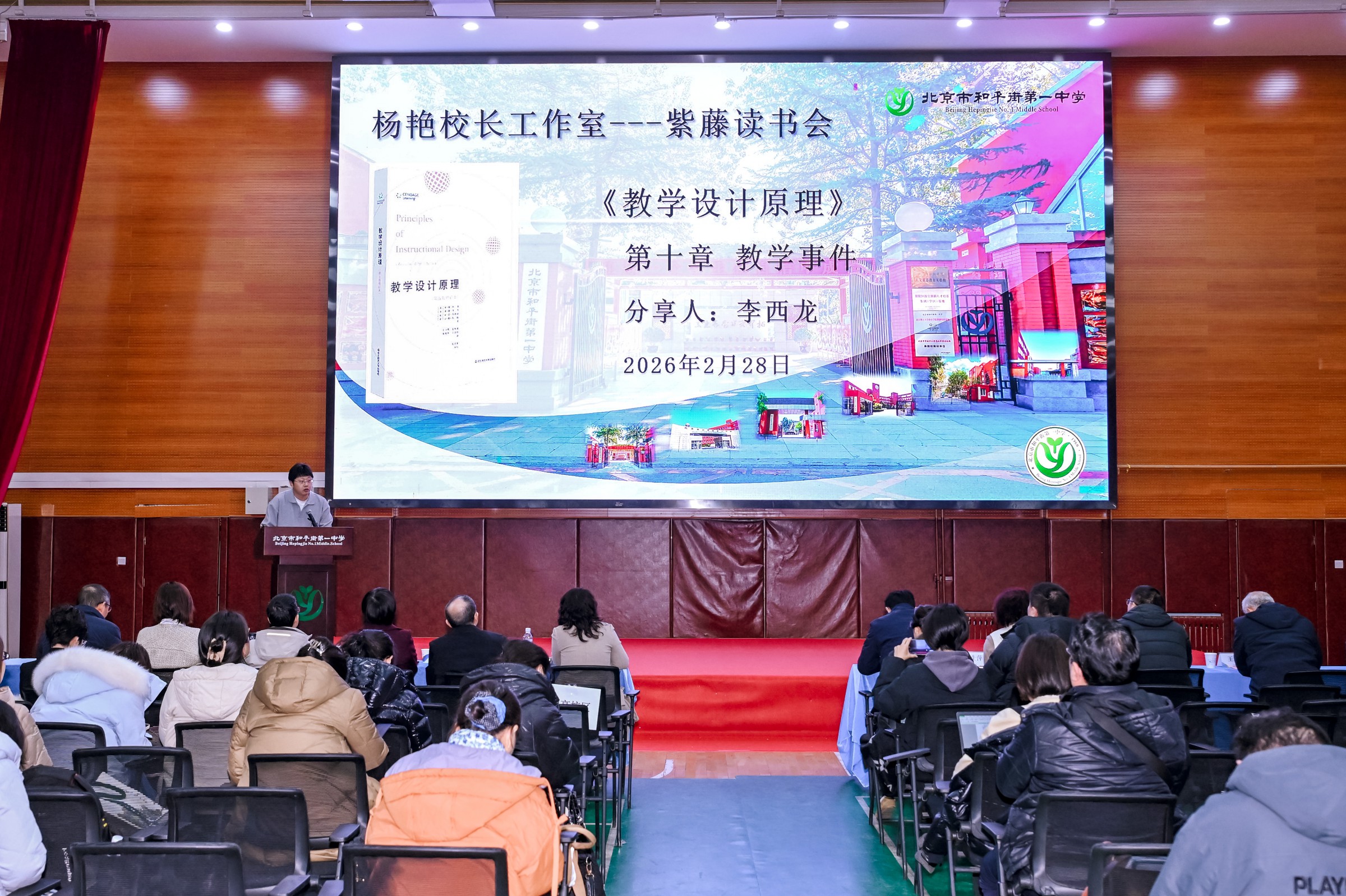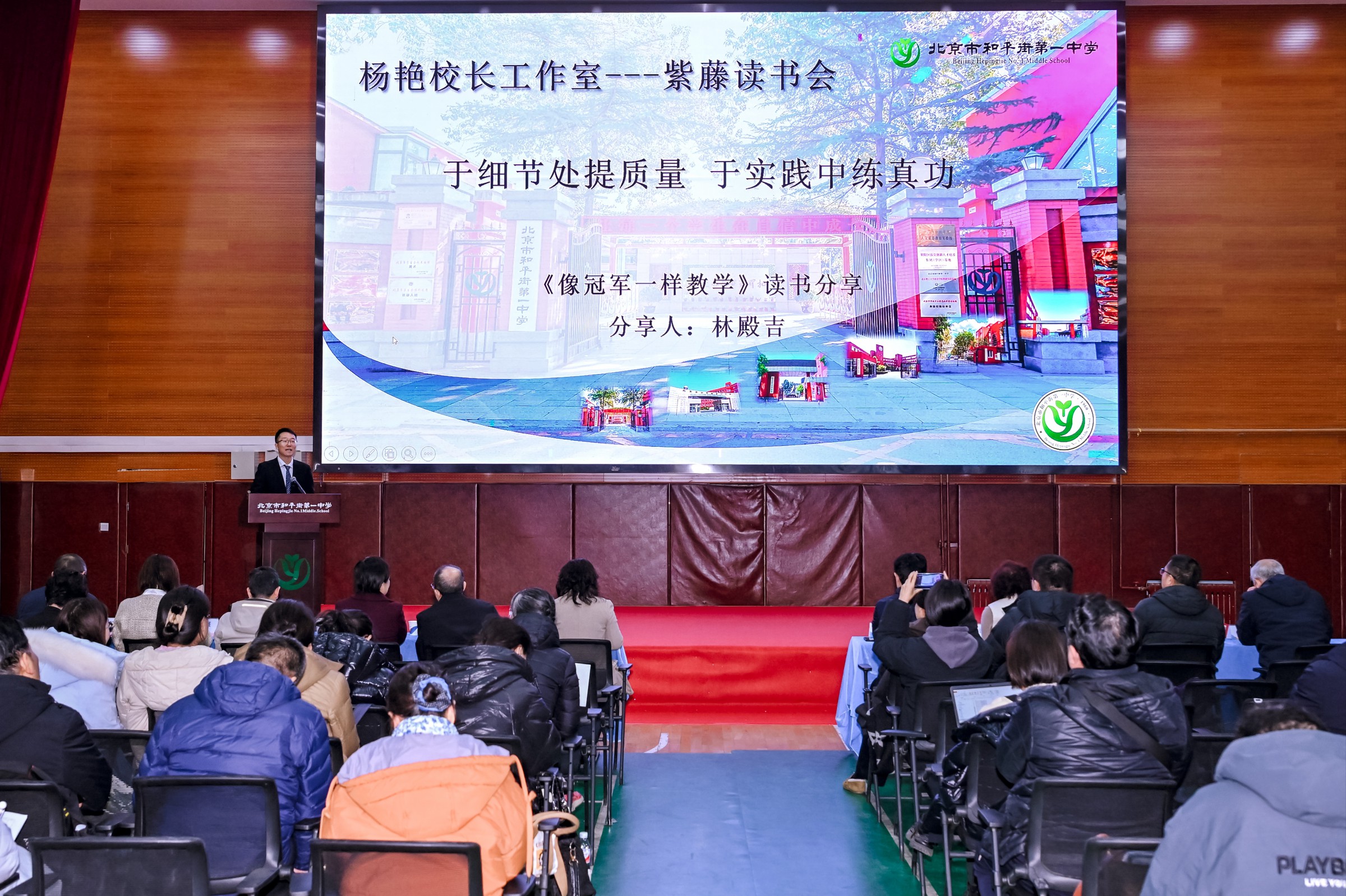 会议第三项,“和一紫藤读书会”读书分享环节,分别来自杨艳校长工作室、“紫藤花开”青年教师成长营以及班主任队伍的教师代表林殿吉老师、李西龙老师和李楠老师,围绕《像冠军一样教学》《教学设计原理》两本书展开分享。林殿吉老师聚焦教学事件,理论与实践结合,分享了课堂实践中的策略与思考;李西龙老师结合罗伯特·加涅的教学设计理念,阐述了其对教学工作的启示;李楠老师结合师生关系,分享了将书中理念转化为教学实践的心路历程,展现了做一名有温度有专业度教师的实践追求。三位教师的分享充分彰显了学校教师勤于学习、乐于思考的良好学风。2025年,自“和一紫藤读书会”成立以来,集团校长办公会领衔推进各校区、各教研组、年级组读书活动,各学习团队全年共读50本书籍,学习型组织建设熠熠生辉。