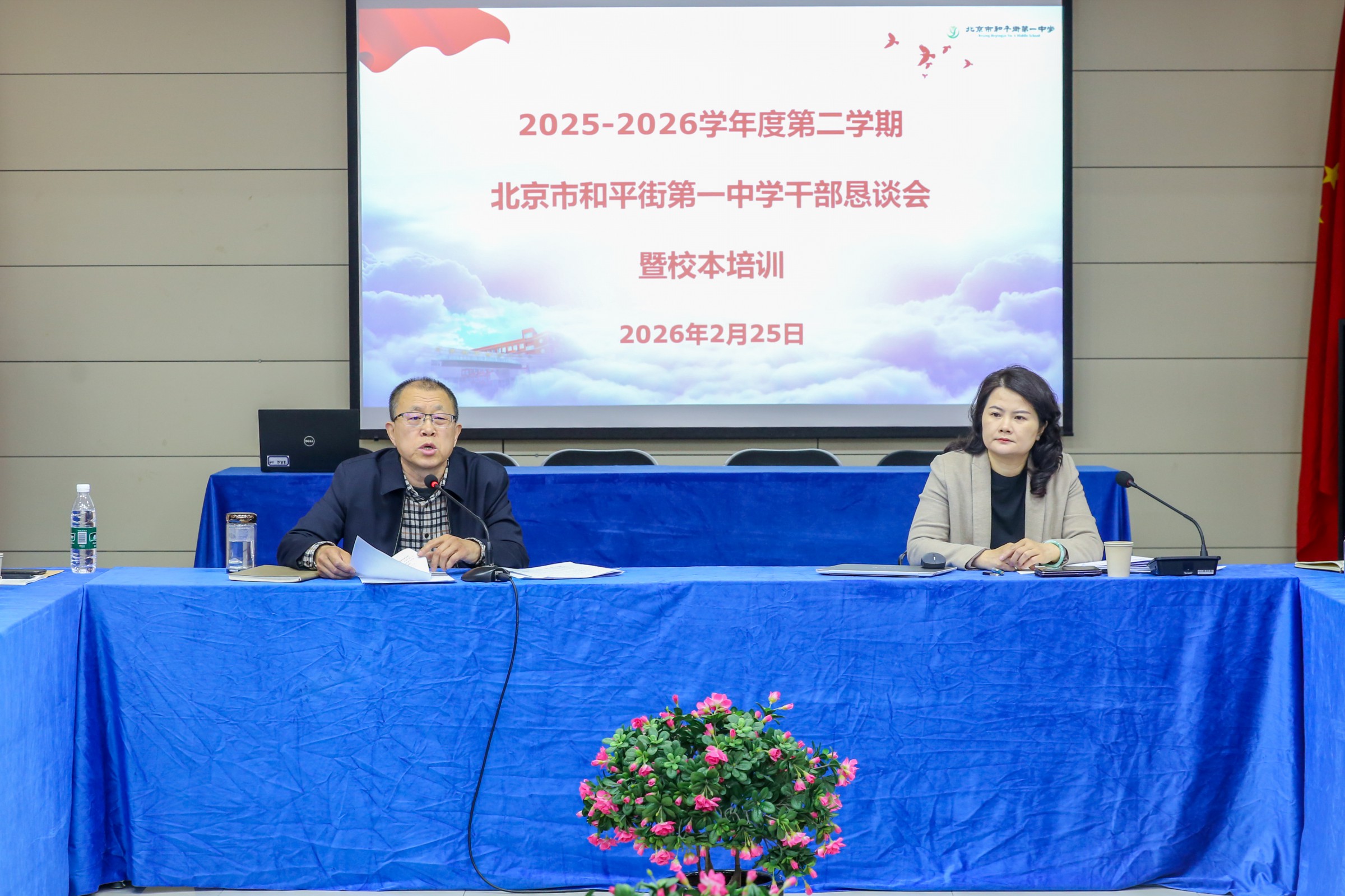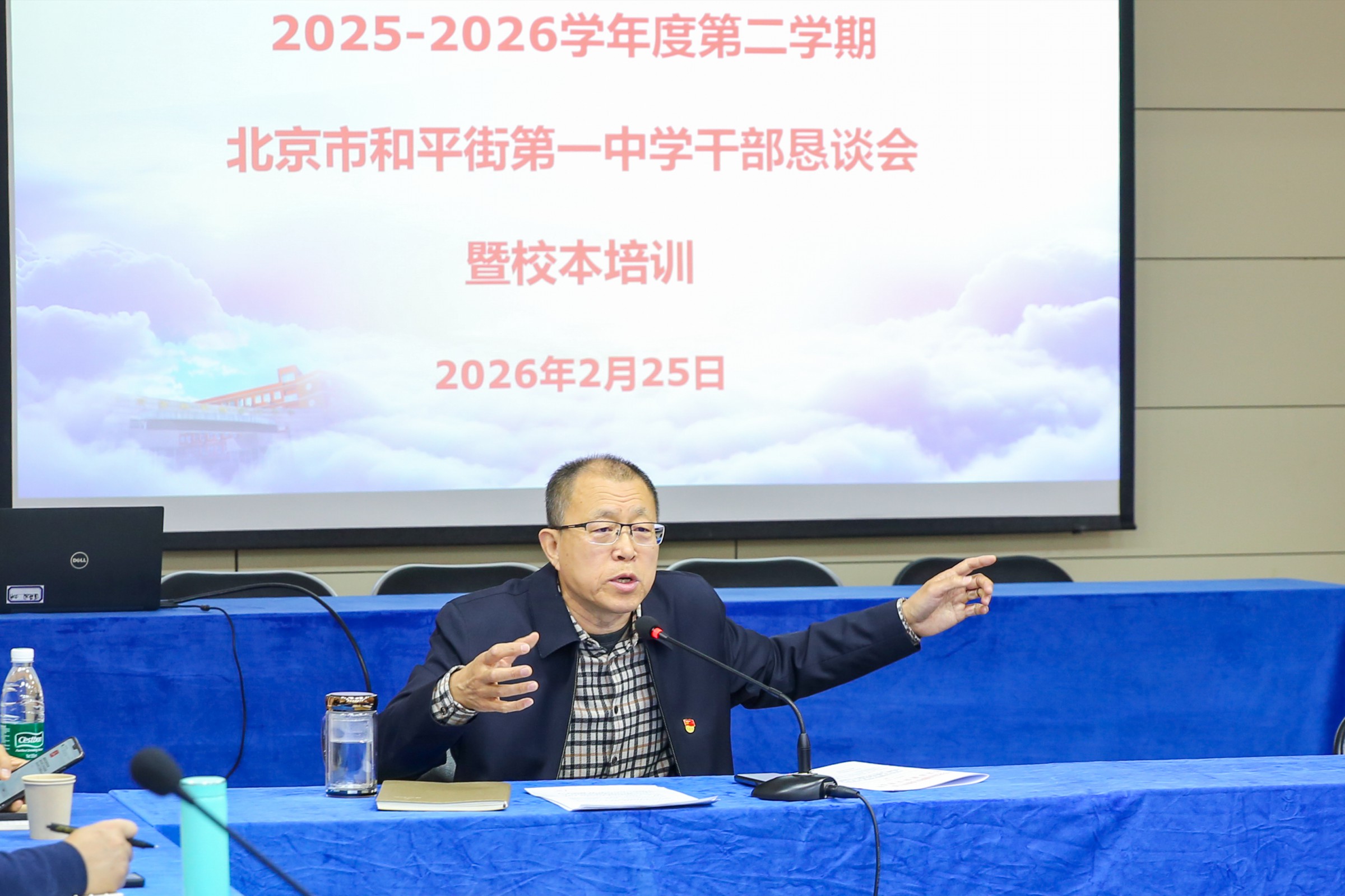 2026年2月25日,北京市和平街第一中学在莲葩园校区举行2025-2026学年度第二学期干部恳谈会暨校本培训。集团全体中层及以上行政干部齐聚一堂,围绕学校“十五五”发展规划编制和年度目标任务,共商学校高质量发展大计。