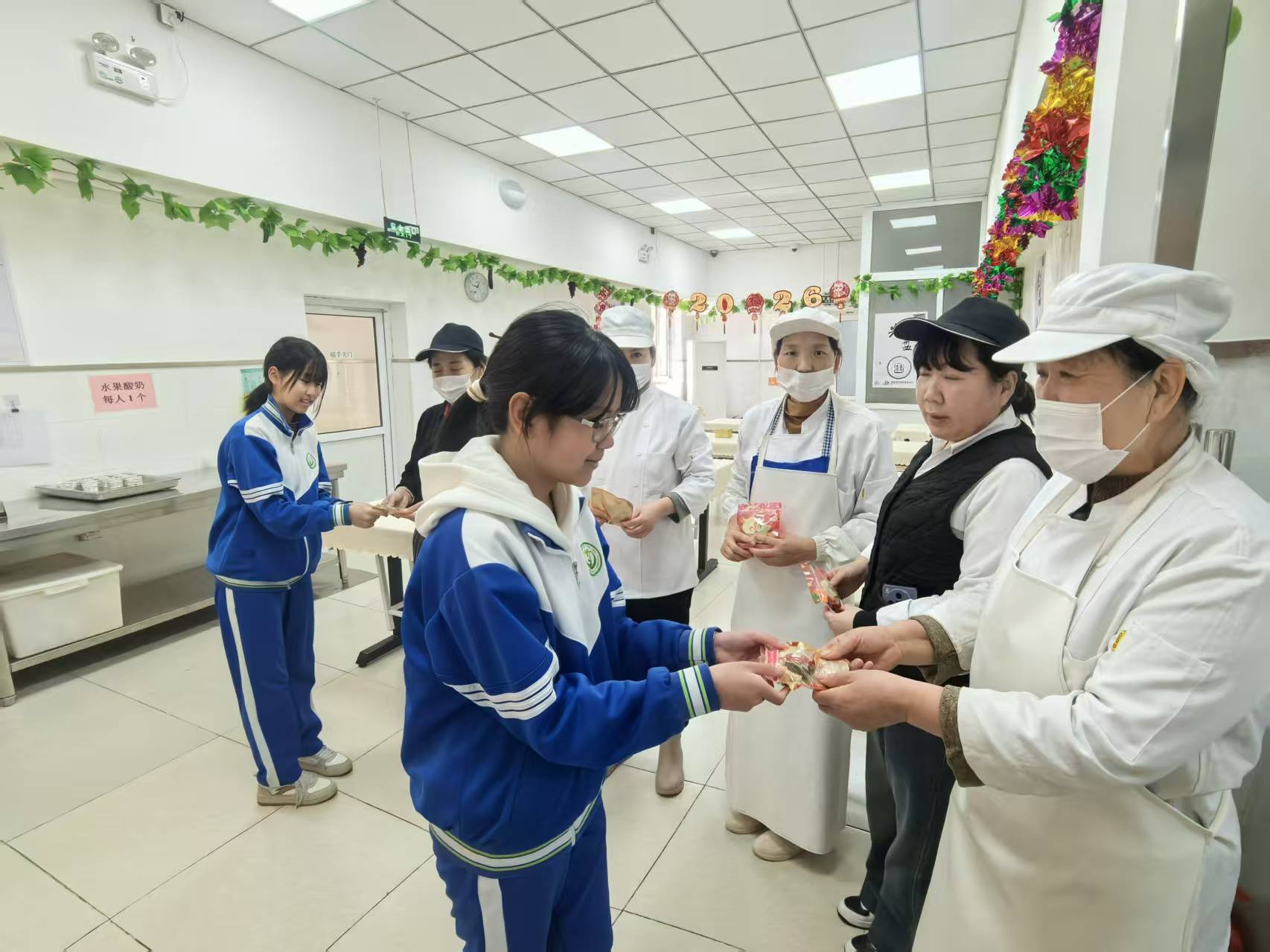 活动现场奶香四溢,同学们在动手实践中体验劳动创造美好的快乐,更在协作互助中感悟奉献精神。当一份份饱含心意的饼干送到女教师、第三方服务公司保洁阿姨及餐饮公司食堂阿姨手中时,温暖的笑脸在春日里绽放。此次活动将感恩教育与劳动实践深度融合,既引导学生以手作传递敬意,也让“和”文化在温馨互动中浸润校园,奏响了一曲和谐的春日赞歌。