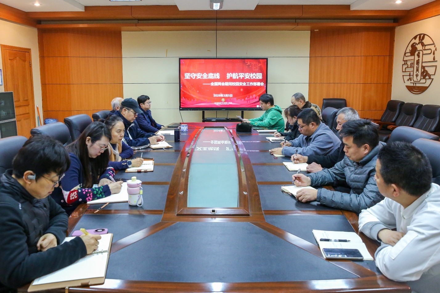 全国两会召开之际,北苑莲葩园校区于2026年3月5日召开了校园安全工作推进会,部署开学初及两会期间校园安全工作。主管副校长杜鹏、校长助理王宏君,及总务处、教务处、学生发展处与食堂、物业、保安、宿管等负责人参会。