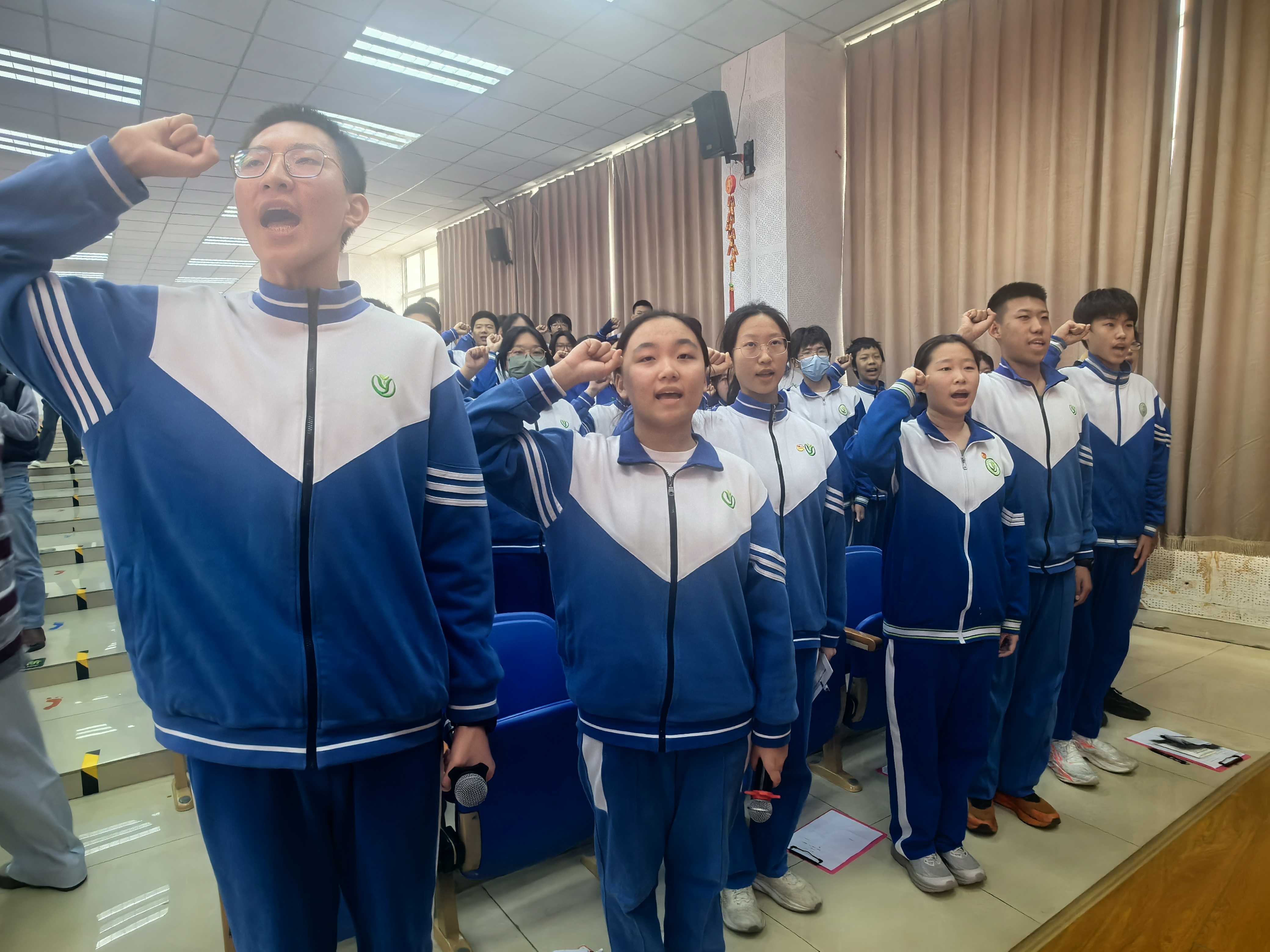 “我宣誓!奋斗一百天,让梦想在六月张开翅膀!拼搏一百天,让青春在考场绽放光芒!”在领誓人的带领下,全体同学举起右拳庄严宣誓。铿锵誓言响彻会场,回荡在每个人心中,彰显着必胜的信念与决心。
