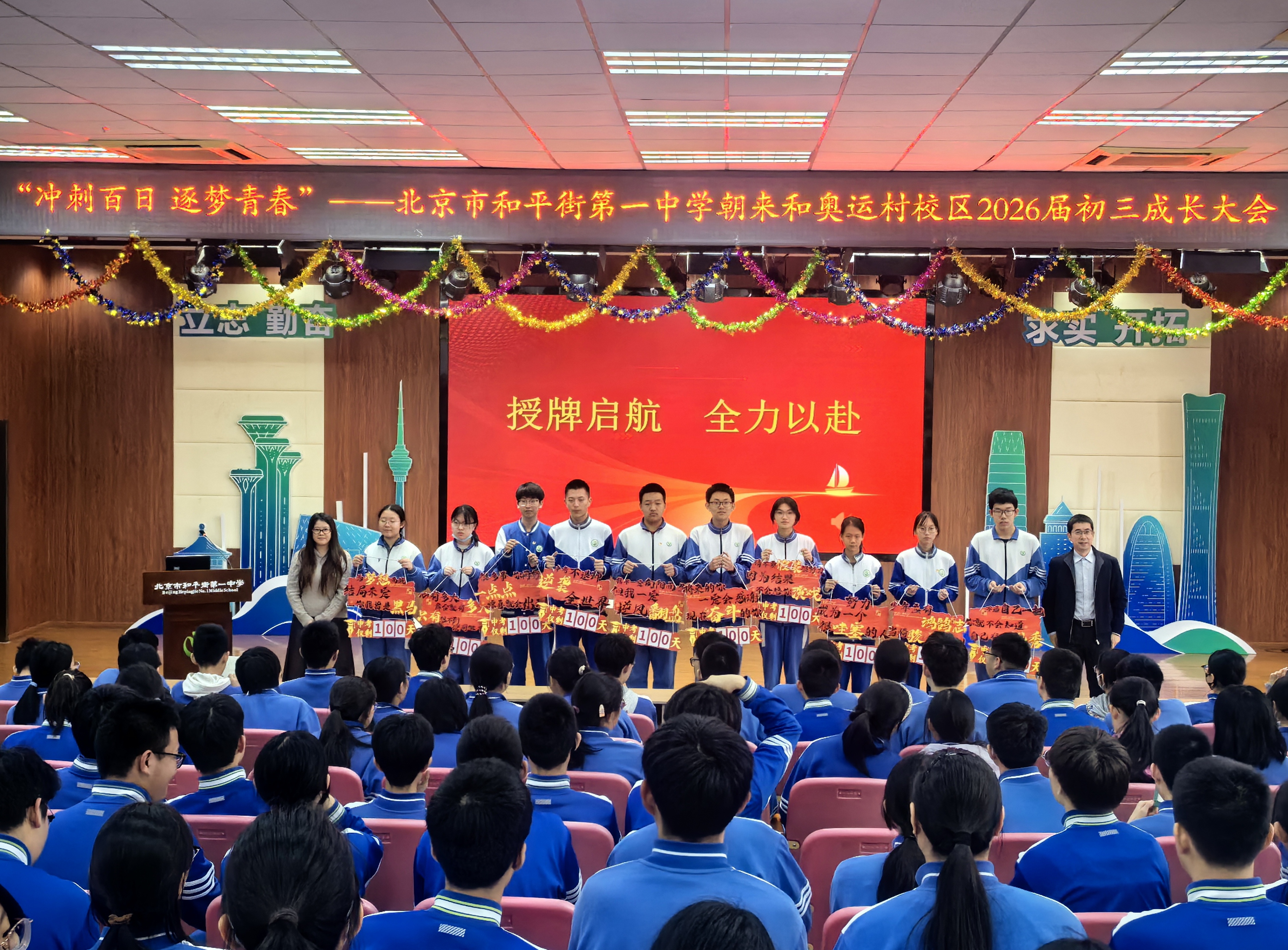 春回大地,中考百日之期悄然来临。为激发毕业班学子冲刺热情,凝聚家校共育合力,近日,北京市和平街第一中学和平街初中校区、朝来和奥运村校区先后举行了2026届初三学生百日立志成长大会。校级领导、全体初三师生齐聚一堂,共同见证这一承载希望与力量的重要时刻。