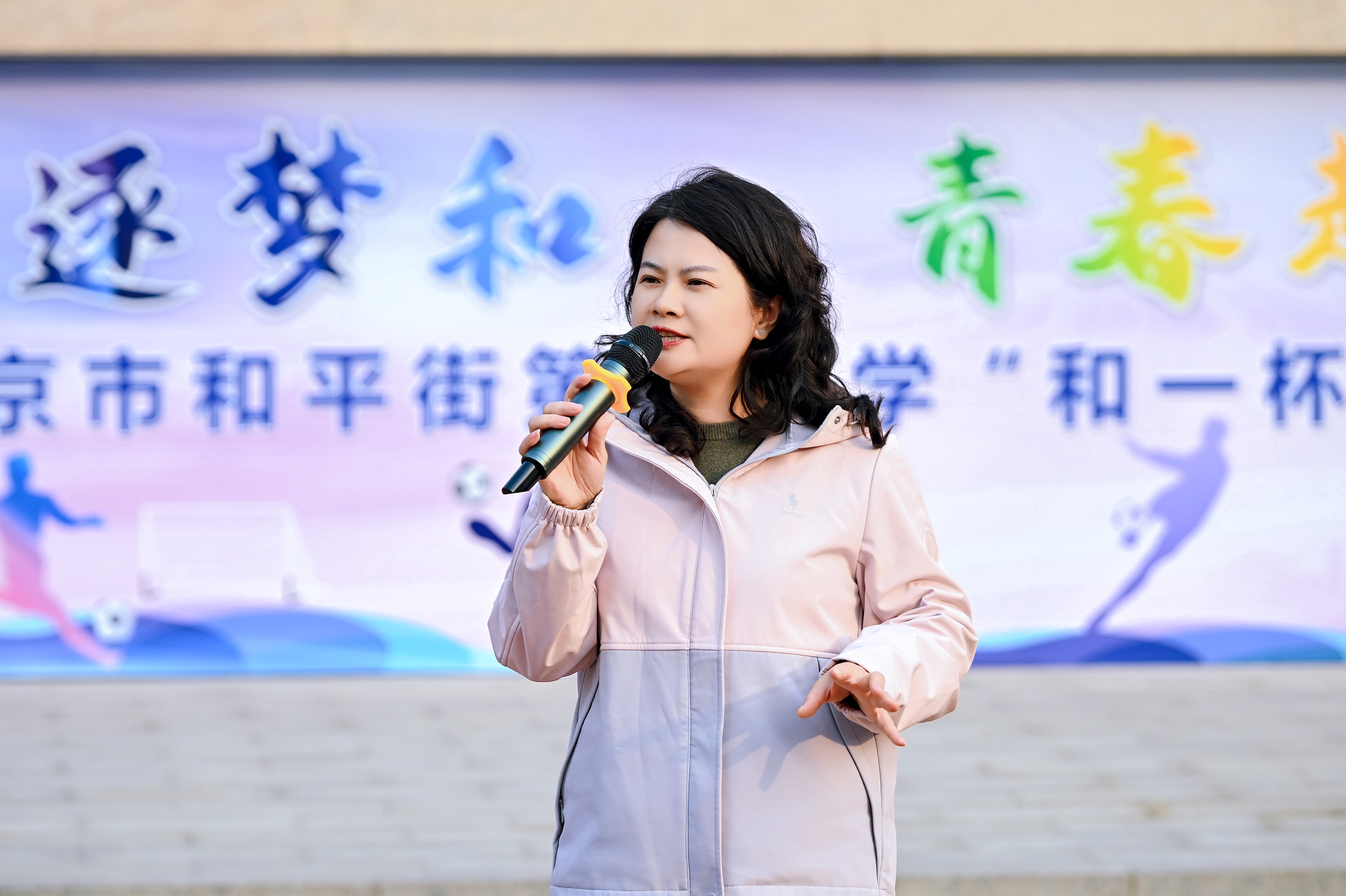 启动仪式在昂扬的氛围中拉开帷幕。校长杨艳发表致辞,提出了北京市和平街第一中学的三点教育共识:第一,身心健康、自信成长;第二,以体育人;第三,成为自己健康的第一责任人。随后,杨艳校长、王松书记、杜鹏副校长共同为联赛剪彩。杨艳校长向体育组授联赛大旗,王松书记、杜鹏副校长、李春光校长助理为各班代表授班旗。一面面由各班级自主设计的旗帜迎风舒展,它们不仅是班级荣誉的象征,更承载着全体师生对联赛圆满举办的期许,见证着每个班级团结拼搏、奋勇争先的青春誓言。