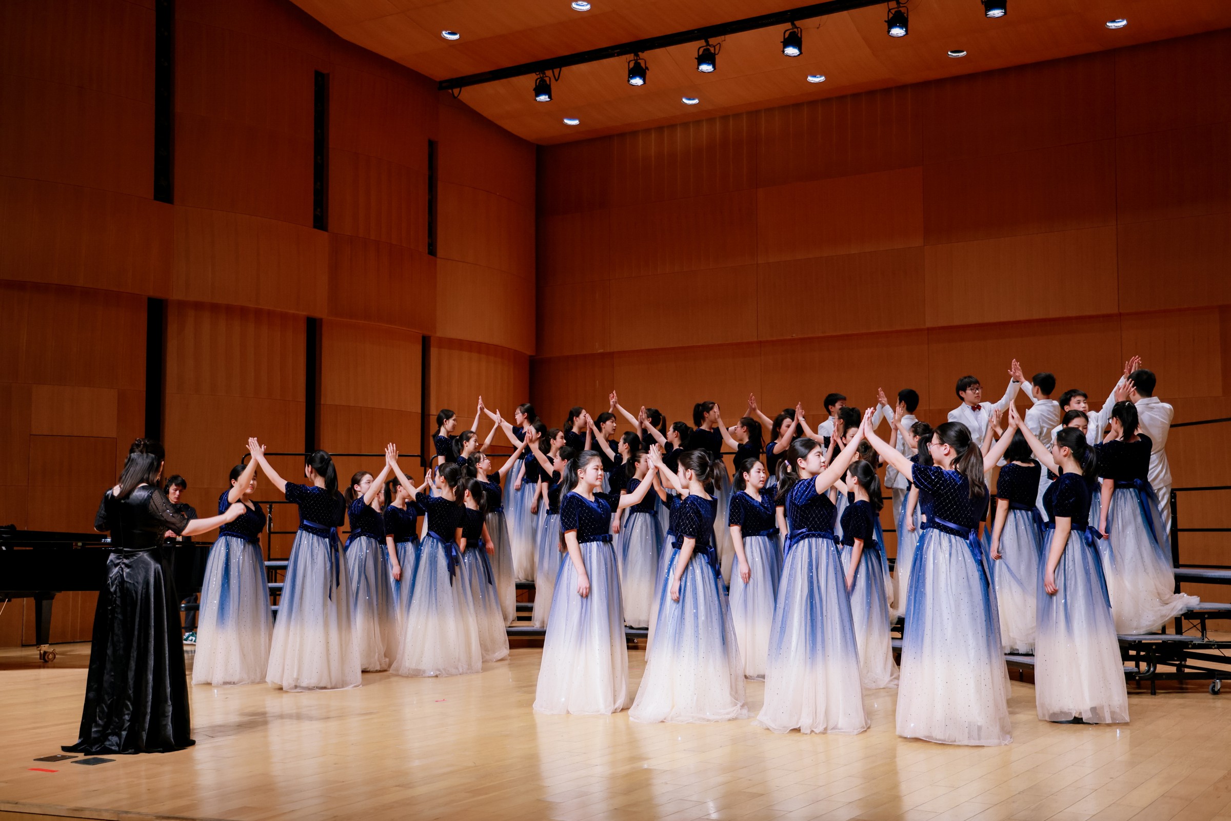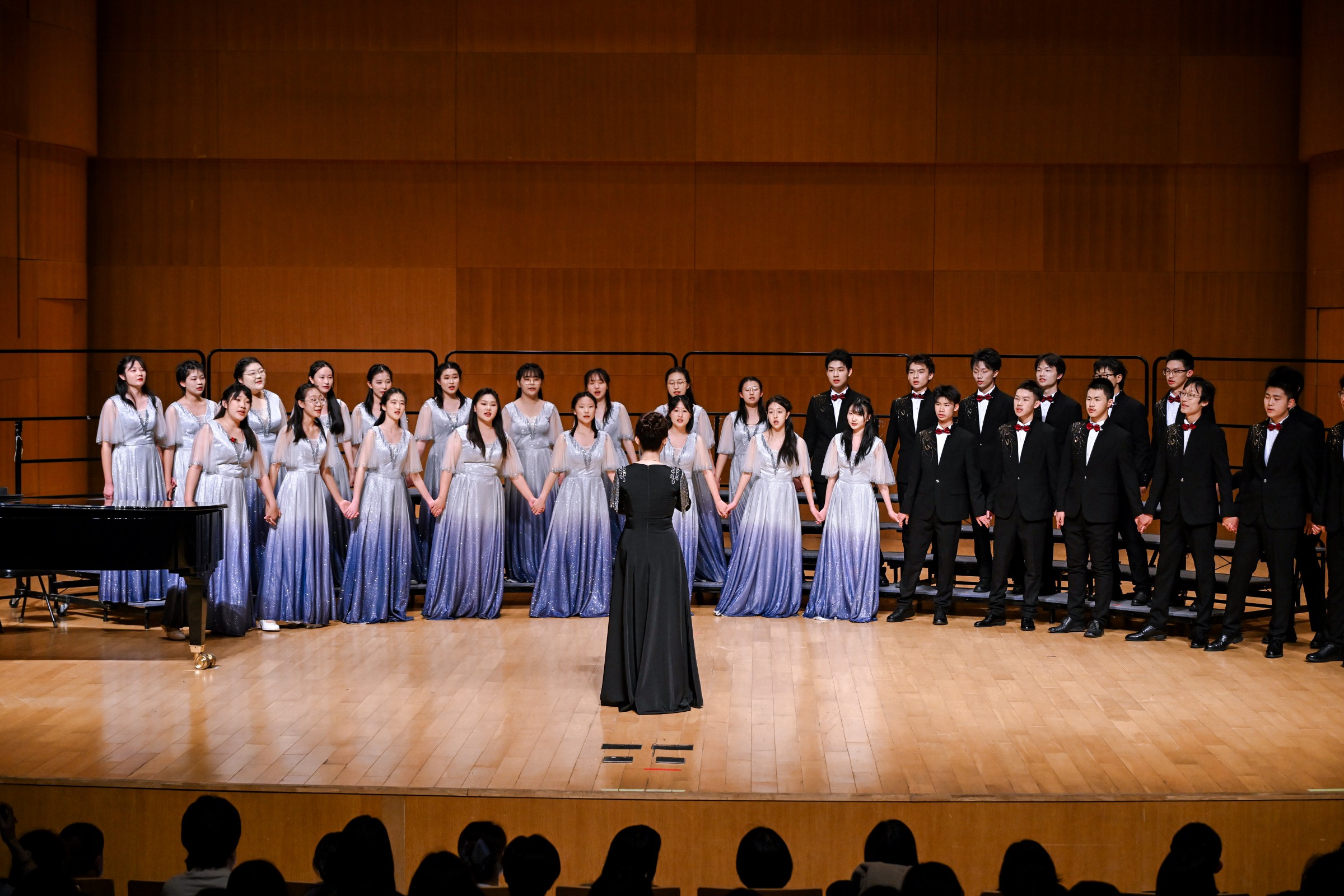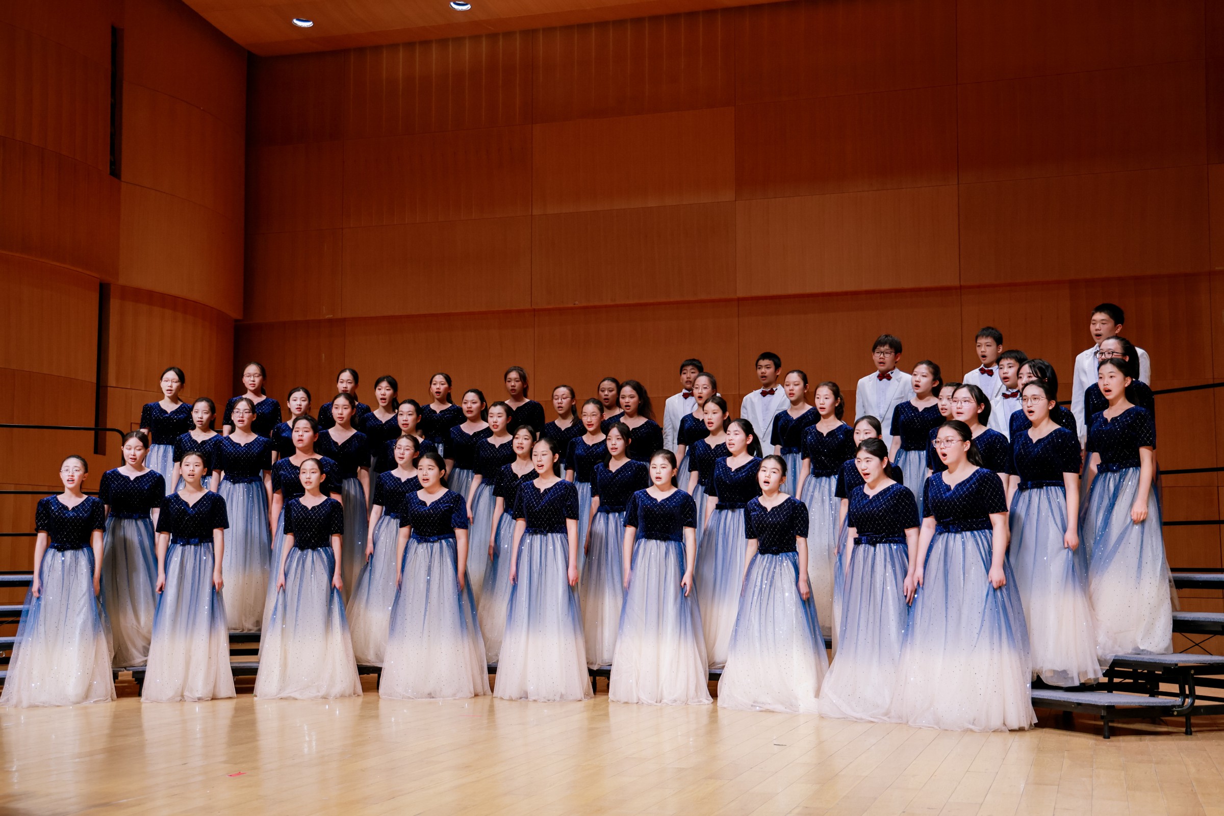 合唱舞蹈篇中,清友园校区青苗合唱团(朝花团)唱响哈尼族民歌《其多列》与英文曲目《We are the voices》,清澈童声纯净治愈;朝来校区和美合唱团带来《梨花又开放》《家乡》,旋律婉转深情;和平街初中校区和乐之声合唱团(朝花团)演绎《Non degu non》《与梦飞翔》,节奏明快、气势昂扬;和平街高中校区紫藤花合唱团带来《世界赠予我的》《越过森林》,歌声温柔又充满力量;清友园校区七彩舞韵舞蹈团带来的舞蹈《我家住在悬崖上》,舞姿灵动优美;集团成员校中国教育科学研究院朝阳实验学校唱响心声合唱团演绎《萱草花》,旋律温柔缱绻;奥运村校区初二 21 班班级合唱带来《快乐叮当》,充满童真童趣;奥运村校区初莺合唱团演唱南非民歌《Siyahamba》,独特的旋律展现出多元文化的融合之美;莲葩园校区阿玛斯合唱团带来《我怎样去爱你》《亚克西》,其中新疆民歌《亚克西》旋律欢快、风情浓郁,生动诠释了各民族文化交融的美好内涵,将现场氛围推向高潮。
