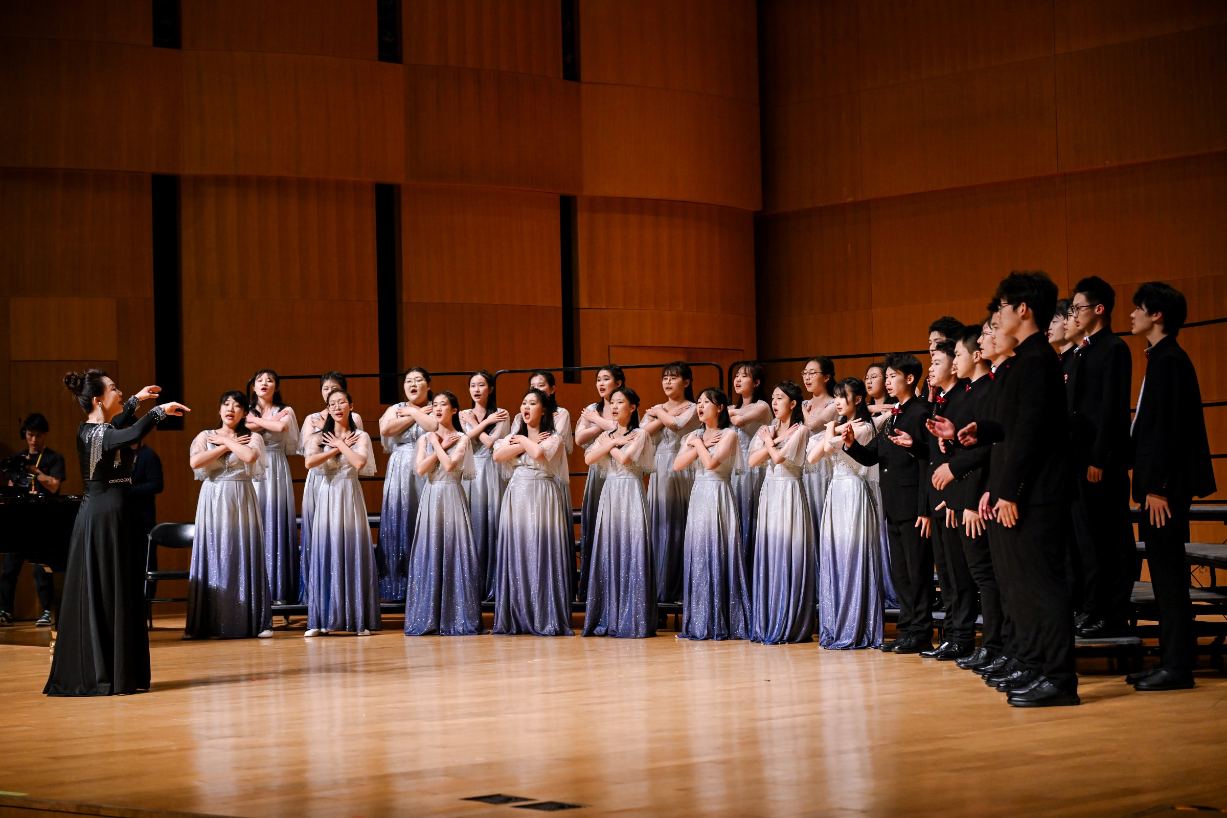 音乐会尾声,由校长亲自组建的和一教育集团“和合教师合唱团”登台,校长、书记带领教师合唱团成员,与现场全体教职工共同唱响校歌《和风乐韵》,全体教职员工因同一首校歌紧紧凝聚,传递教育热忱的同时,也展现了师者和睦同心,立德树人的和雅风范。