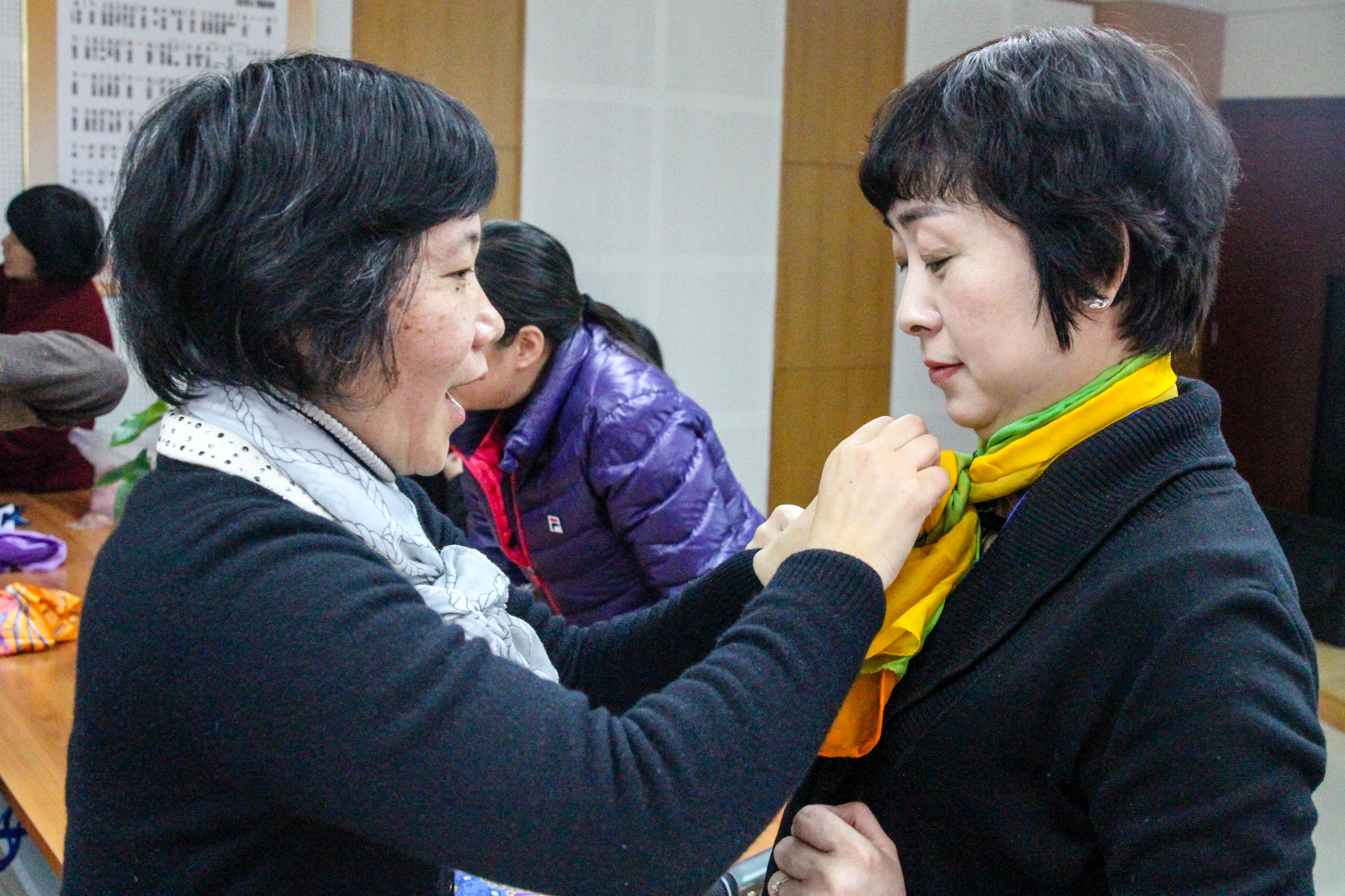 和平街校区和莲葩园校区分别请来礼仪专家王亚蕾老师和杨丽红老师为女教工们进行《服装搭配之玩转丝巾与配饰》的礼仪讲座,给老师们讲解丝巾的叠法、丝巾的系法、丝巾的围搭法以及日常礼仪。老师们们认真学习,积极体验,现场感受着成为精致、魅力、美丽女人的幸福。