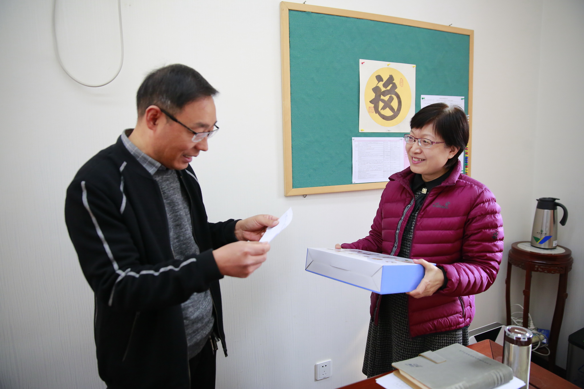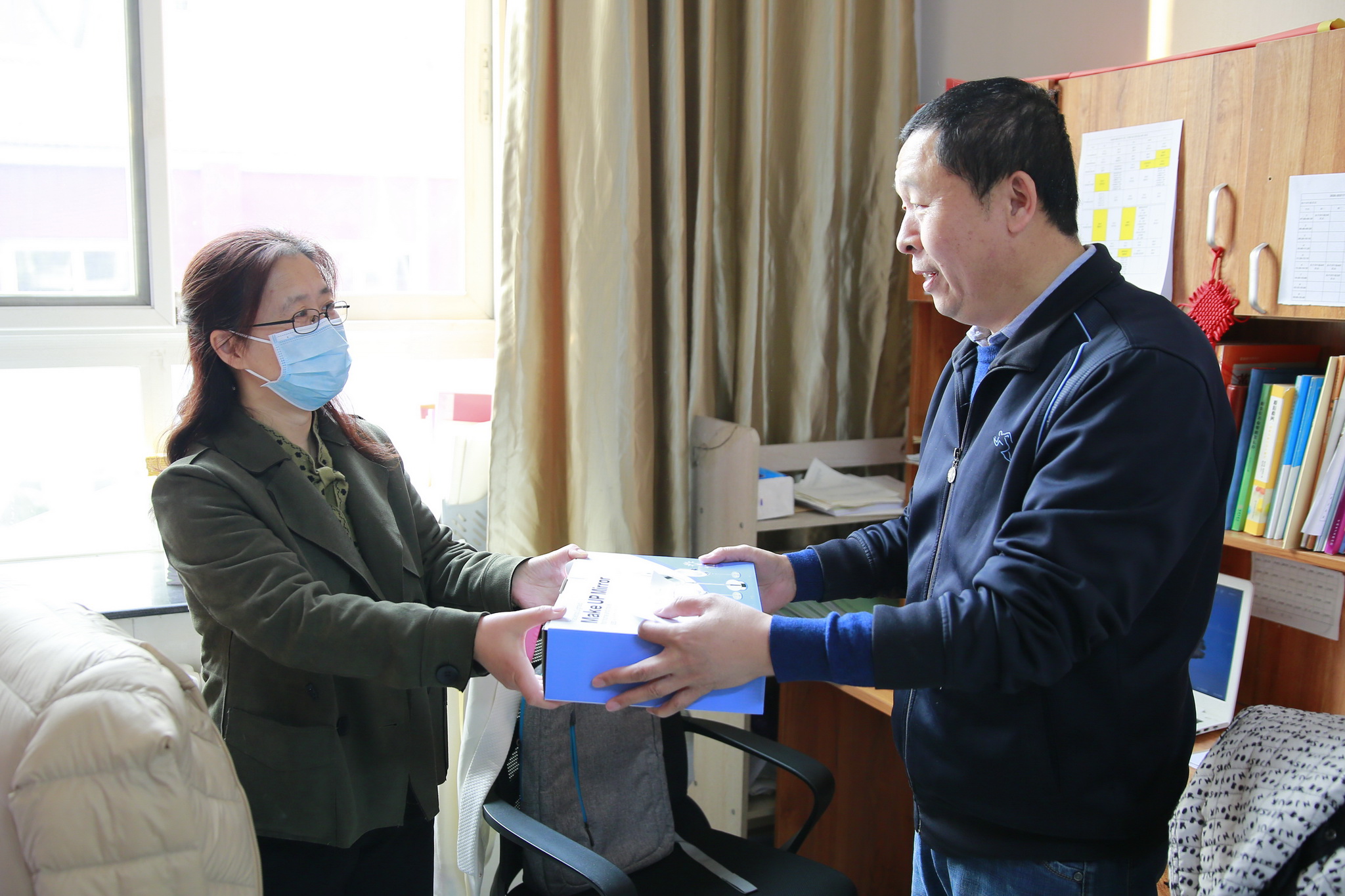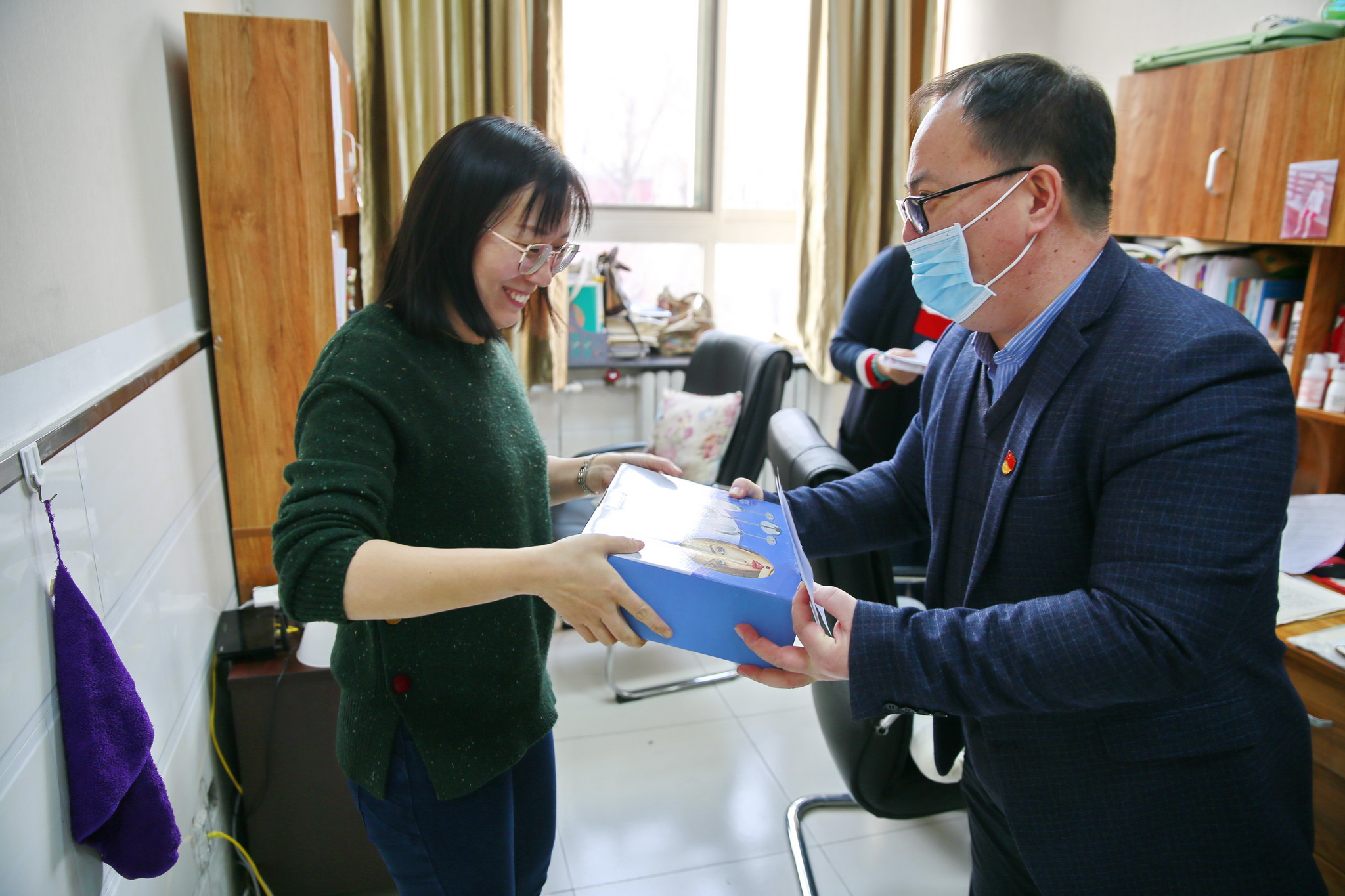 一大早,各校区男教工来到指定地点,领取盲盒,拆开盲盒,按照盲盒中纸条上的姓名找到相应的女教工,送上节日慰问礼品,并向女教工深情表达节日问候。女教工们接过节日礼物,收下男教工送上的节日祝福,内心感动满满,幸福爆棚!