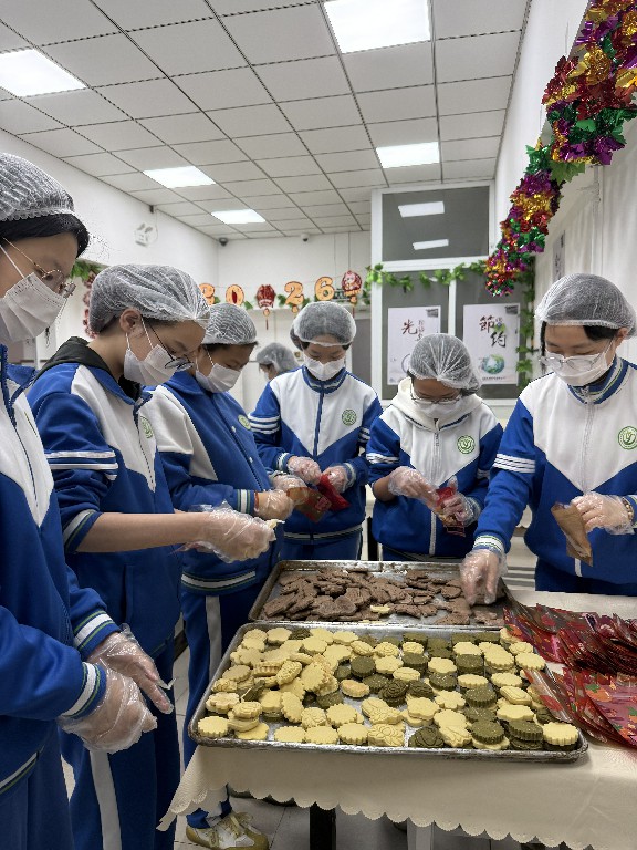 活动现场奶香四溢,同学们在动手实践中体验劳动创造美好的快乐,更在协作互助中感悟奉献精神。当一份份饱含心意的饼干送到女教师、第三方服务公司保洁阿姨及餐饮公司食堂阿姨手中时,温暖的笑脸在春日里绽放。此次活动将感恩教育与劳动实践深度融合,既引导学生以手作传递敬意,也让“和”文化在温馨互动中浸润校园,奏响了一曲和谐的春日赞歌。