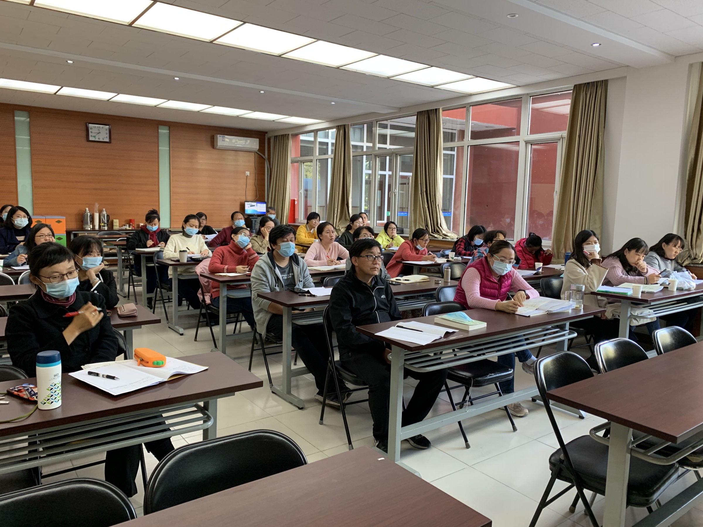 10月21日下午,和平街一中初中语文组在朝来校区教学楼一层会议室开展了丰富精彩的教学研修活动。本次教研围绕“初中语文‘大单元教学设计’学科教研能力提升”这一主题,特请北京景山学校朝阳学校陈连林书记进行专家指导。和平街初中校区、奥运村校区和朝来校区的全体语文教师济济一堂,就在新高考、新教改的背景下,提升和一初中语文教学质量这一目标共同学习、研讨。