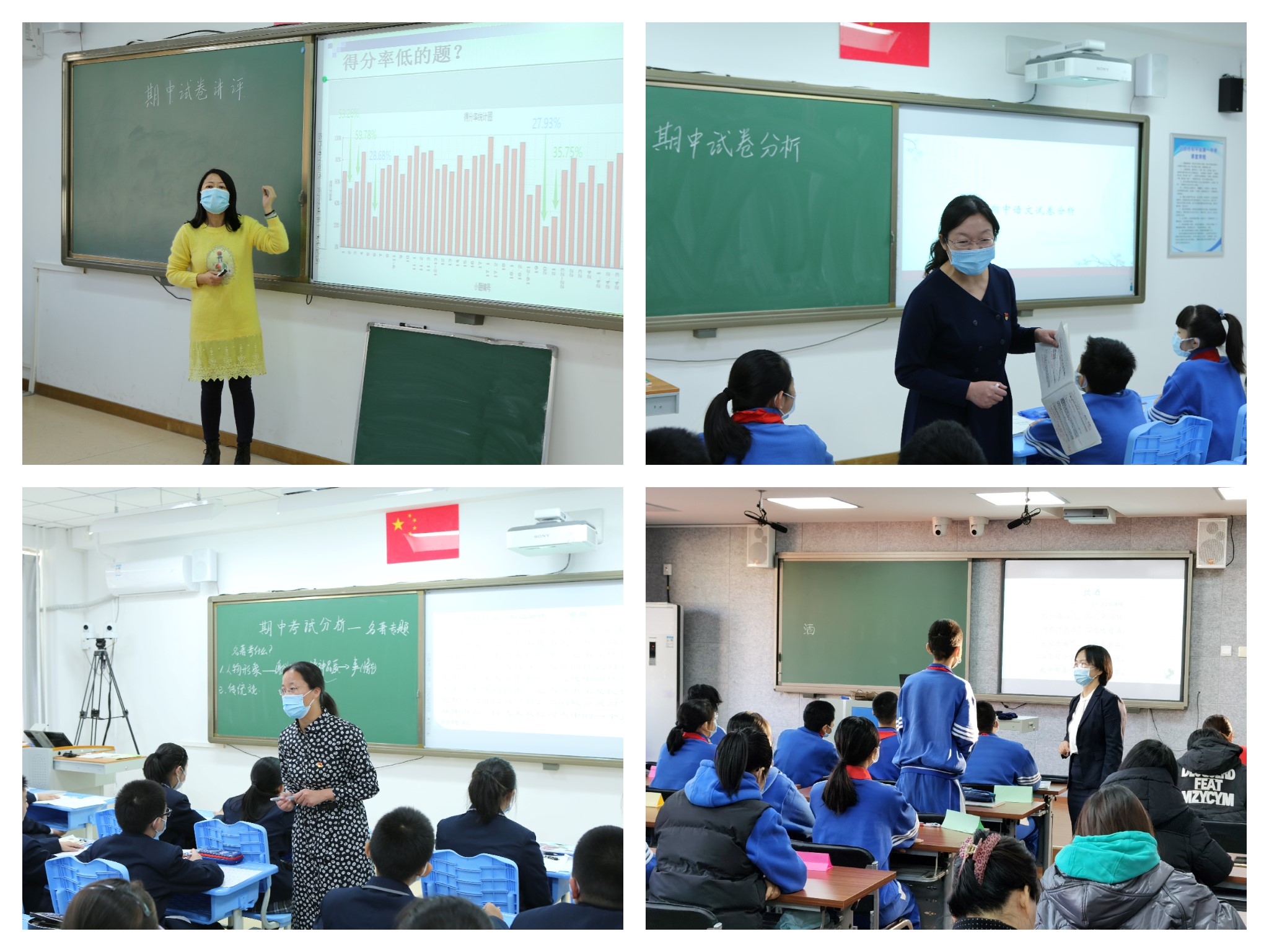 语文组何漪、高香丽老师通过考题分析,帮助同学们学习读题审题、结合上下文理解文意;张歌老师和学生一起从梳理名著阅读思路出发,学会答题;何立红老师的核心素养展示课《饮酒》,引领同学们走进中国酒文化、走进陶渊明的隐居世界、体会诗词歌赋之美。