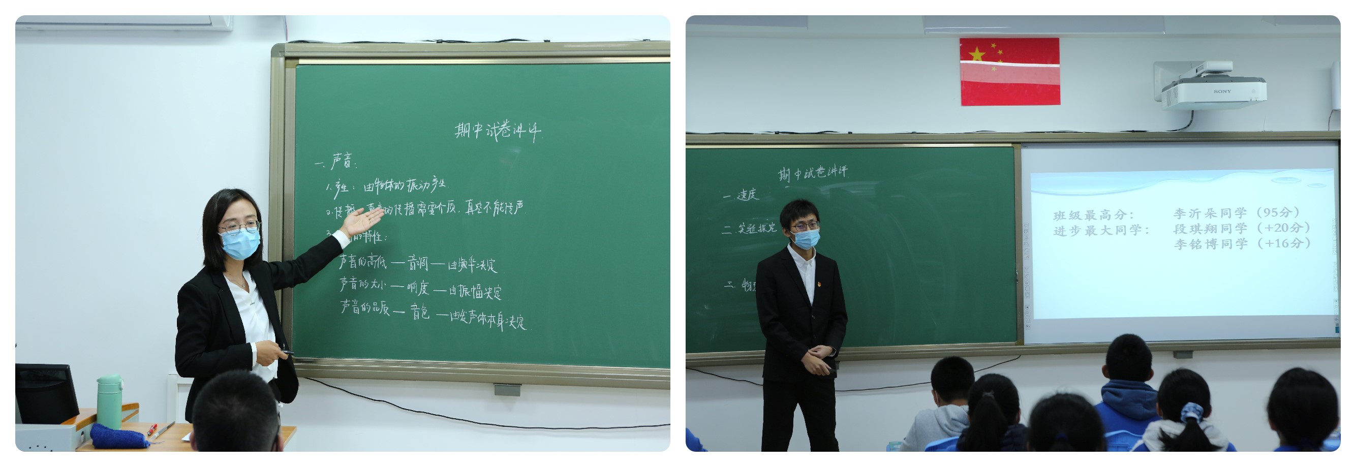 物理组赵秋爽和郑磊老师,引导同学们回顾声音和运动,通过实验探究的方式让同学们体会到物理学之美。