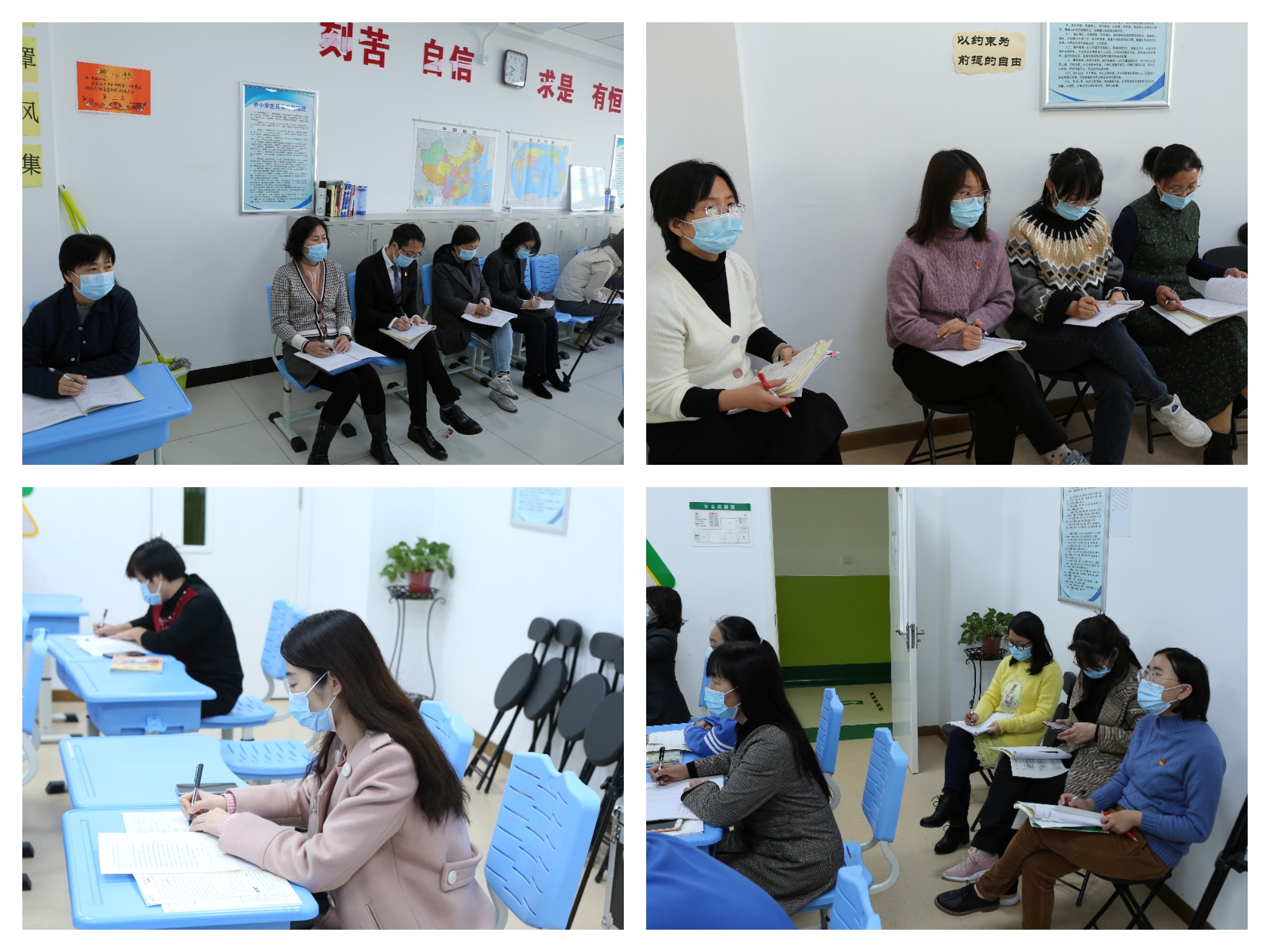 文综组李翠格老师利用地图、气候判断等资料,通过小组合作方法分析错因,落实知识点;邢常静、苏丽娜和周烨老师,分别结合史实、时政,教学生归纳错因、规范答题思路。