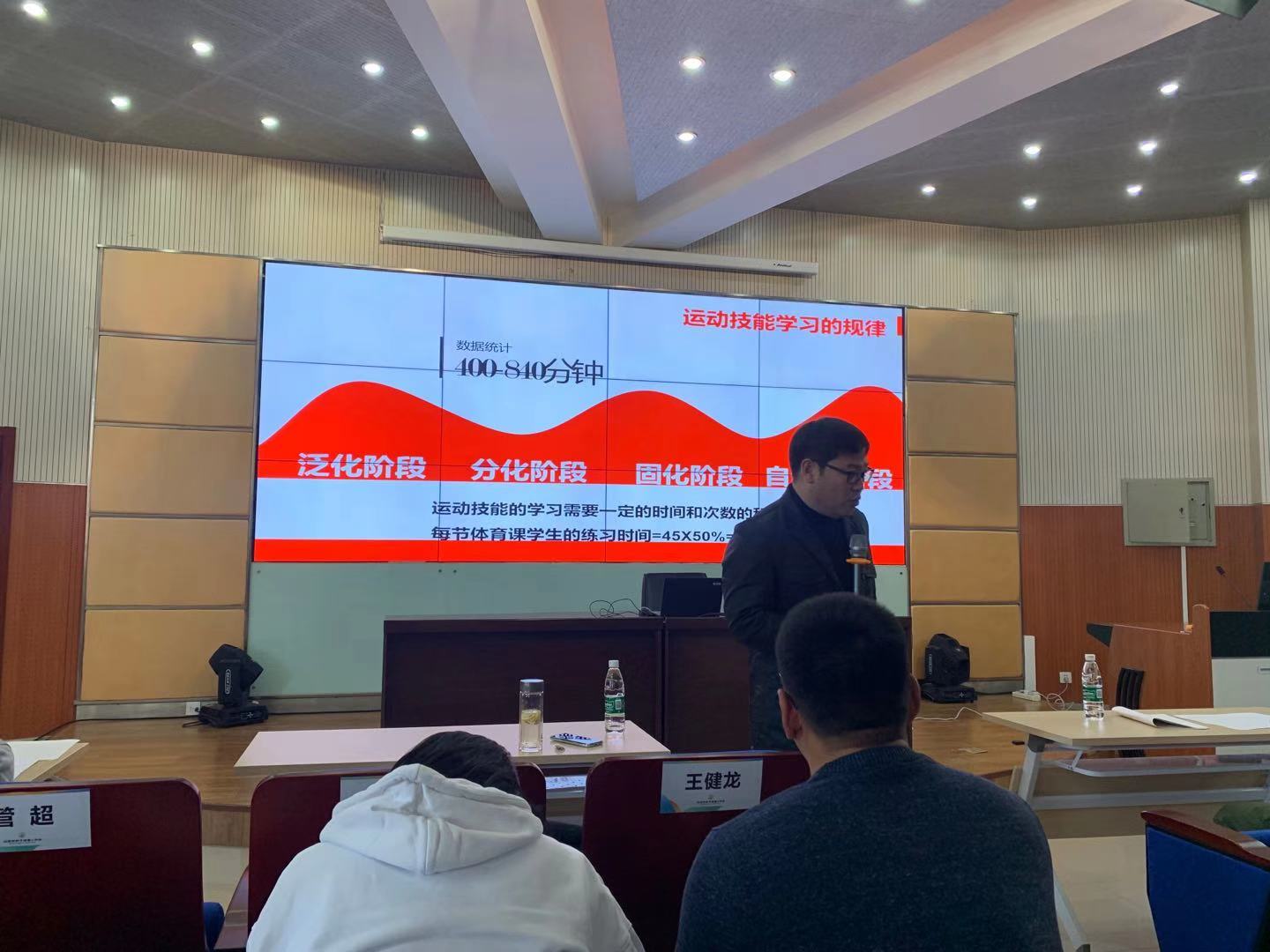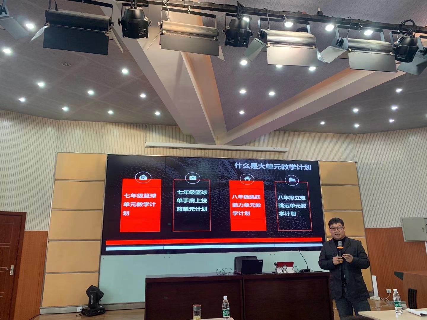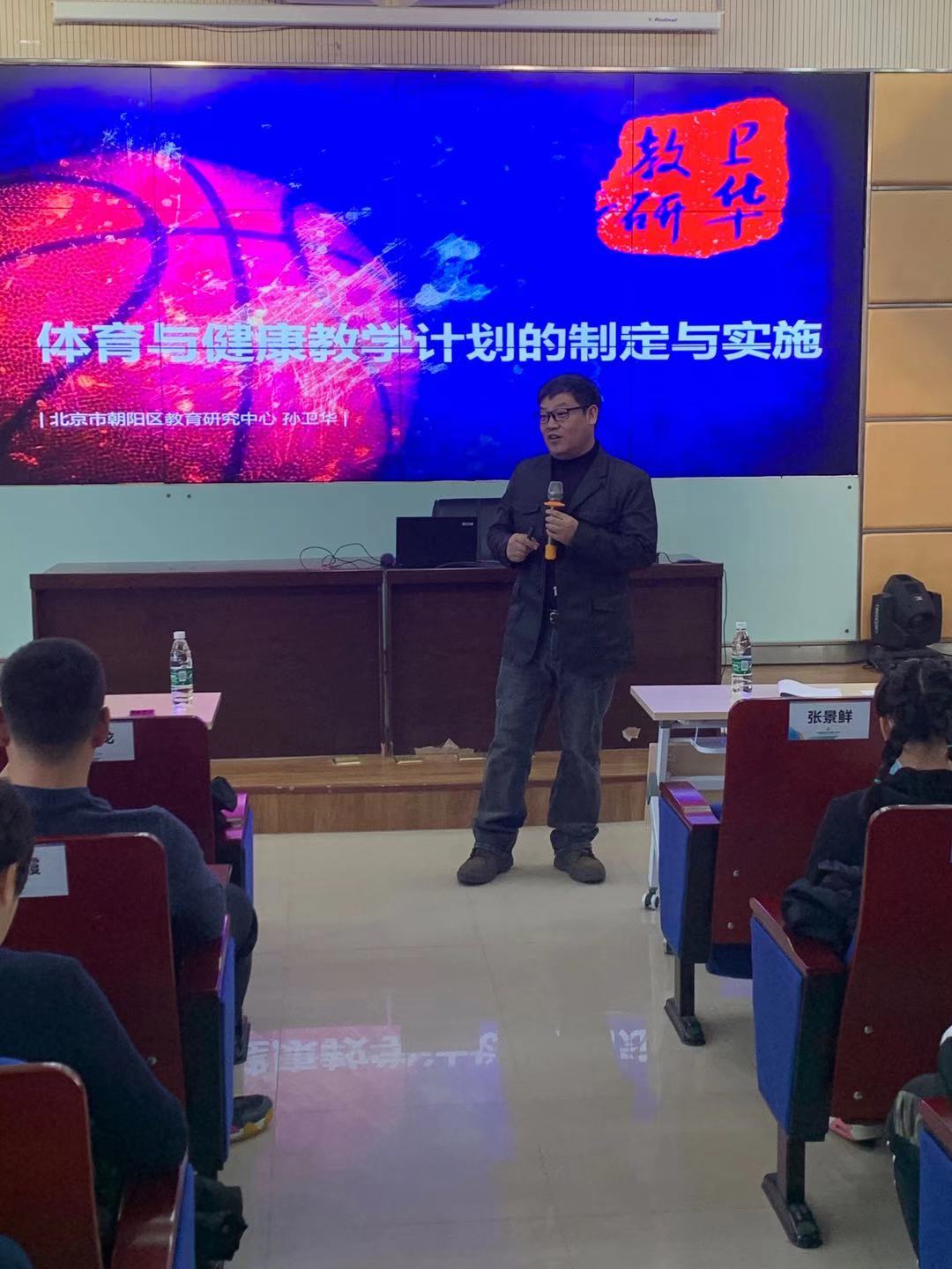 孙卫华教研员为我校体育老师讲解:体育与健康教学计划的制定与实施