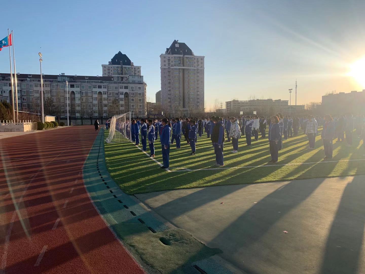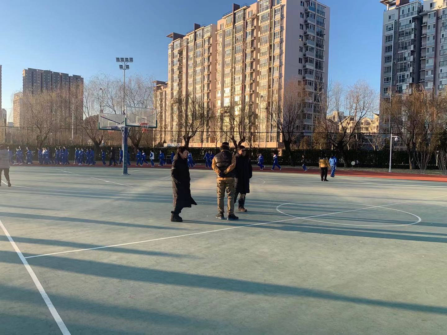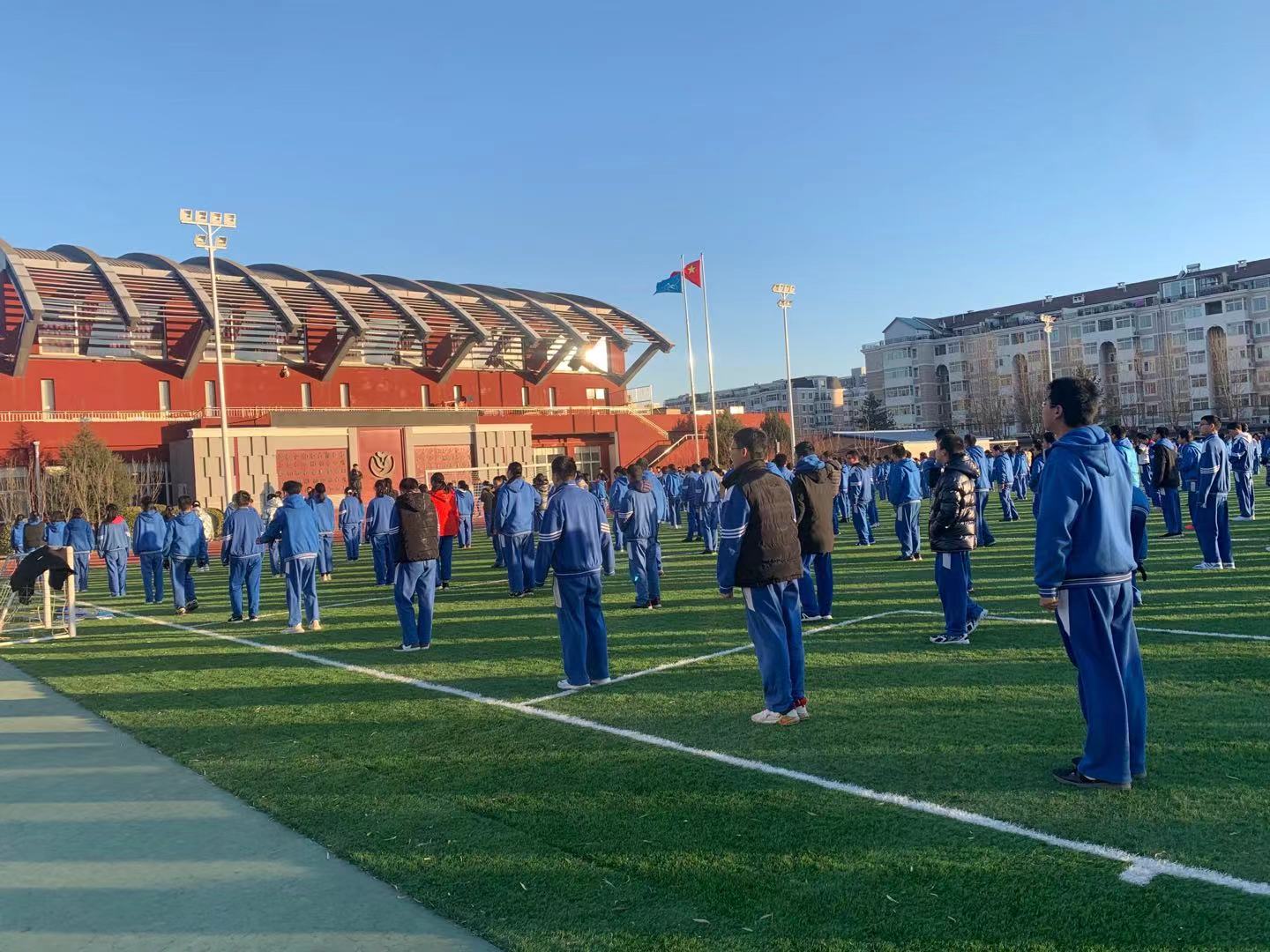 即使冬天,天气寒冷。学生也喜欢在操场上活动一下,跑跑步。